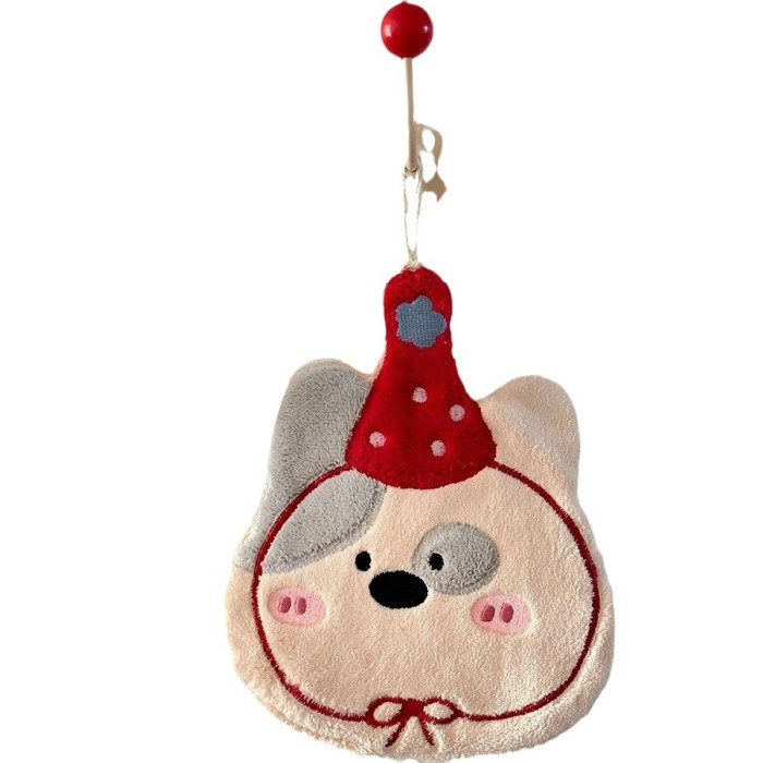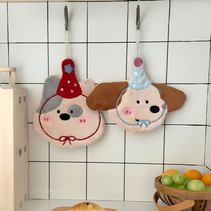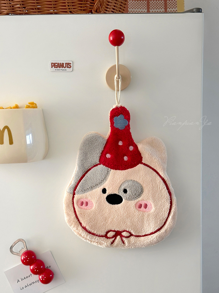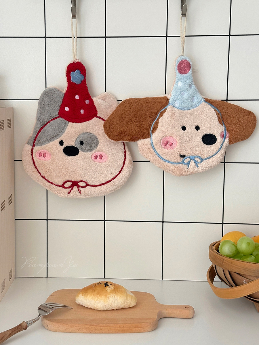 可愛刺綉小狗擦手巾廚房浴室可掛式卡通珊瑚絨小毛巾吸水小方巾