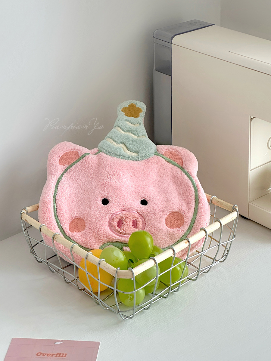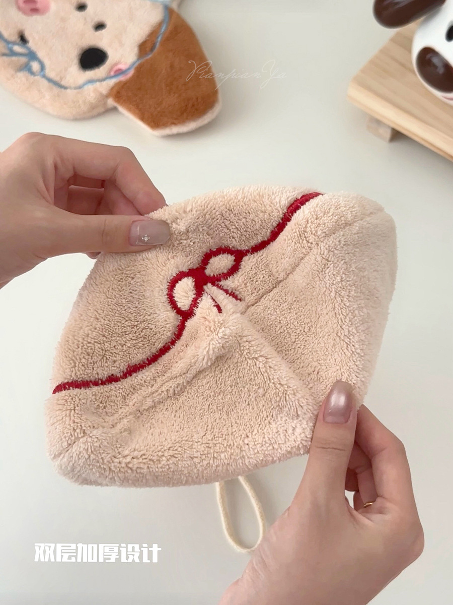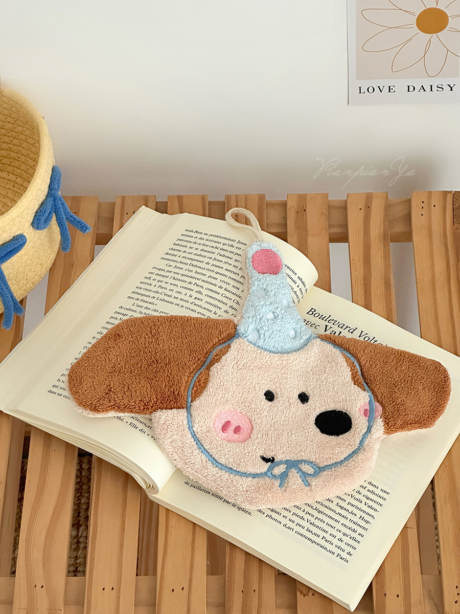 可愛刺綉小狗擦手巾廚房浴室可掛式卡通珊瑚絨小毛巾吸水小方巾