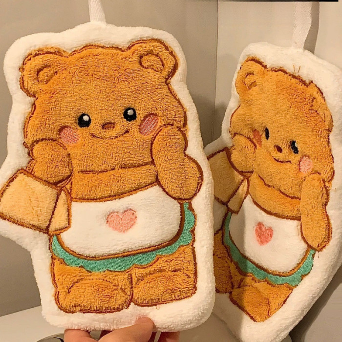 黃油小熊擦手巾掛式廚房浴室吸水速乾毛巾兒童手帕抹布不毛