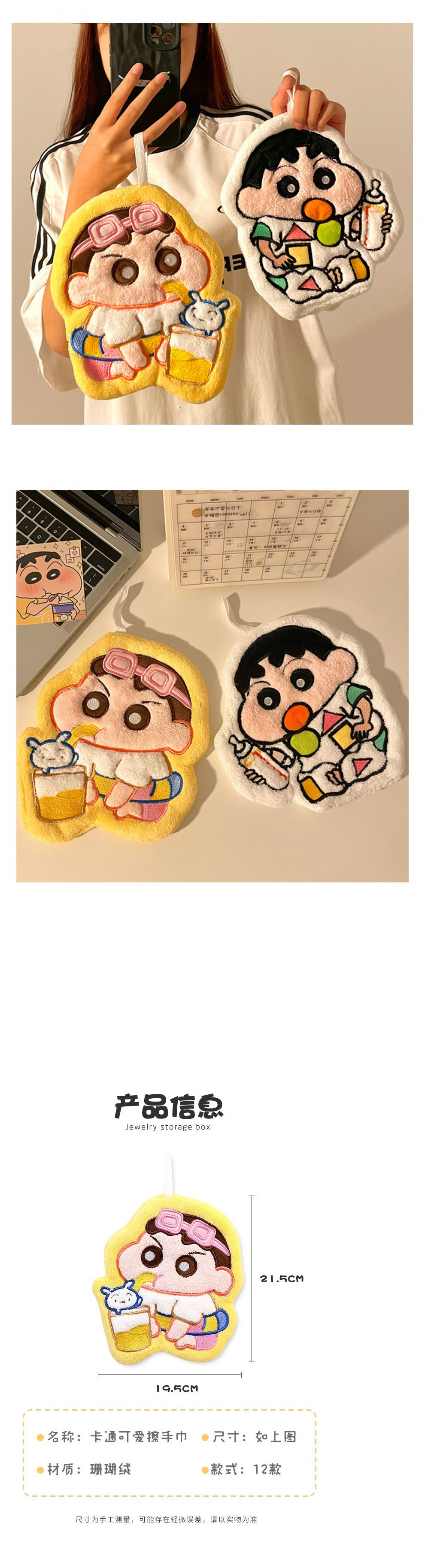 蠟筆小新擦手巾掛式可愛吸水速乾廚房衛生間兒童卡通手帕抹布加厚