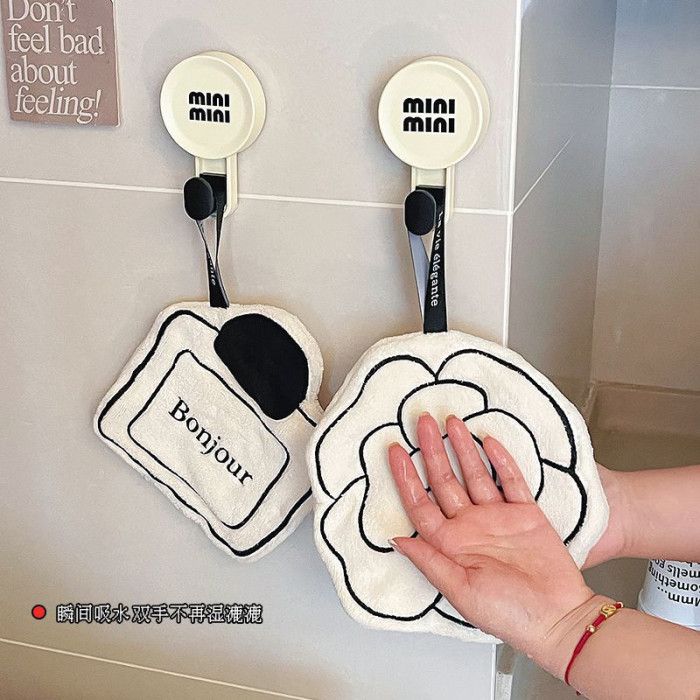 法式擦手巾掛式吸水加厚可愛創意廚房洗手巾珊瑚絨網紅小毛巾