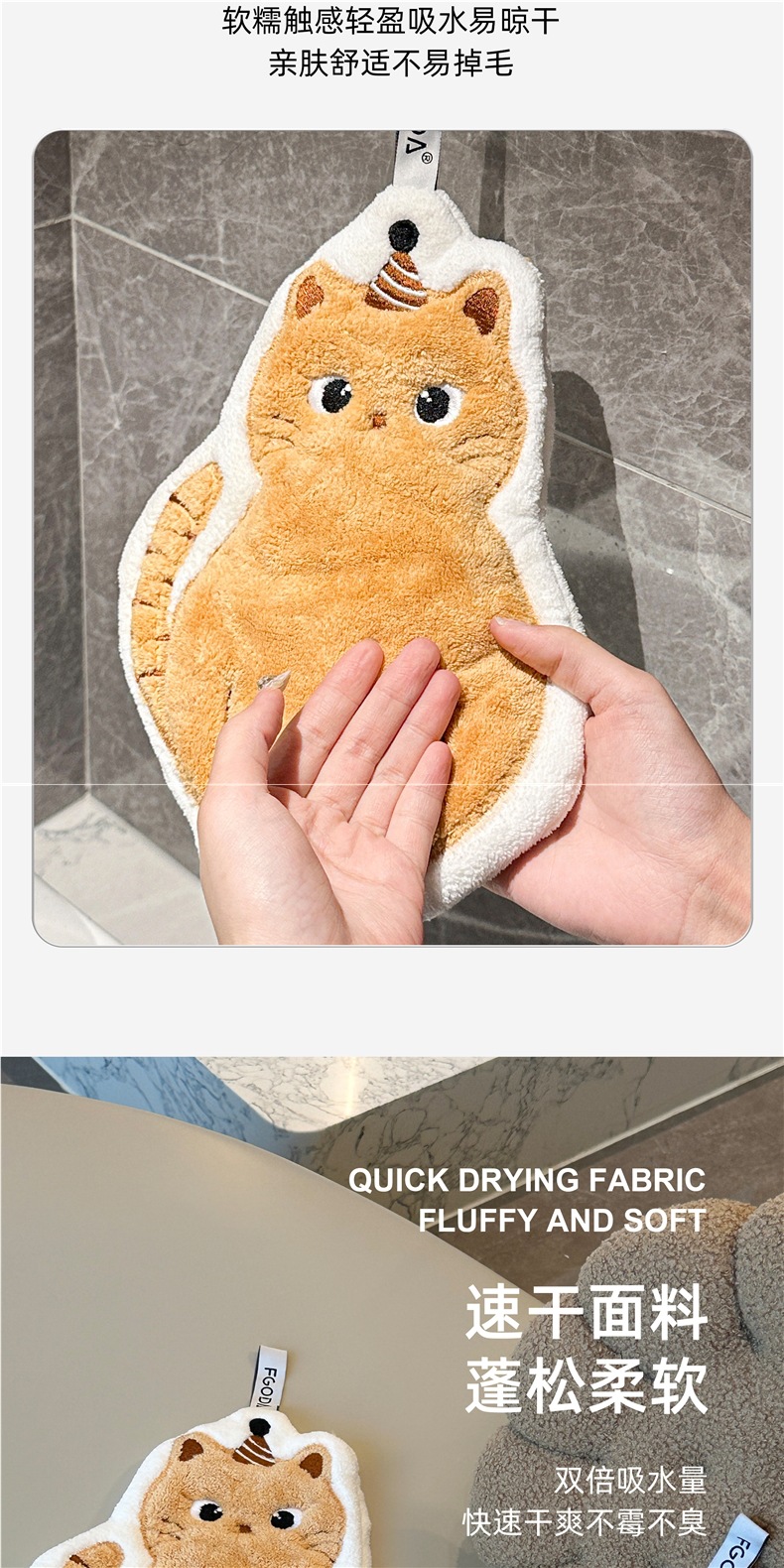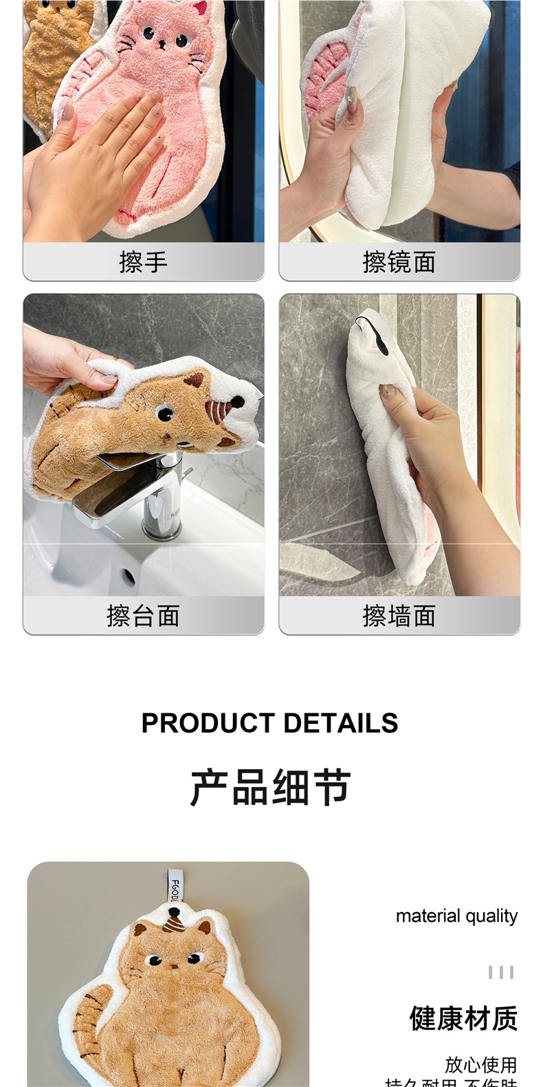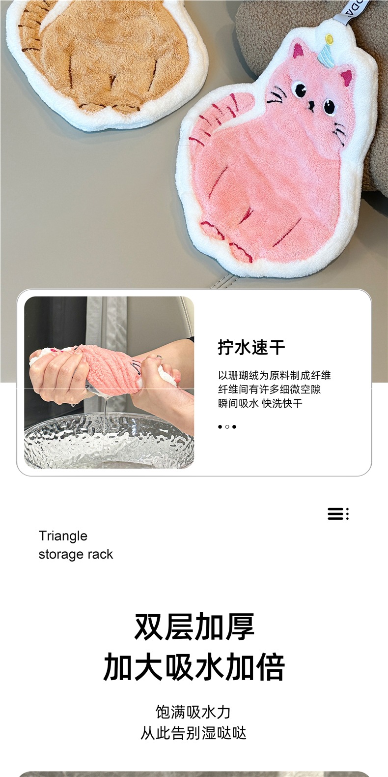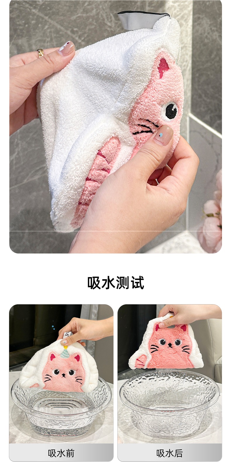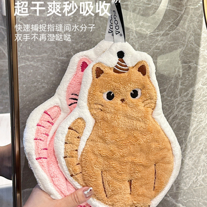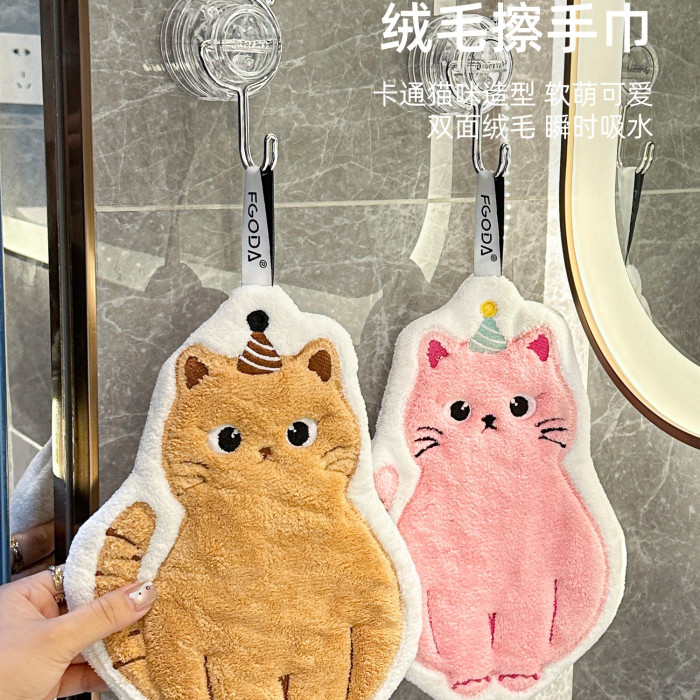 可愛擦手巾可掛式吸水加厚不掉毛小方巾廚房家用速乾搽手巾小毛巾