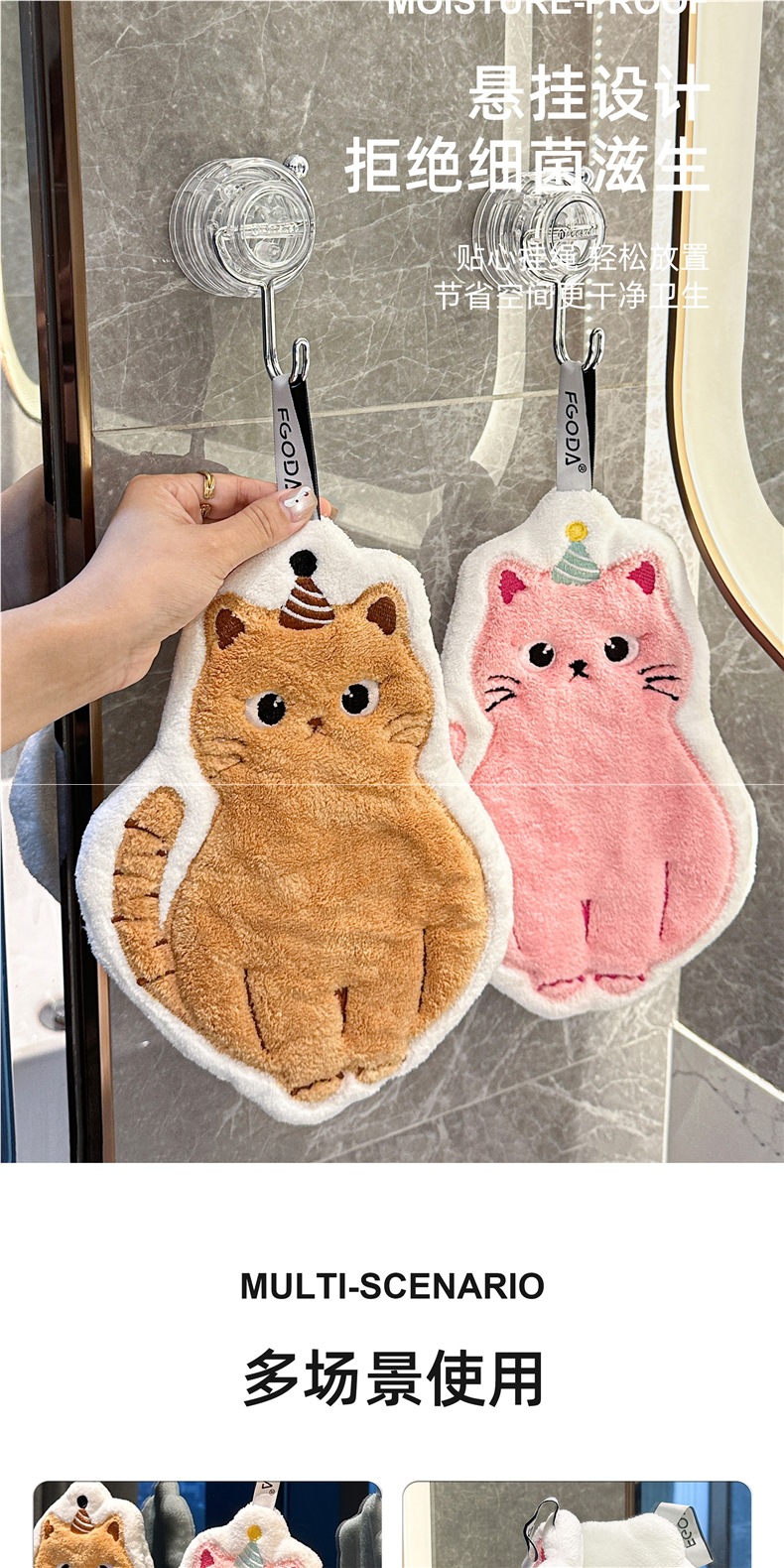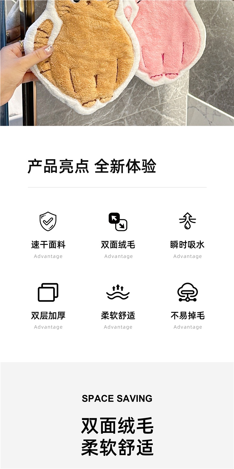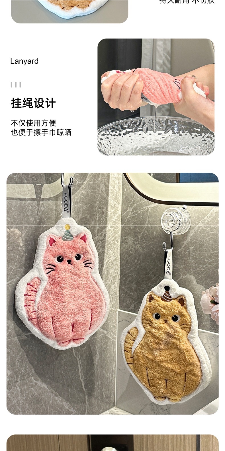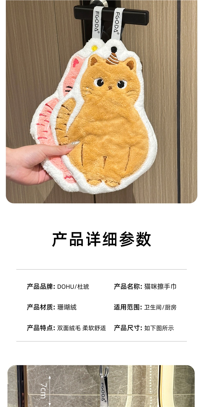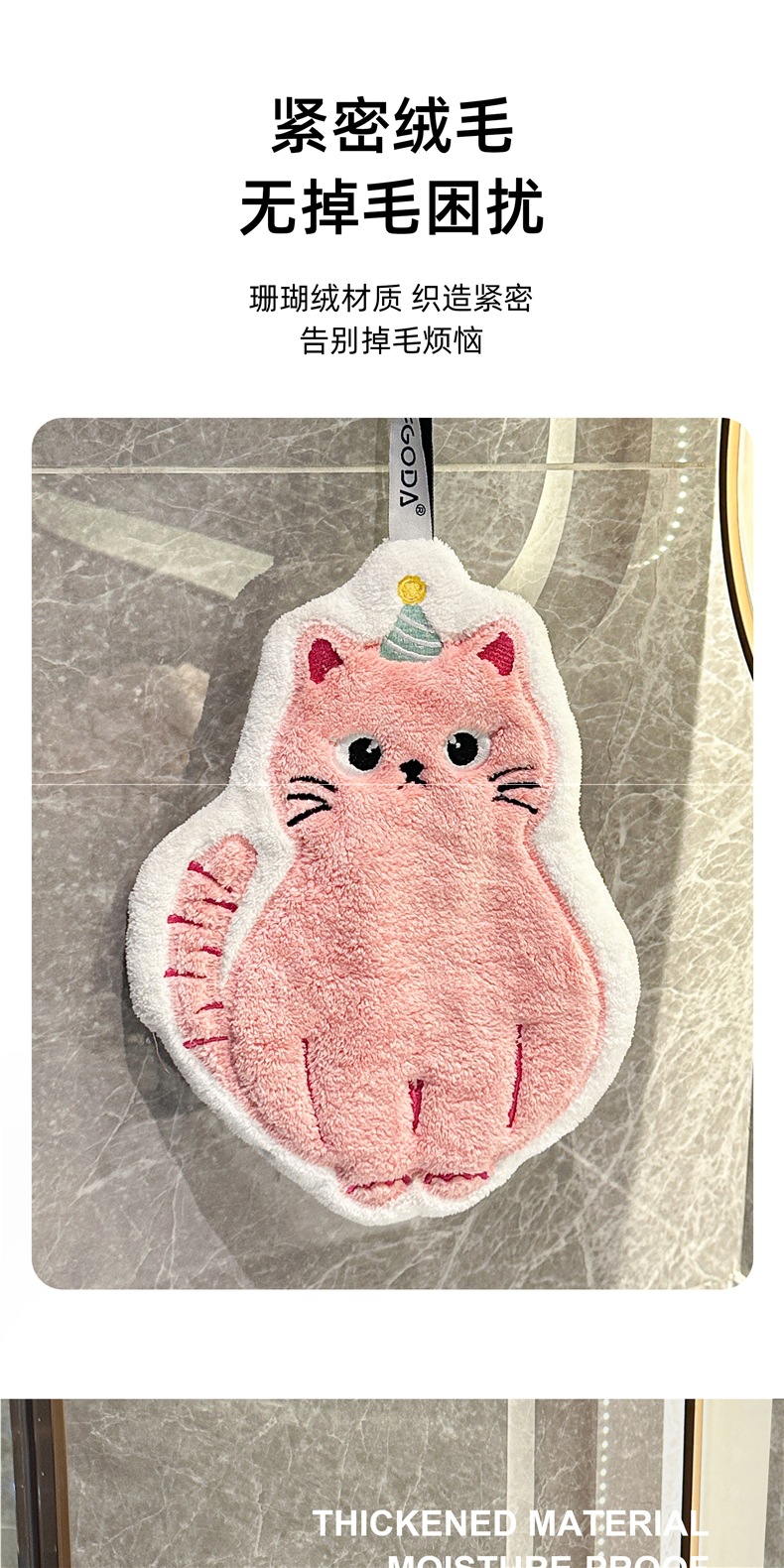 可愛擦手巾可掛式吸水加厚不掉毛小方巾廚房家用速乾搽手巾小毛巾