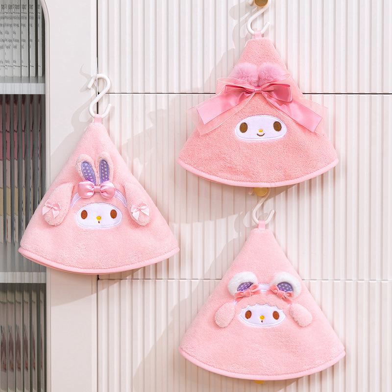 可愛卡通美樂蒂羊羊珊瑚絨擦手巾家用掛飾吸水小毛巾廚房抹布手帕
