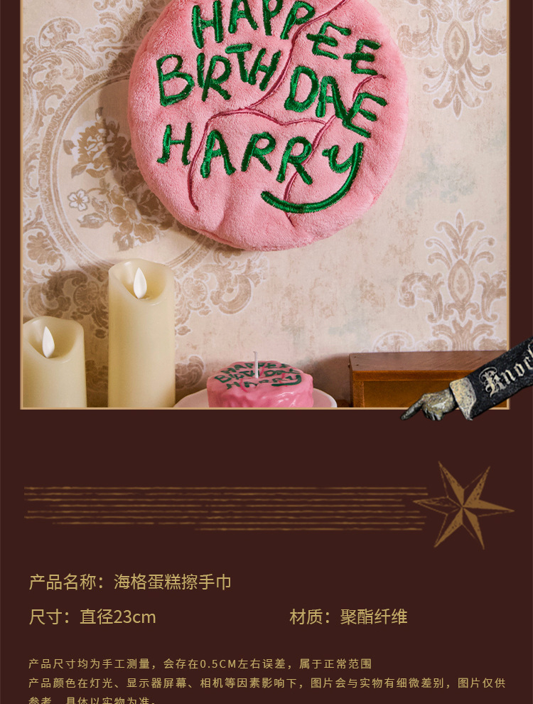 ME華納正版哈利波特海格蛋糕擦手巾綉花珊瑚絨高支刺綉可掛不臭