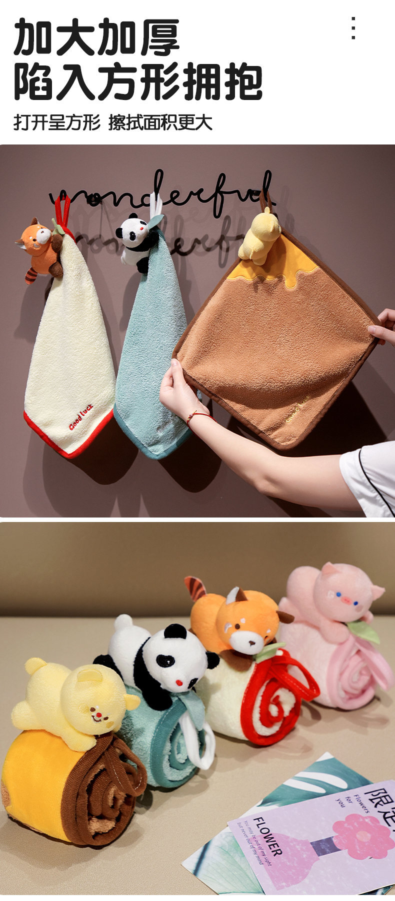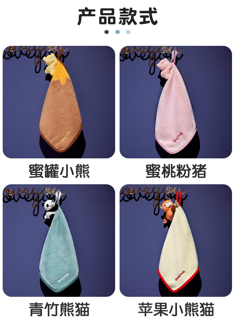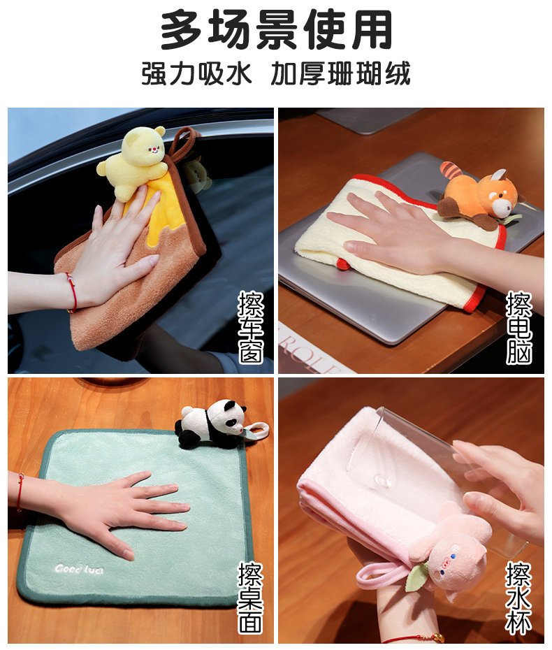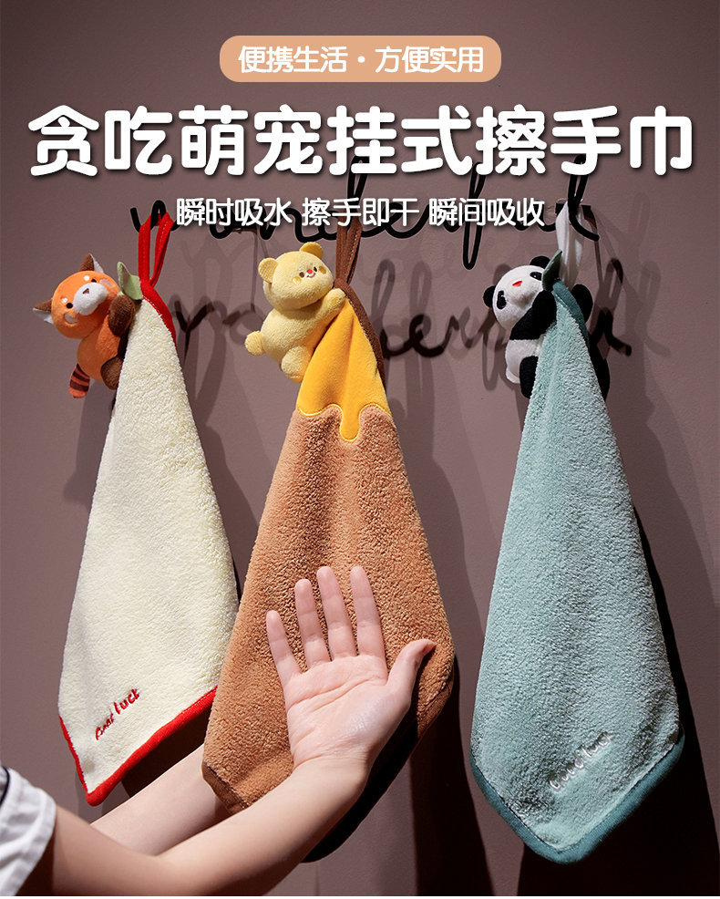 卡通小浣熊擦手巾掛式可愛超強吸水速乾兒童小方巾家用廚房小毛巾