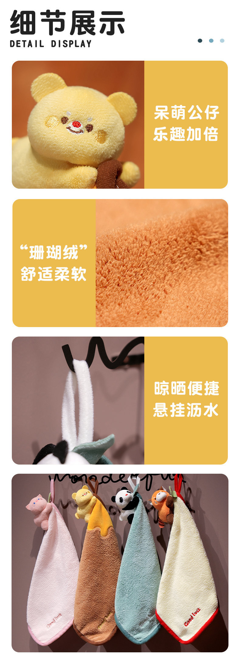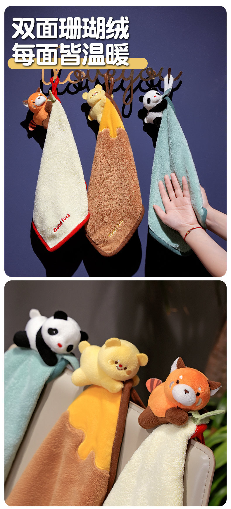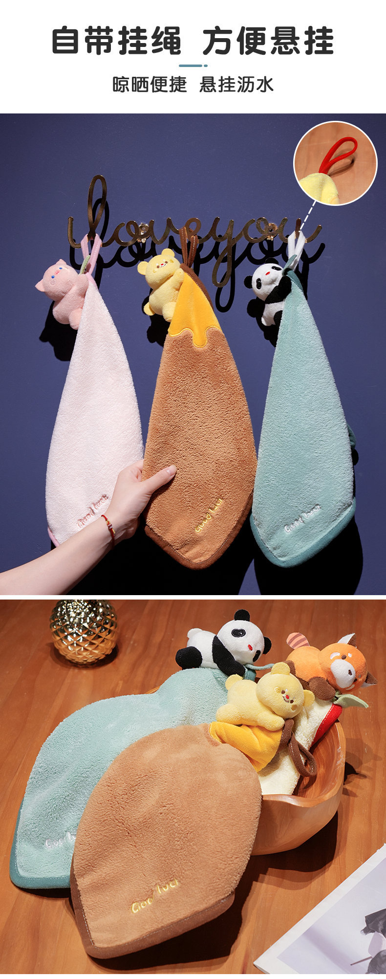 卡通小浣熊擦手巾掛式可愛超強吸水速乾兒童小方巾家用廚房小毛巾