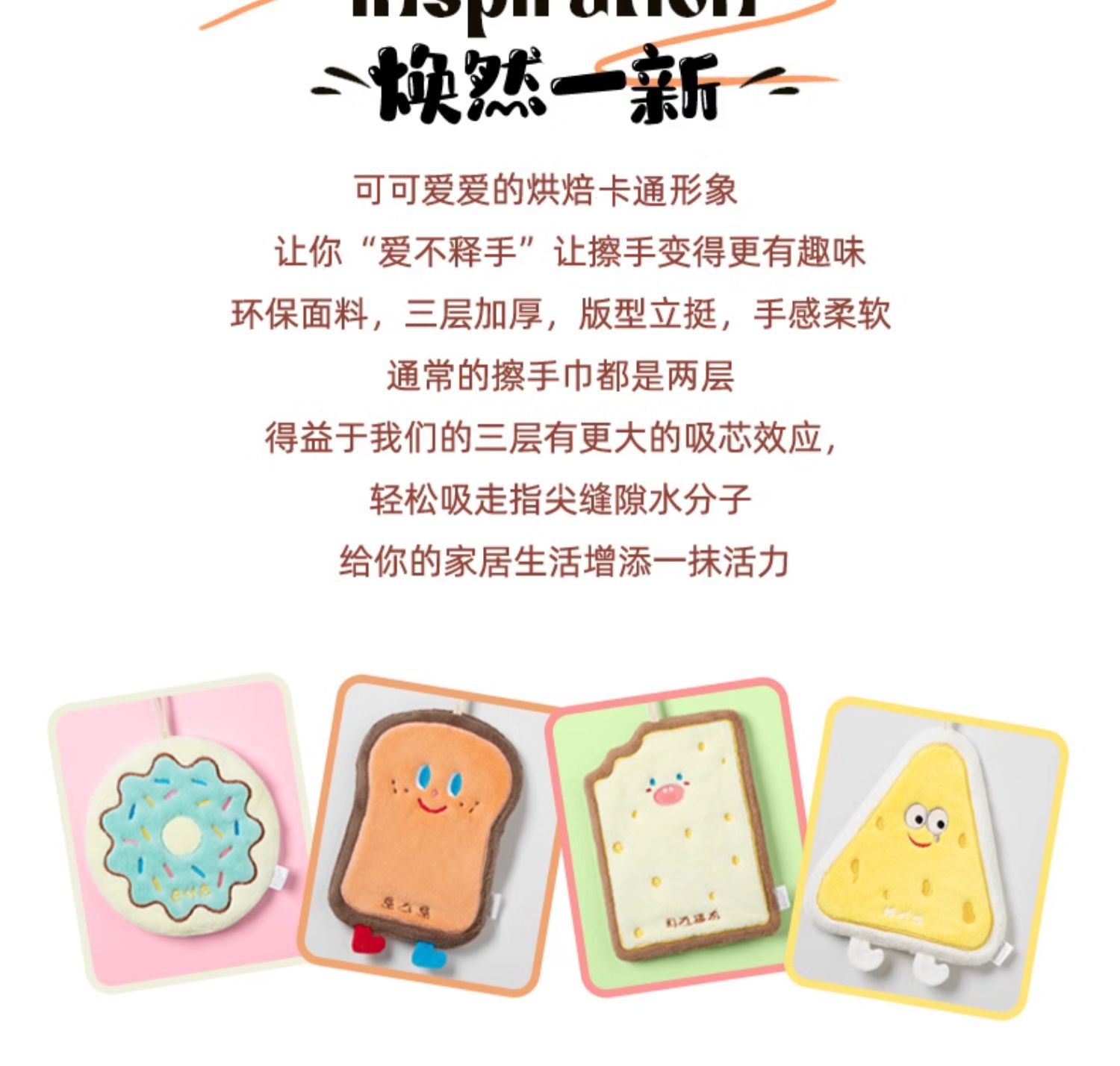 | 顔色 | 4個裝【奶酪塊+吐司+餅乾+甜甜圈】卡通擦手巾 |