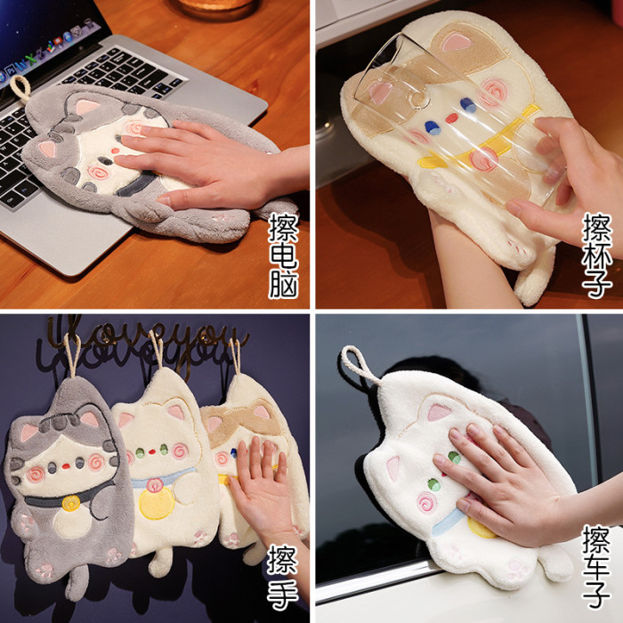 ♤貓咪擦手巾可掛強吸水洗手巾兒童檫手巾廚房珊瑚絨小抹手毛巾