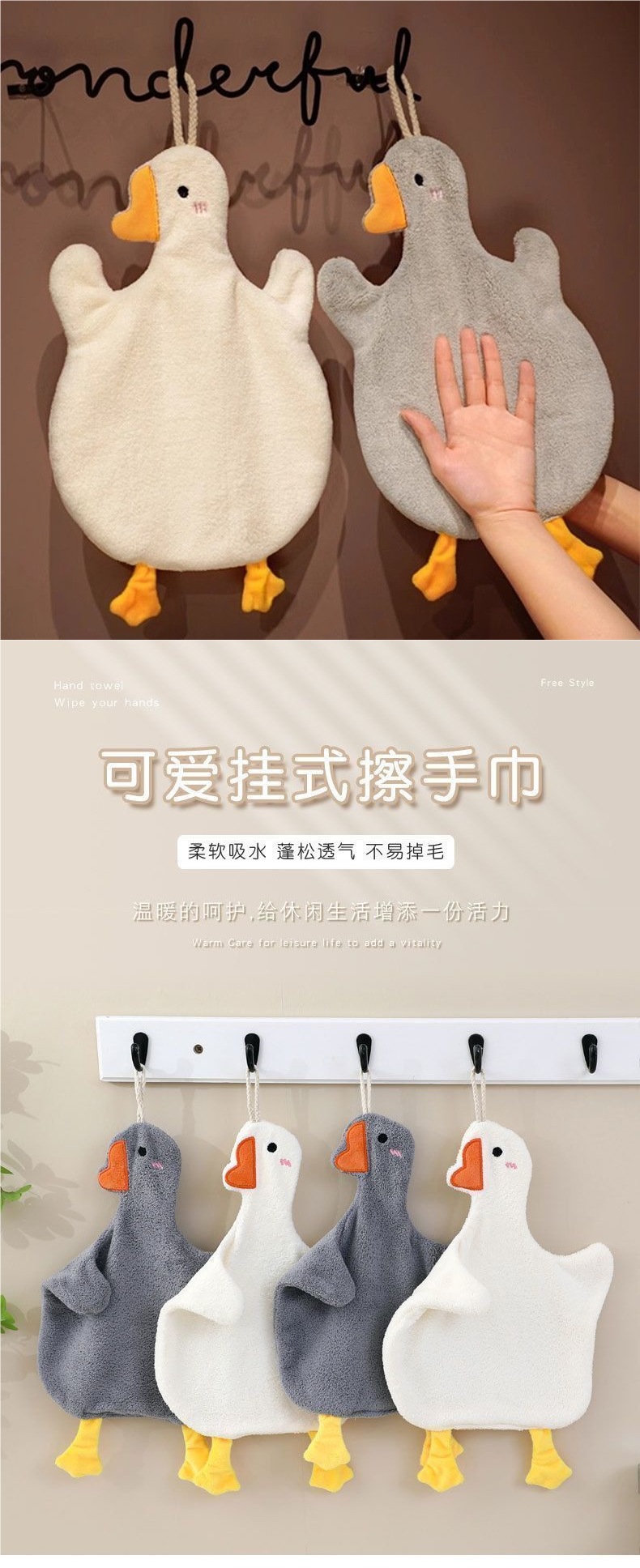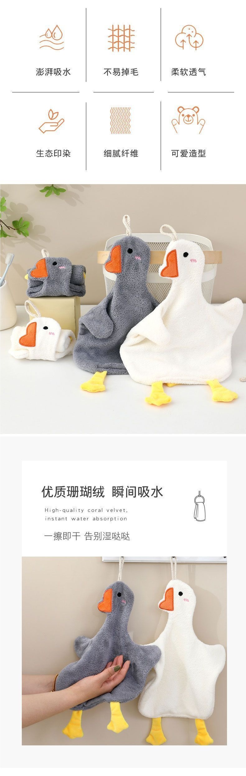 擦手毛巾加厚百貨爆款可愛卡通擦手巾白鵞擦手毛巾掛式可愛