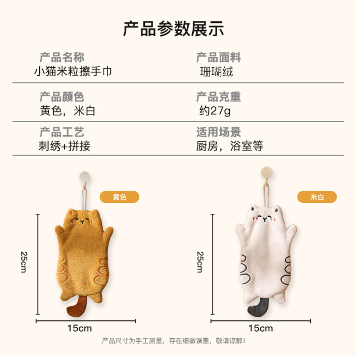 可愛貓咪造型擦手巾廚房浴室懸掛吸水毛巾珊瑚絨綉花兒童卡通手帕