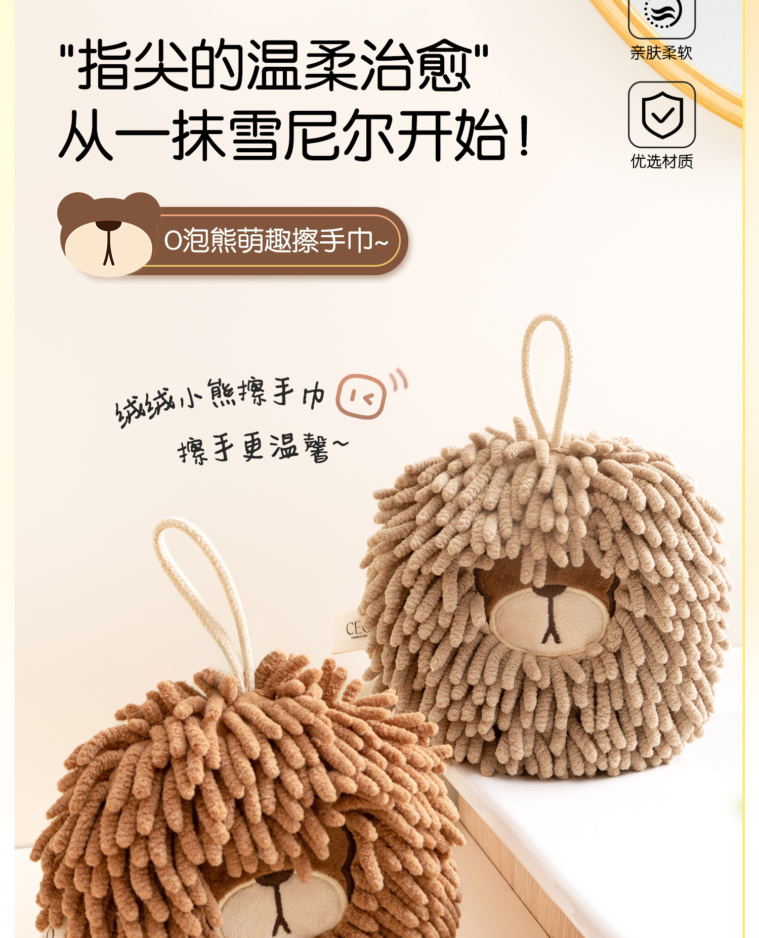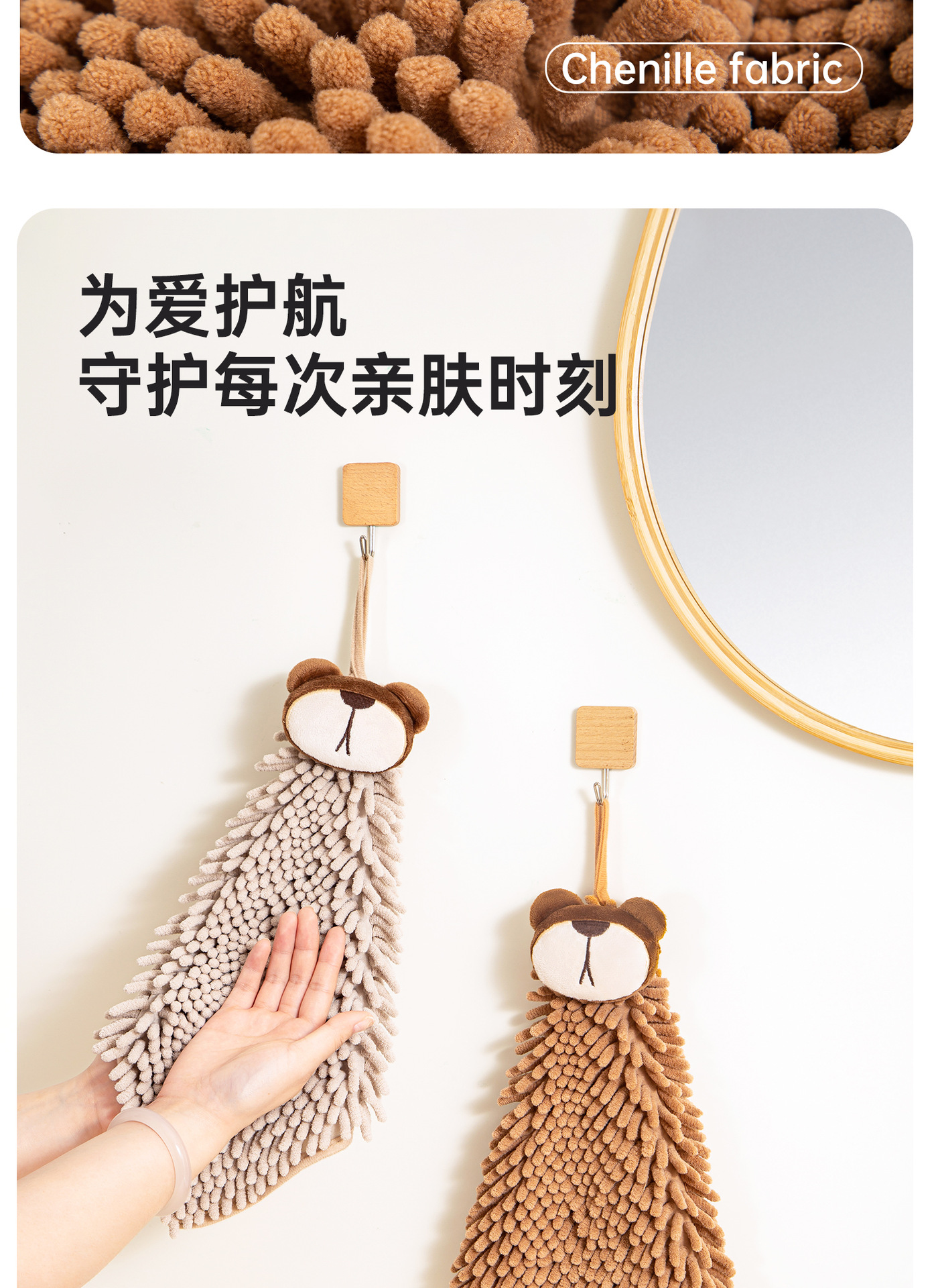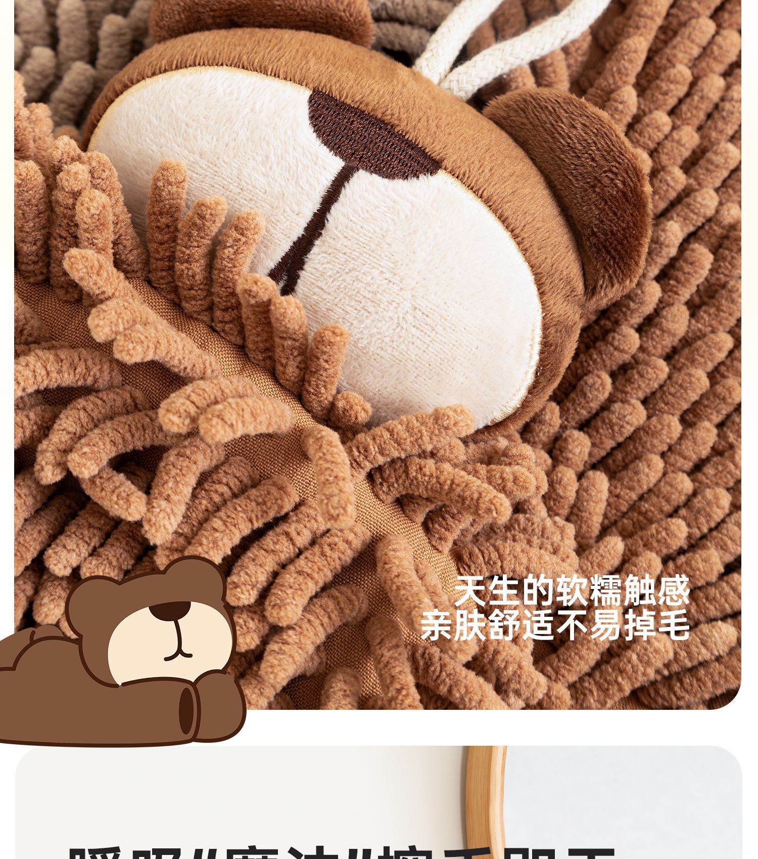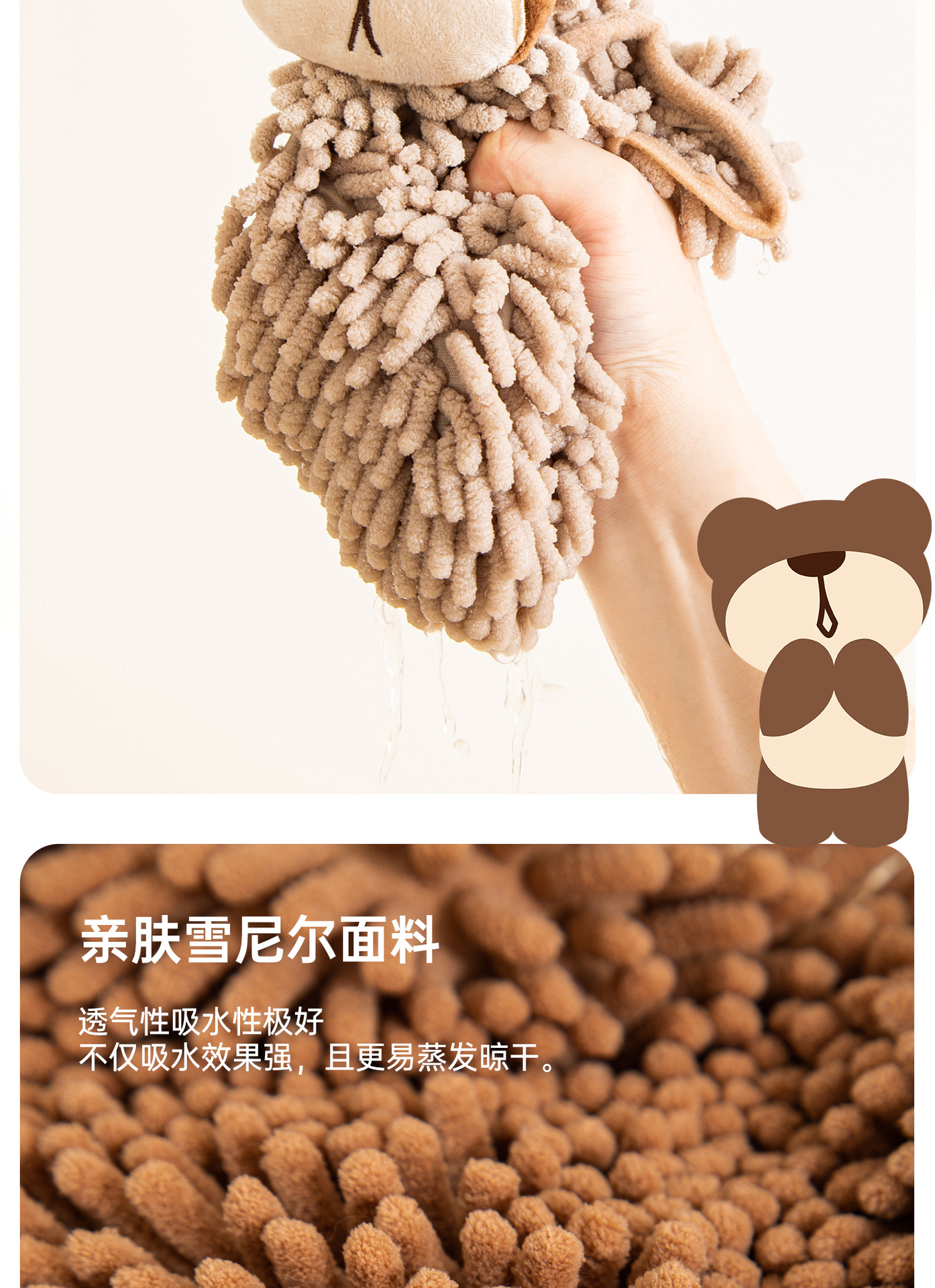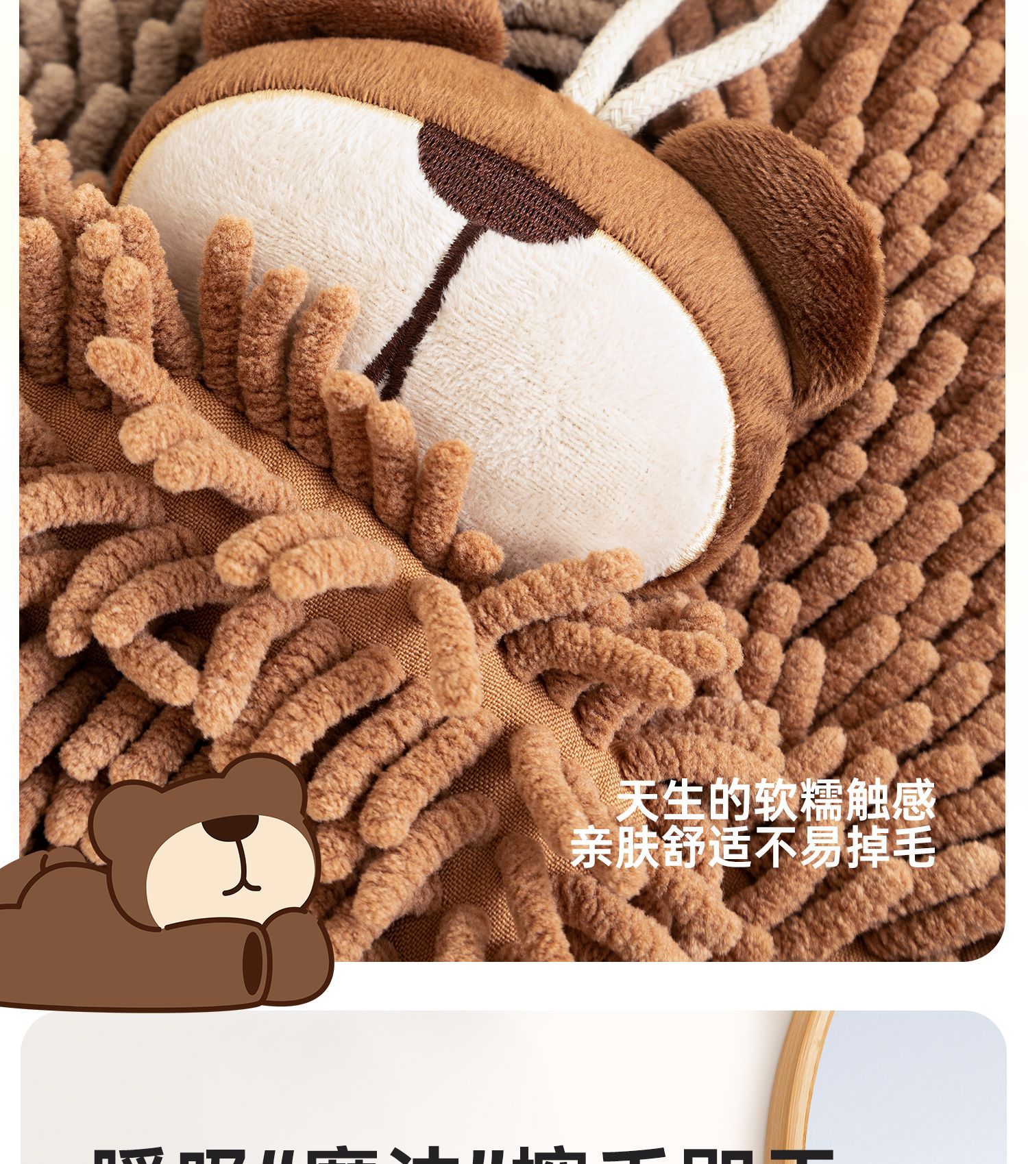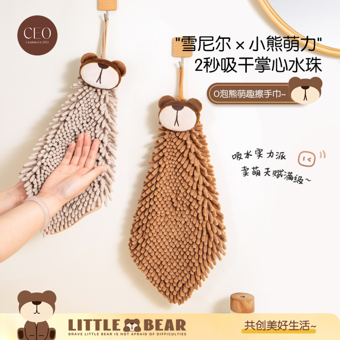 O泡熊雪尼爾擦手巾掛式吸水擦手球加厚速乾廚房衛生間洗手抹布