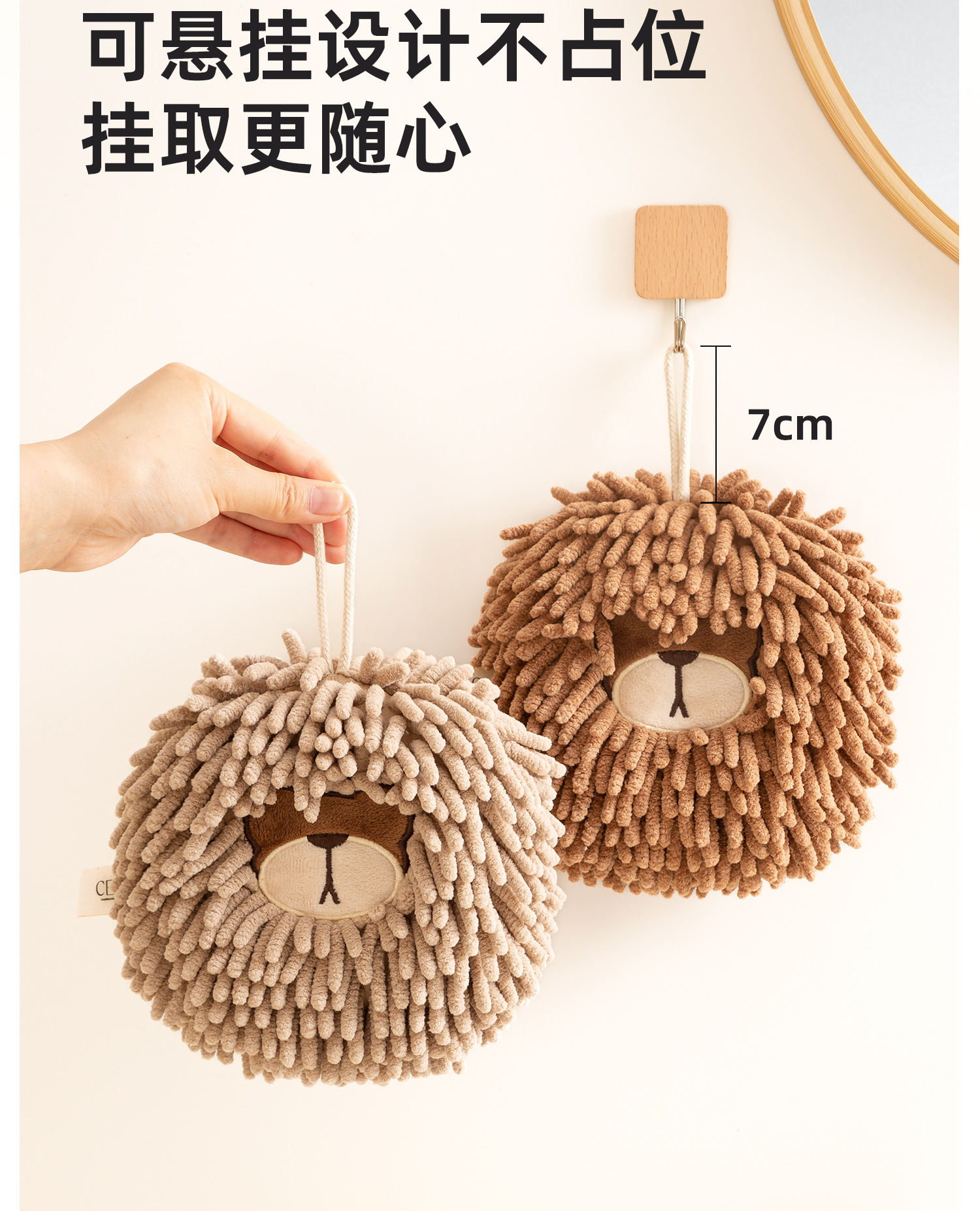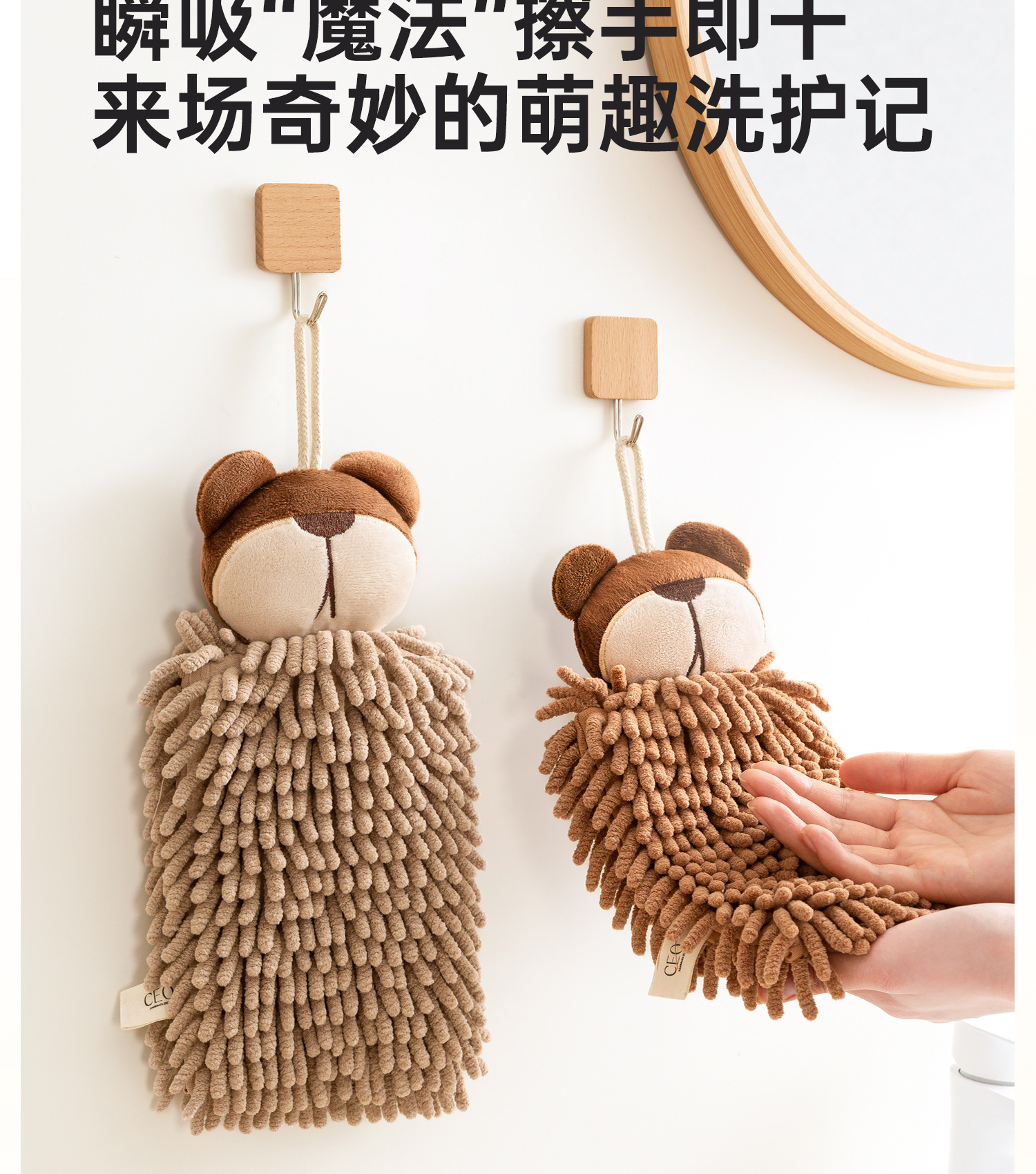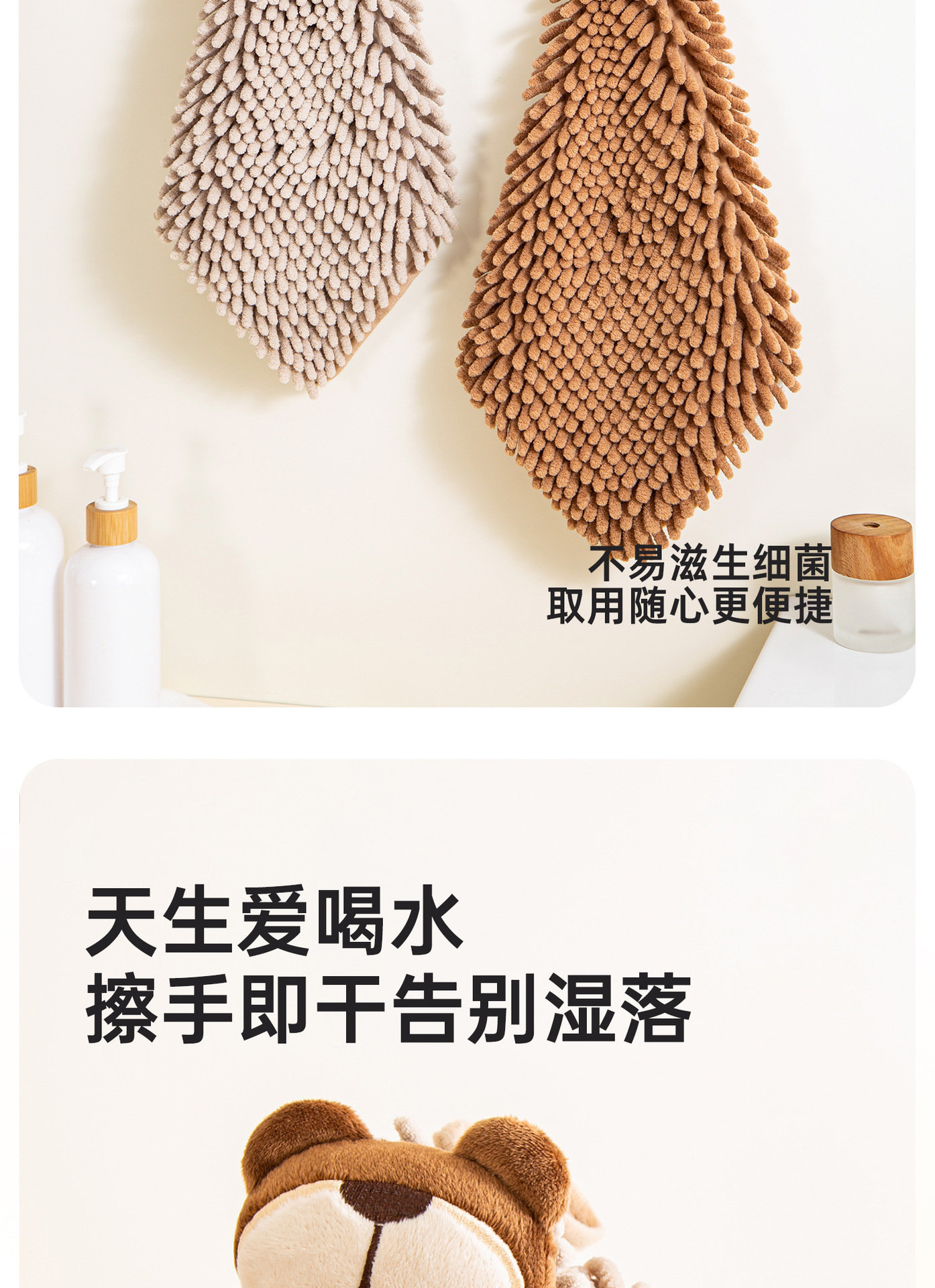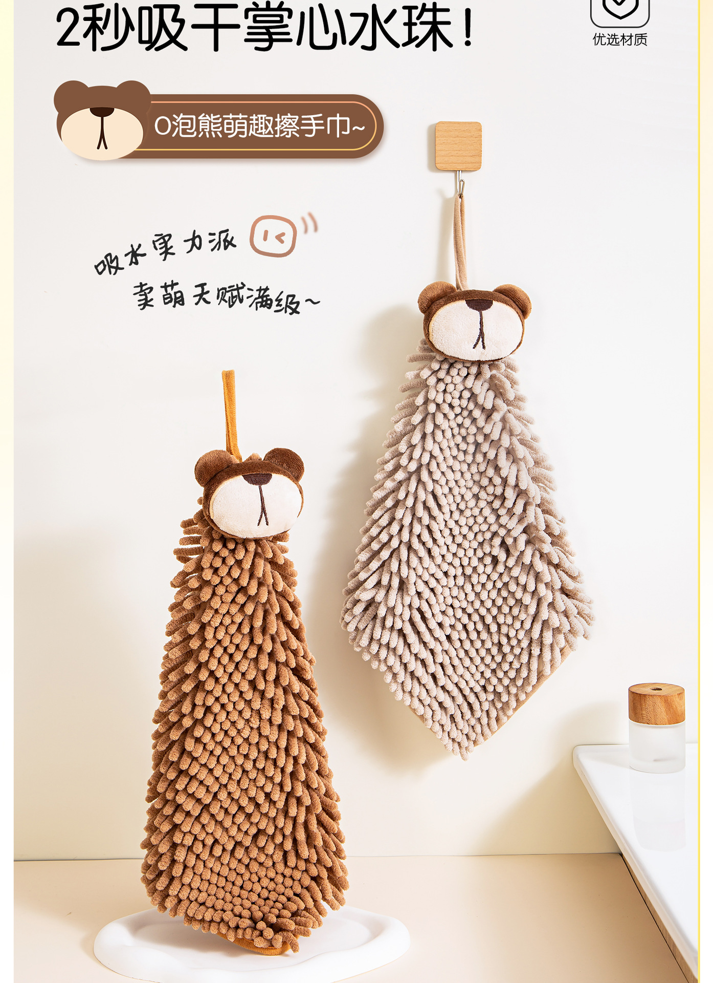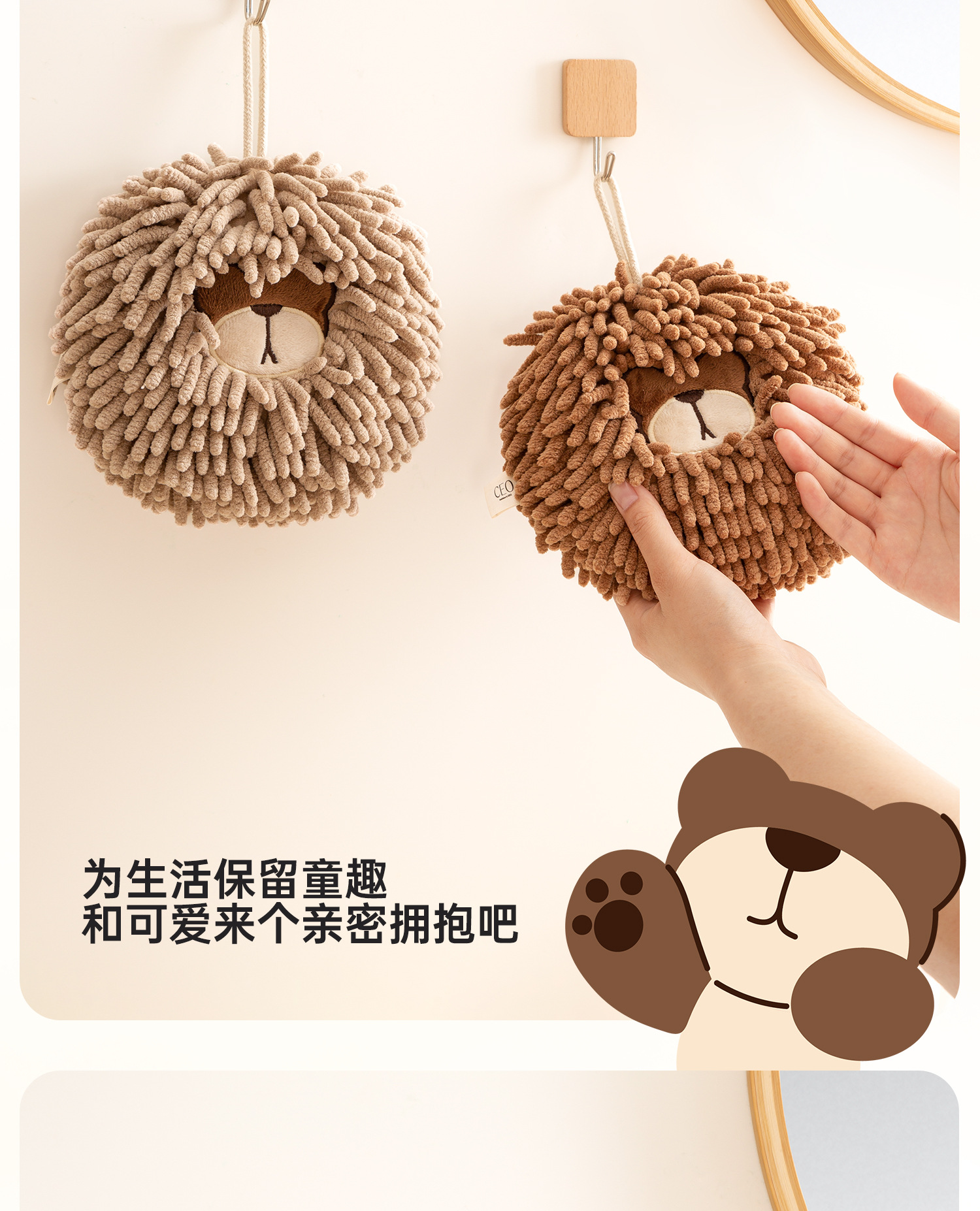 O泡熊雪尼爾擦手巾掛式吸水擦手球加厚速乾廚房衛生間洗手抹布