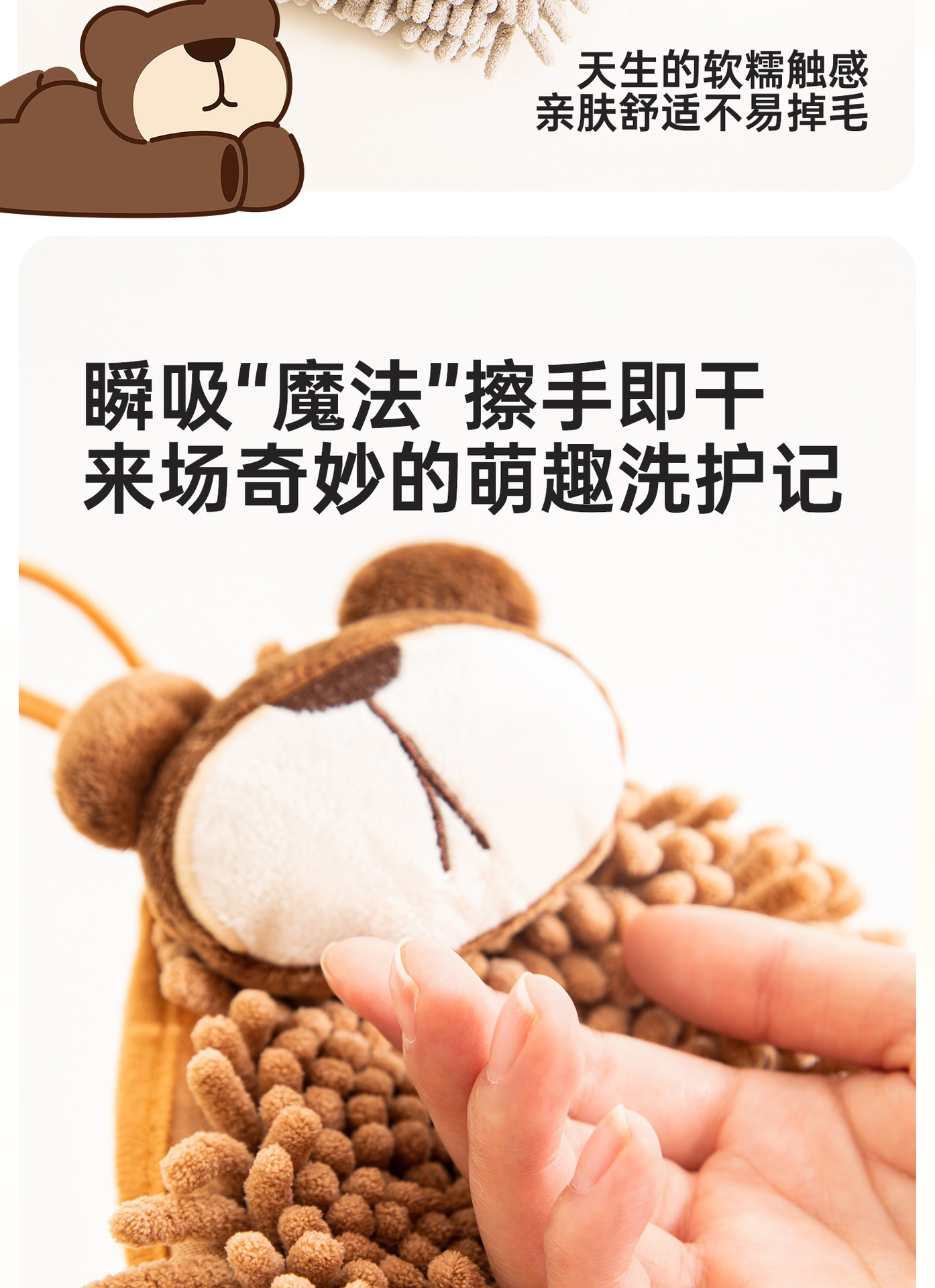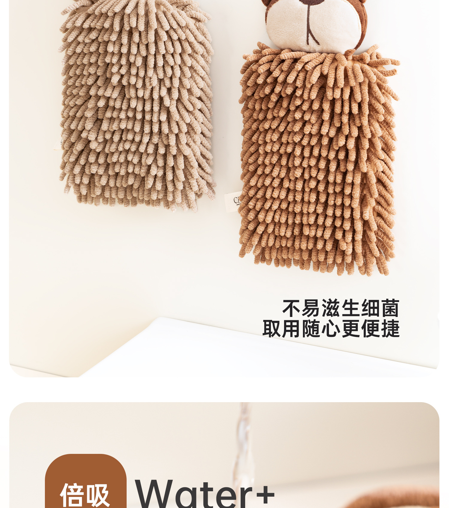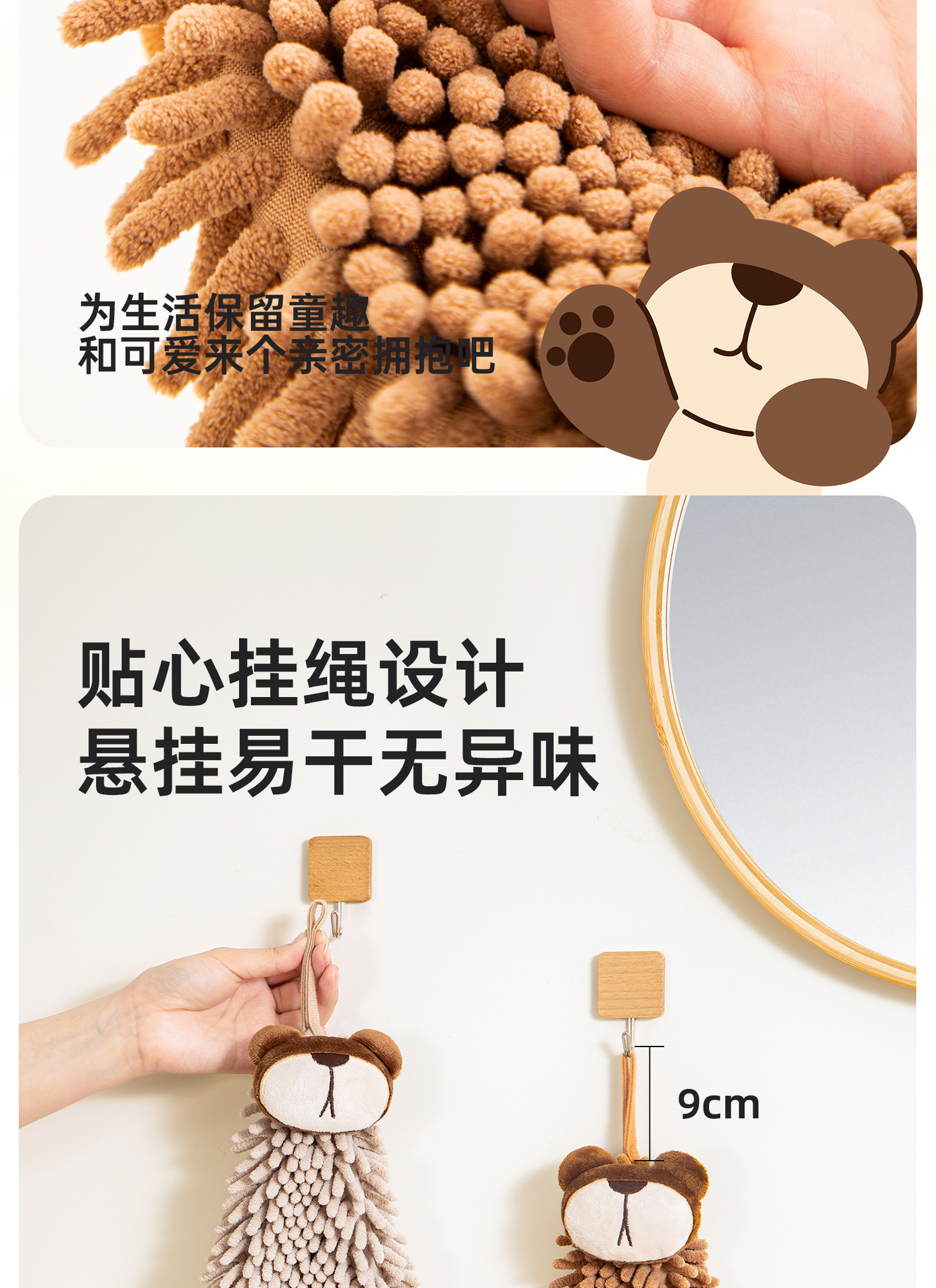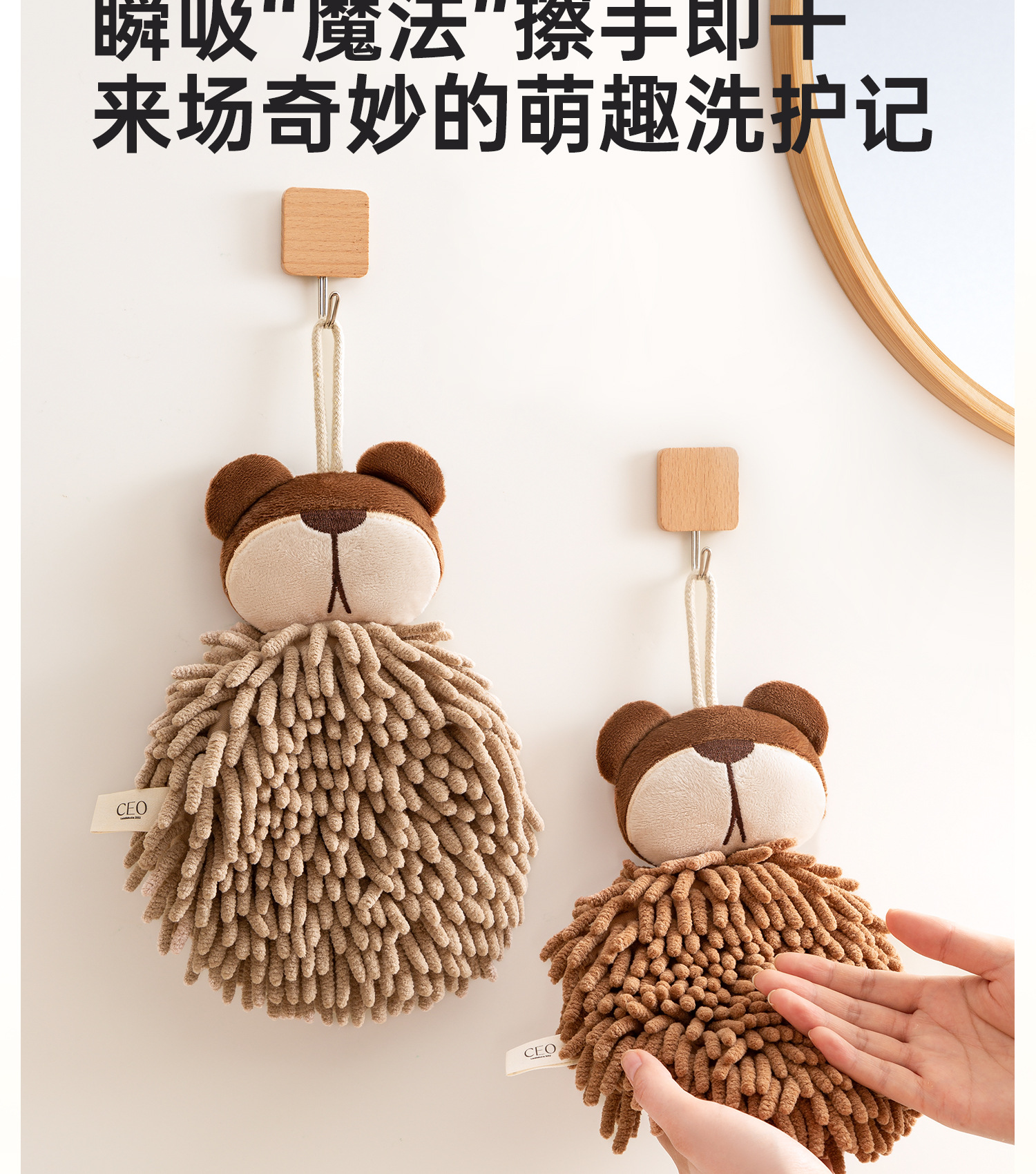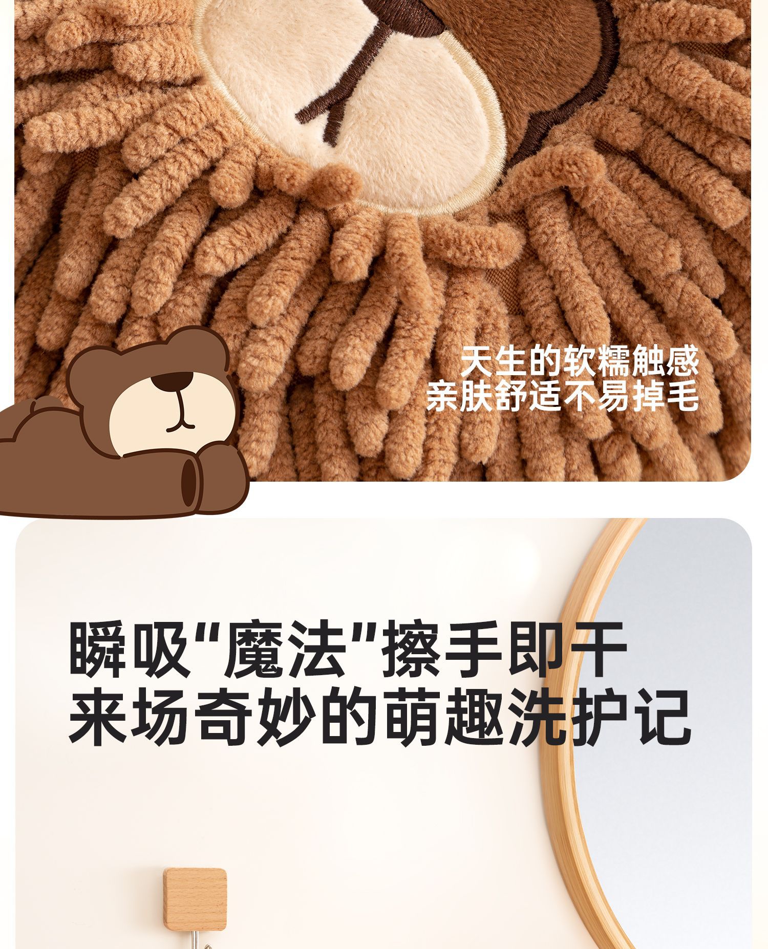 O泡熊雪尼爾擦手巾掛式吸水擦手球加厚速乾廚房衛生間洗手抹布