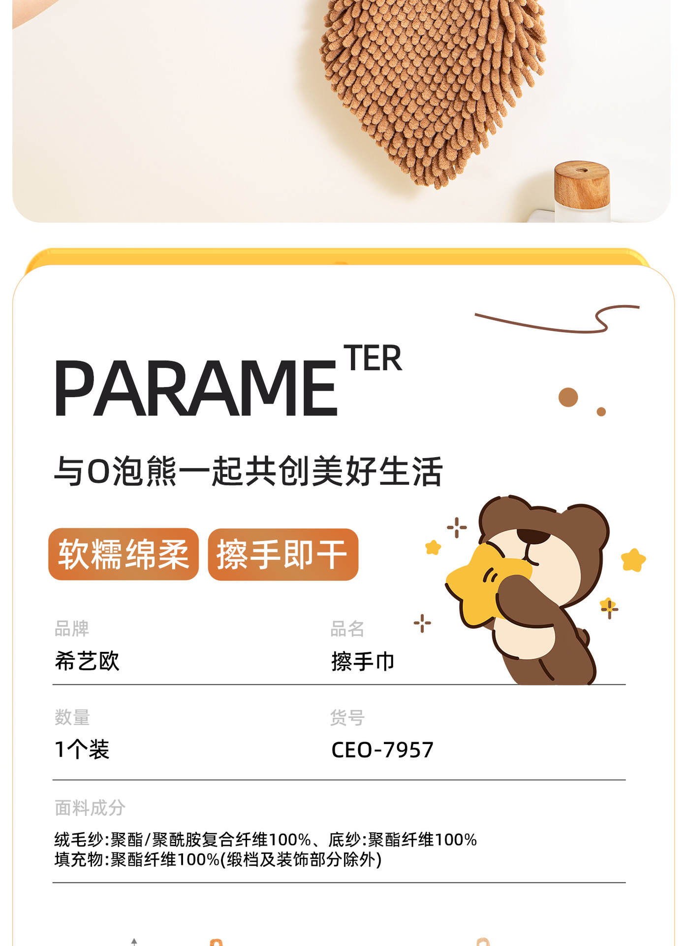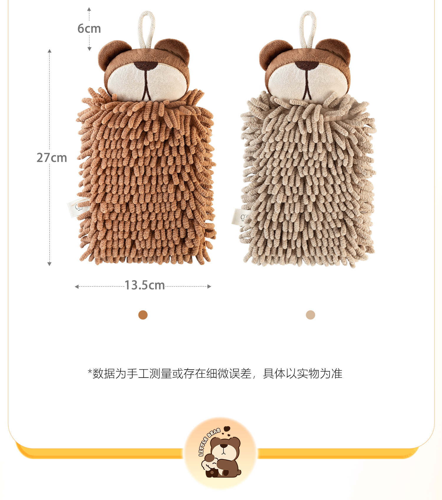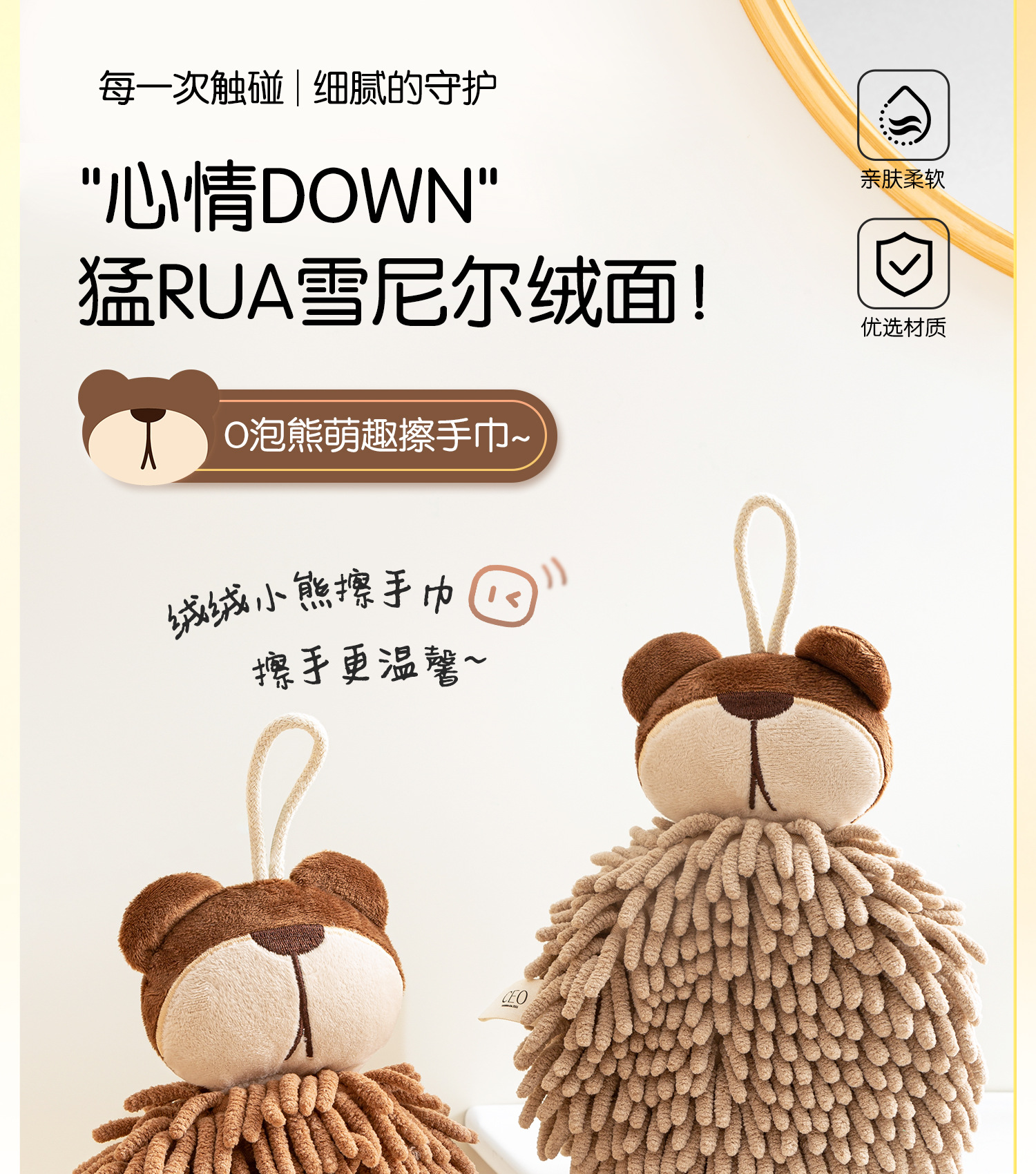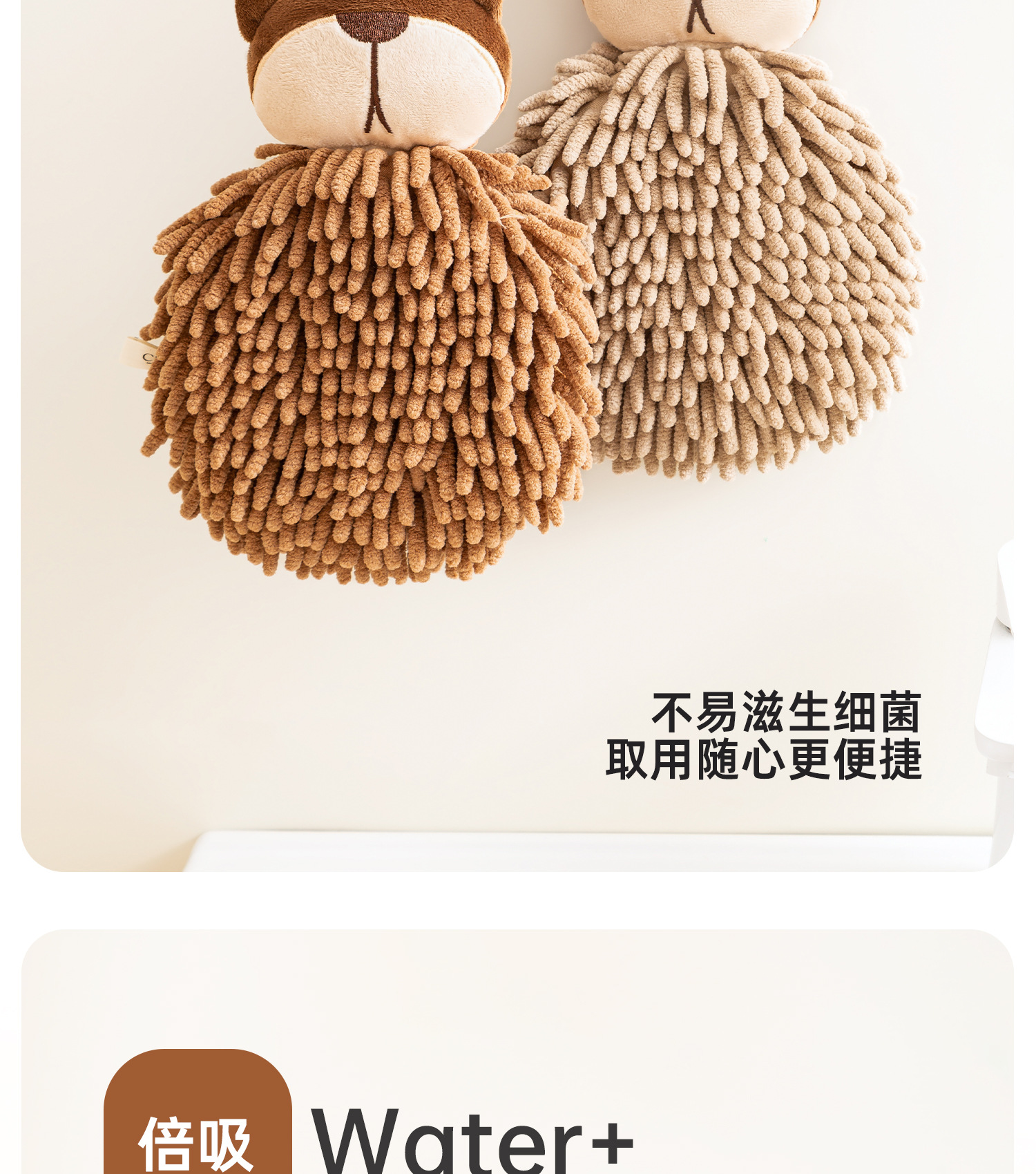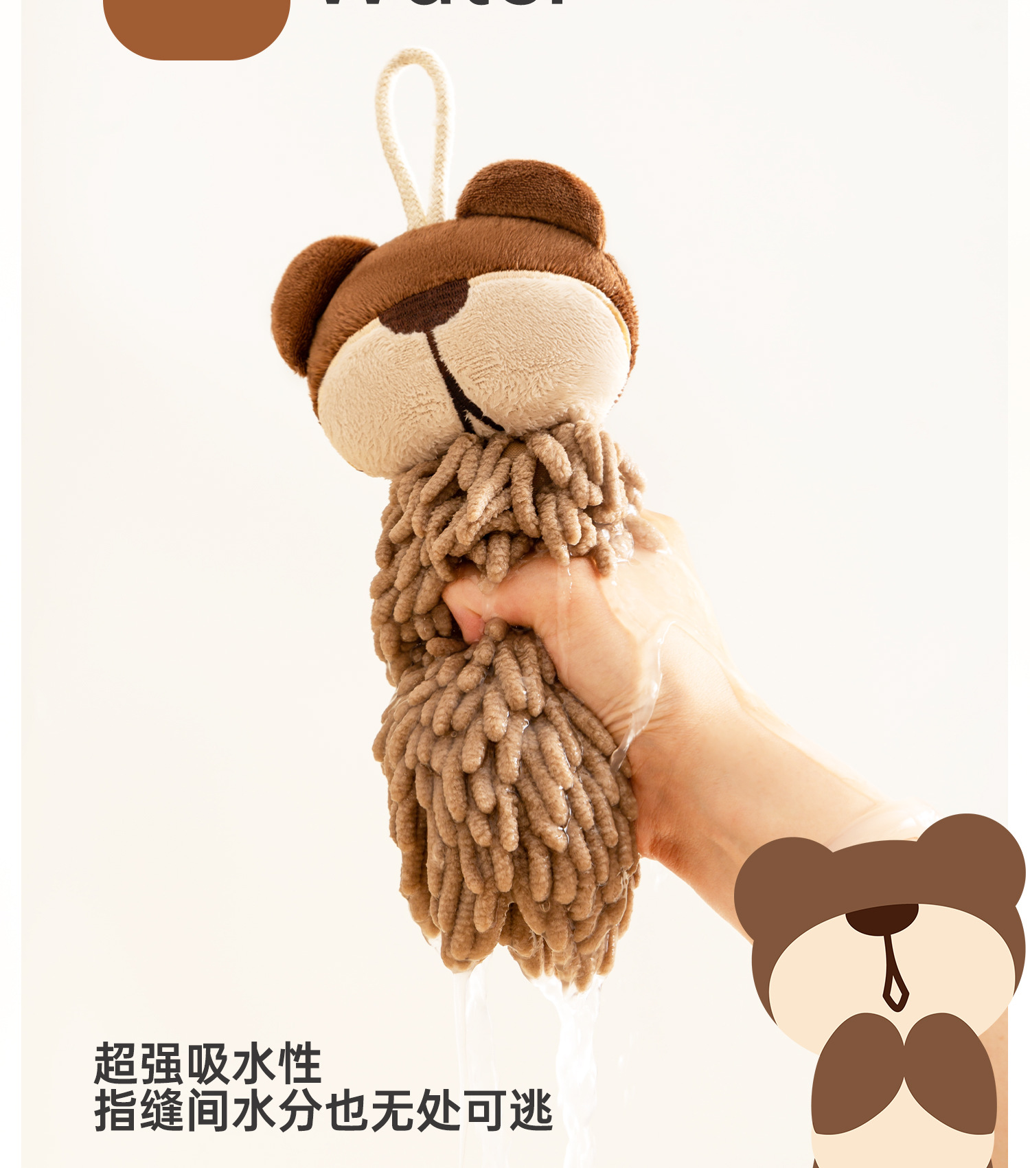 O泡熊雪尼爾擦手巾掛式吸水擦手球加厚速乾廚房衛生間洗手抹布