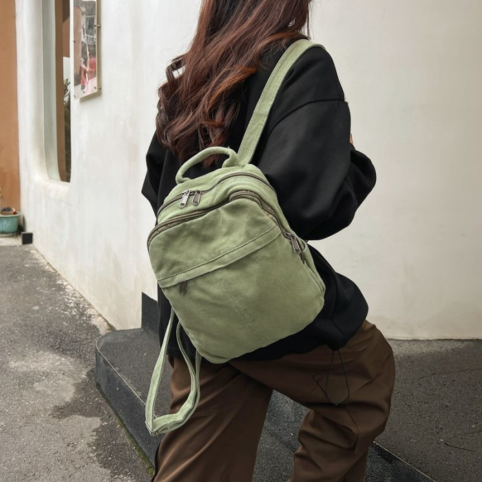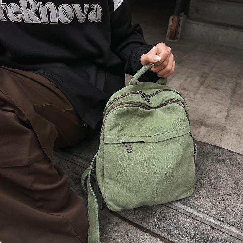 小後後背包女2024新款帆布小巧韓版潮雙肩包百搭休閒旅行輕便平板書包