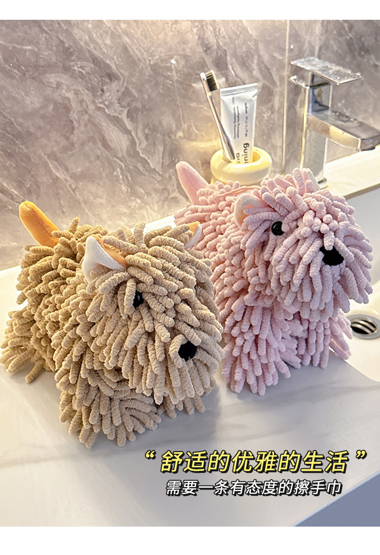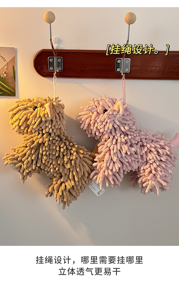 可愛卡通雪尼爾小狗公仔廚房衛生間超強吸水擦手球毛巾掛式擦手巾