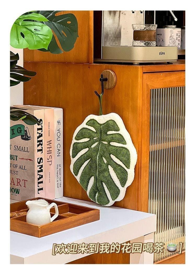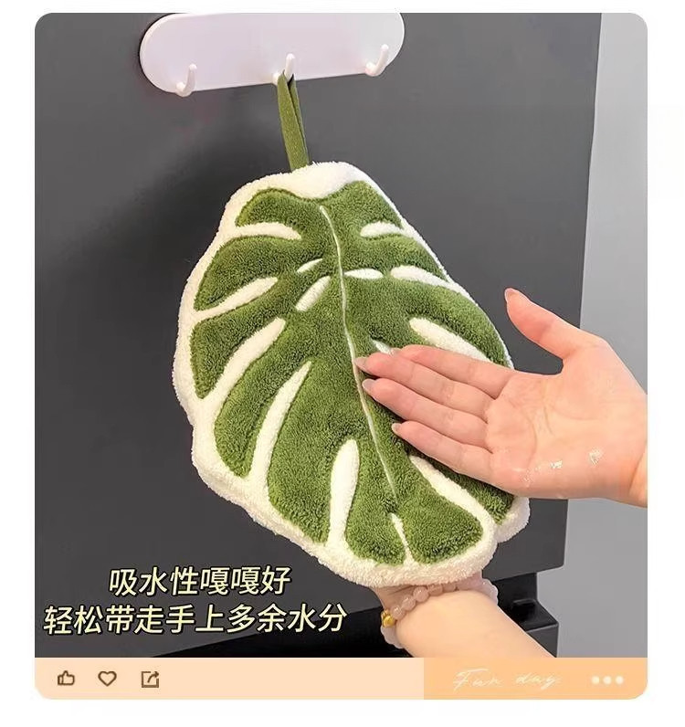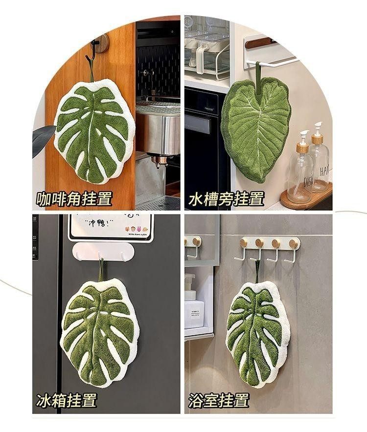 珊瑚絨家用廚房掛式擦手巾擦手帕擦手毛巾創意葉子吸水速乾加厚