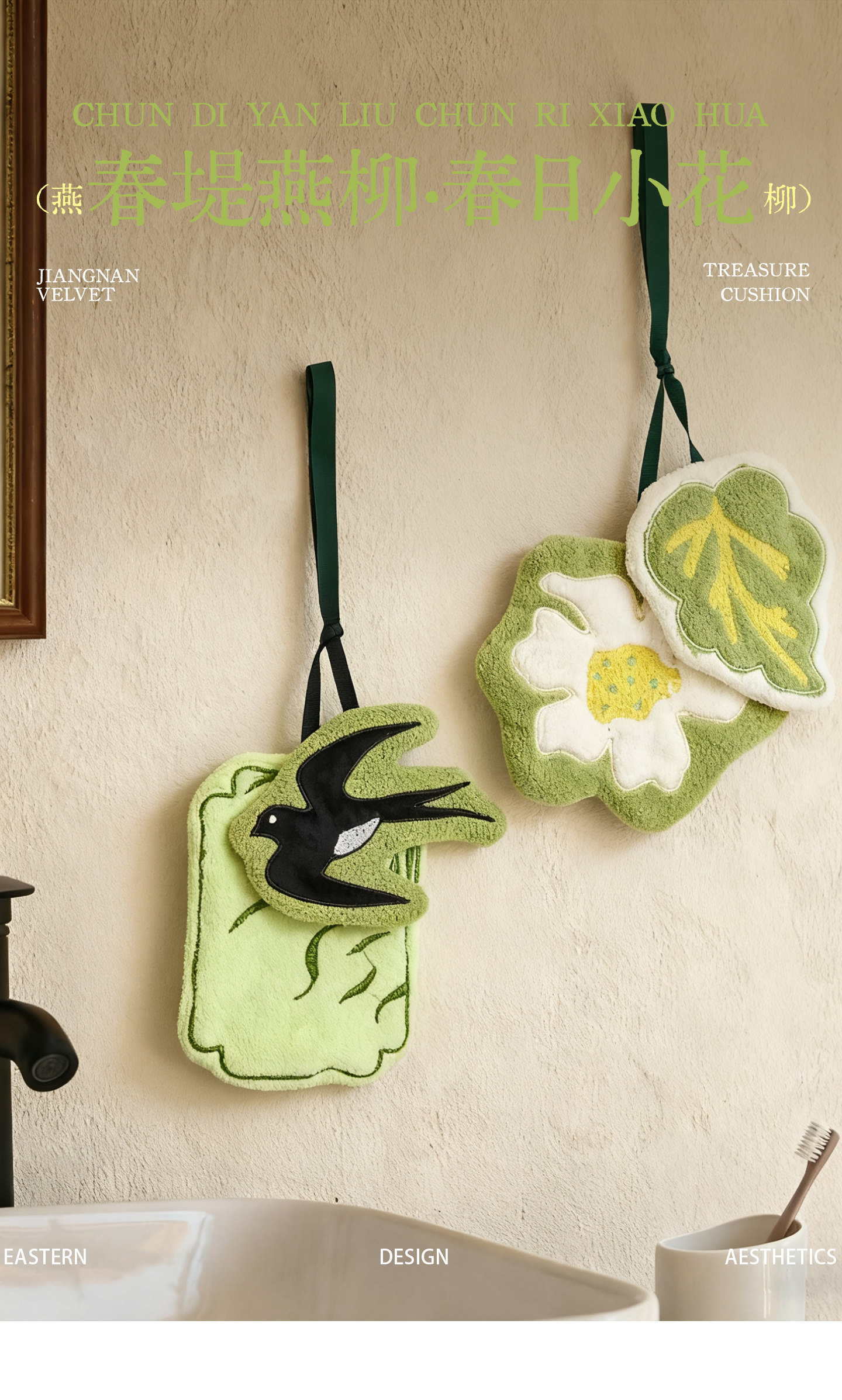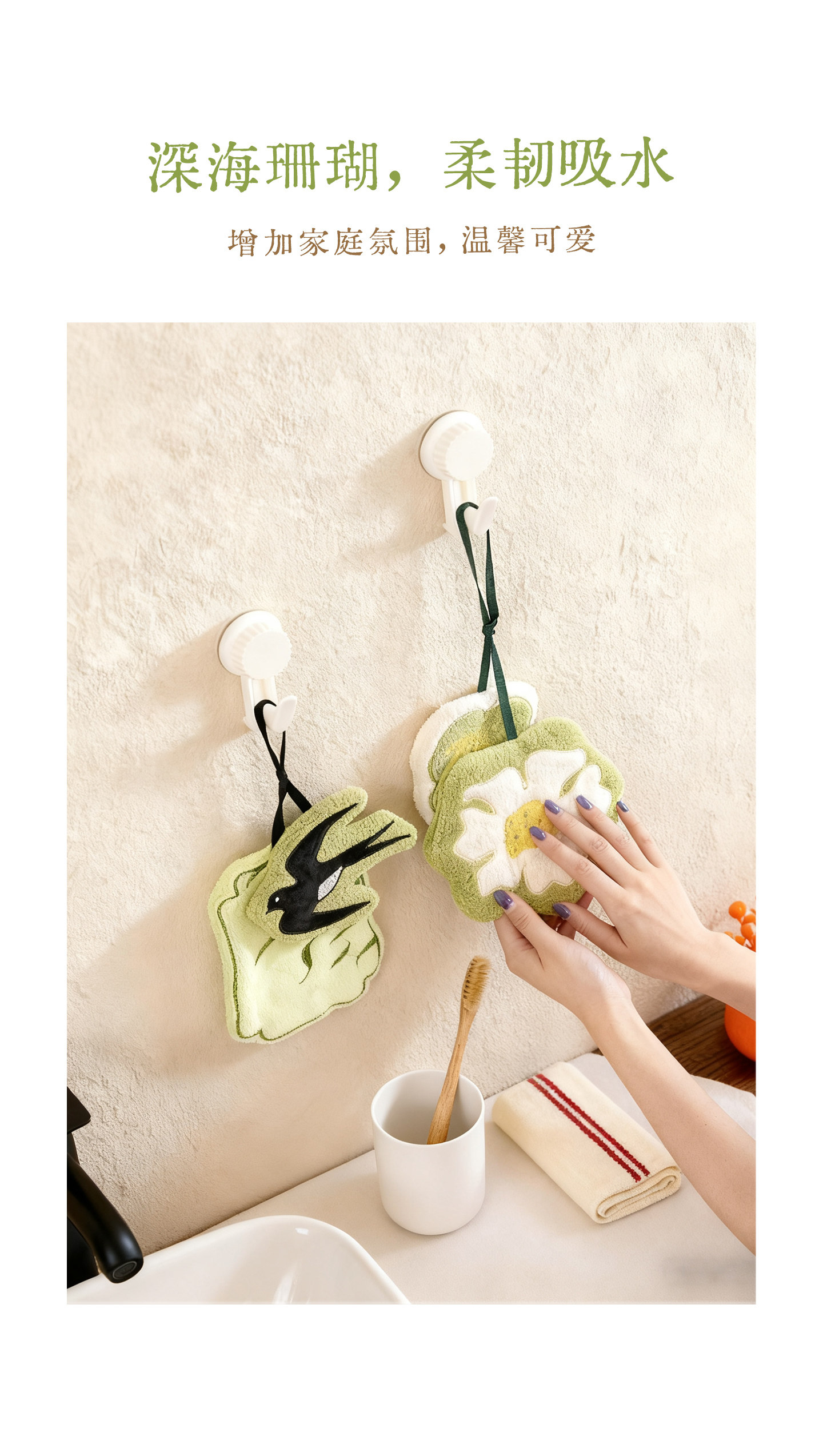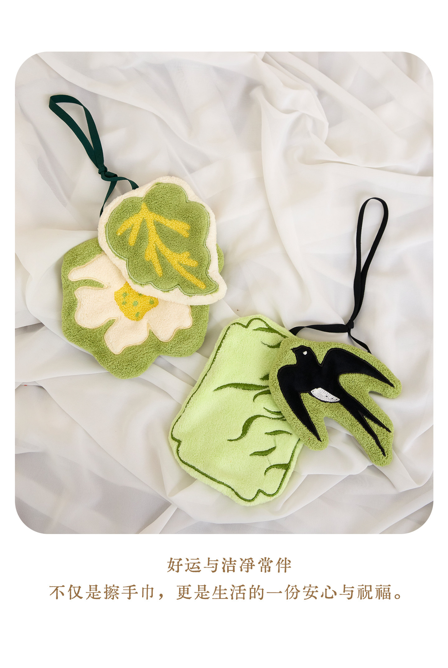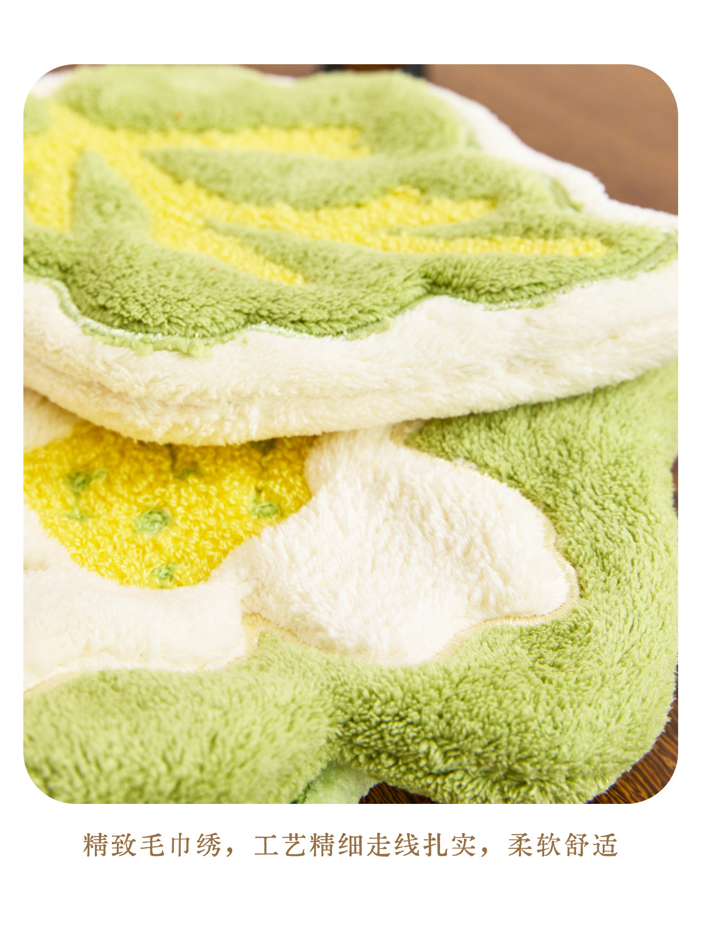 新中式廚房掛式珊瑚絨擦手巾可愛吸水加厚手帕浴室植物葉子小毛巾