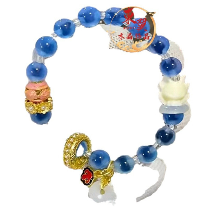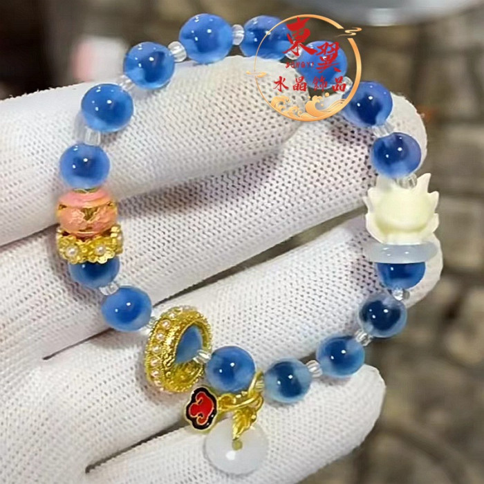 藍糖心瑪瑙九尾狐轉運珠跑環多巴胺女手鏈香灰瓷琉璃金箔半糖手串