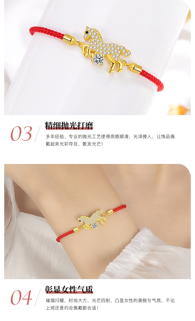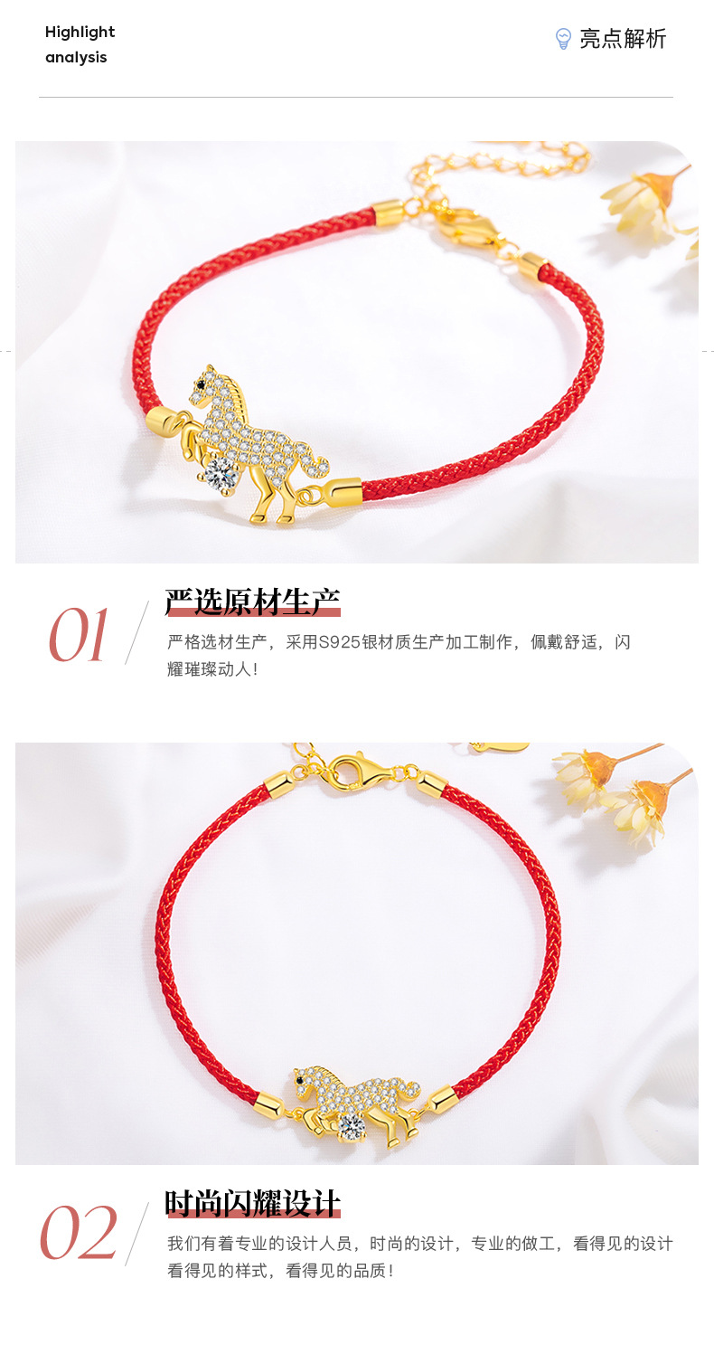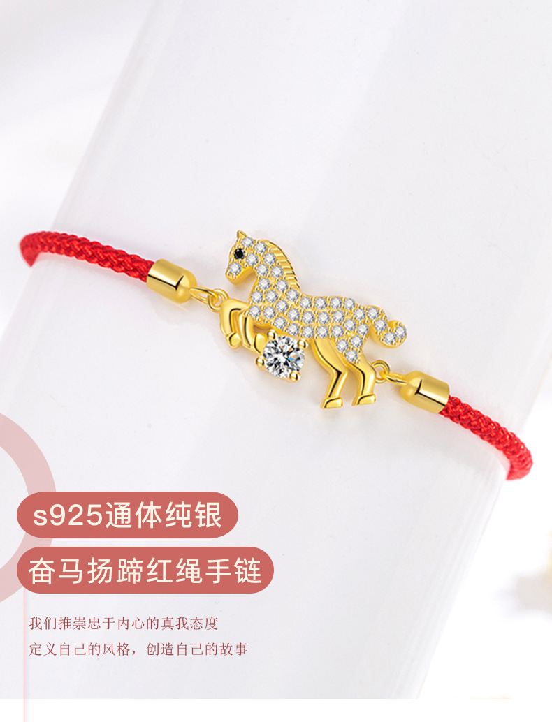 卡萊妮s925純銀原創奮馬敭蹄紅繩手鏈本命年紅繩手鏈馬年手繩手鏈