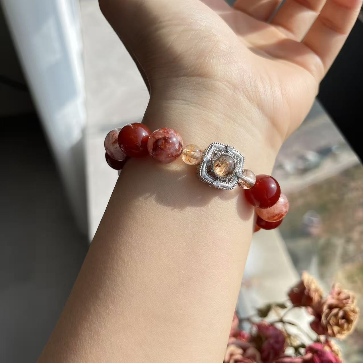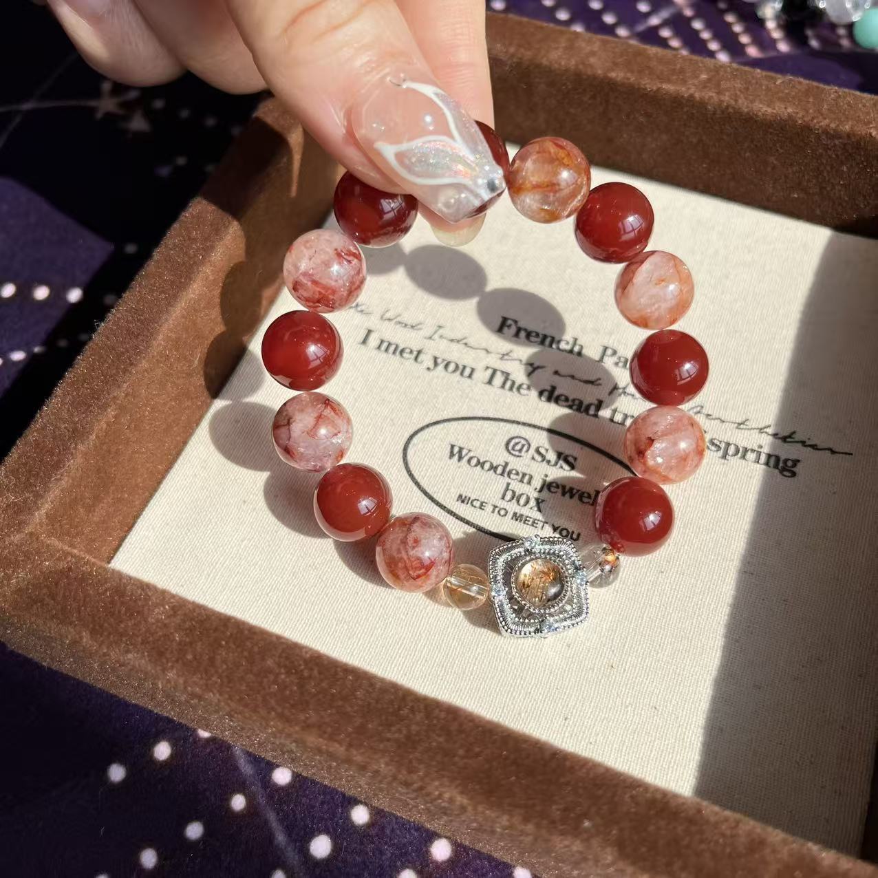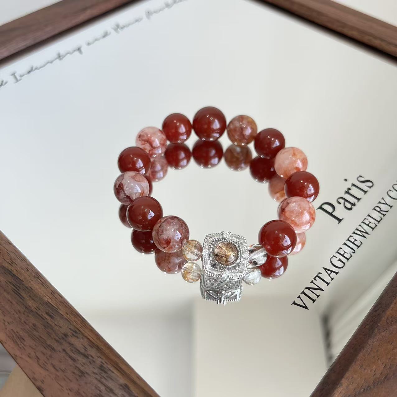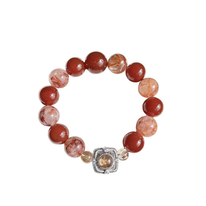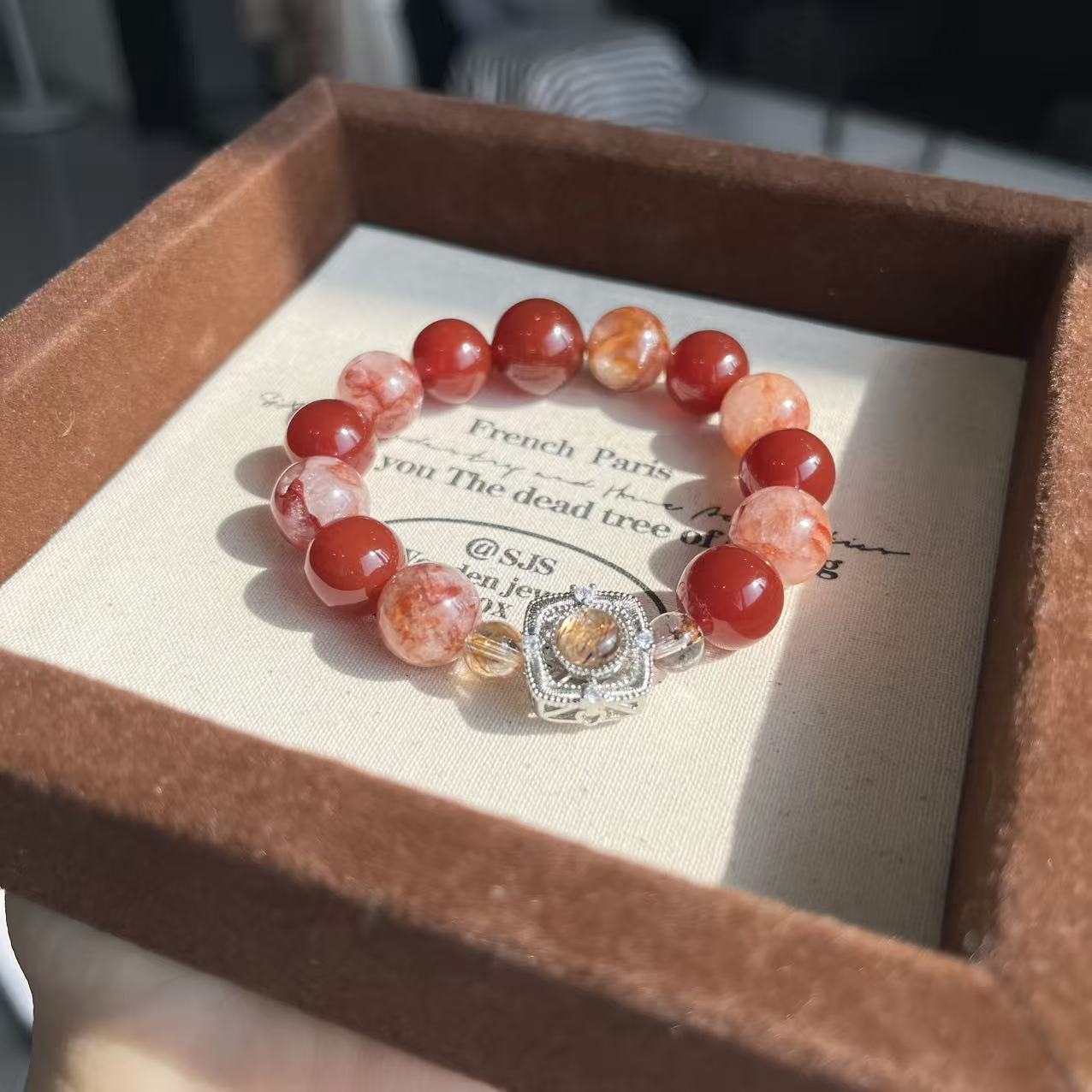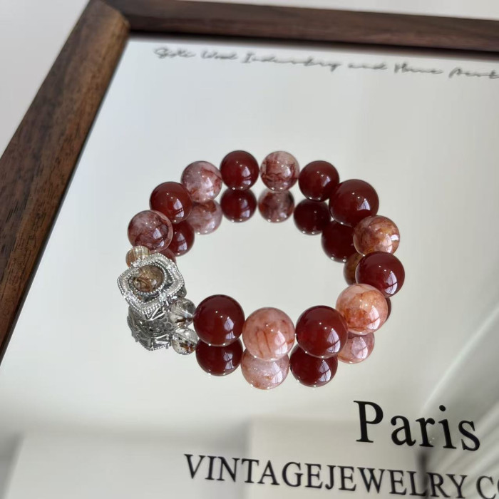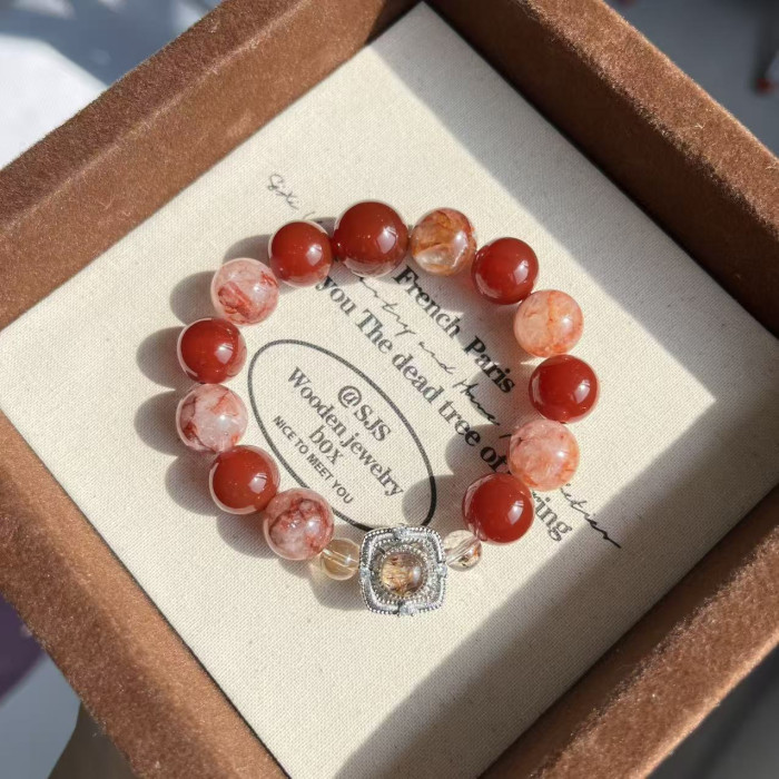 【金胭脂】天然黑金超七鑲嵌盒子手串紅膠花紅瑪瑙小衆輕奢高級感
