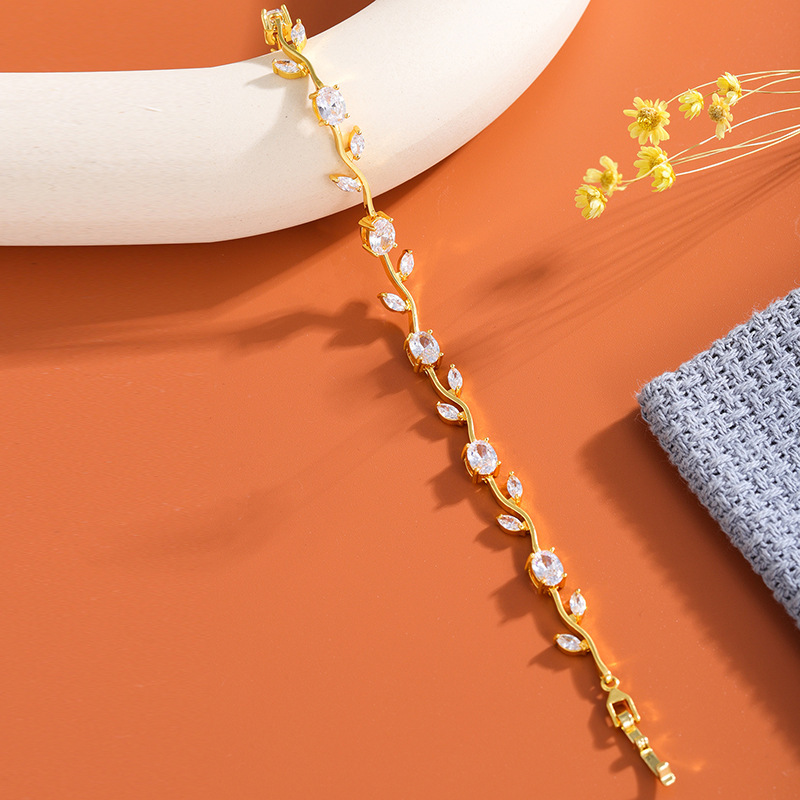 新款歐美簡約設計葉子形狀氣質小衆百搭彩鋯石銅鍍18k金