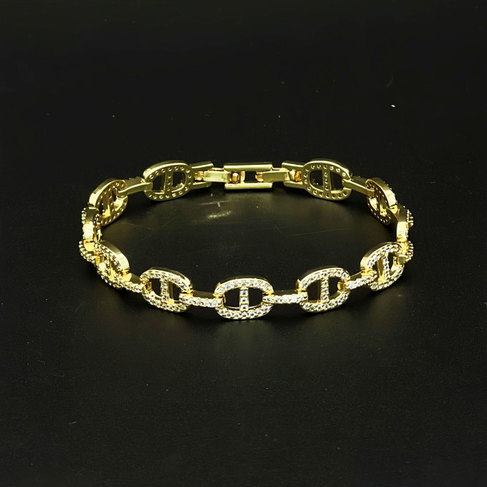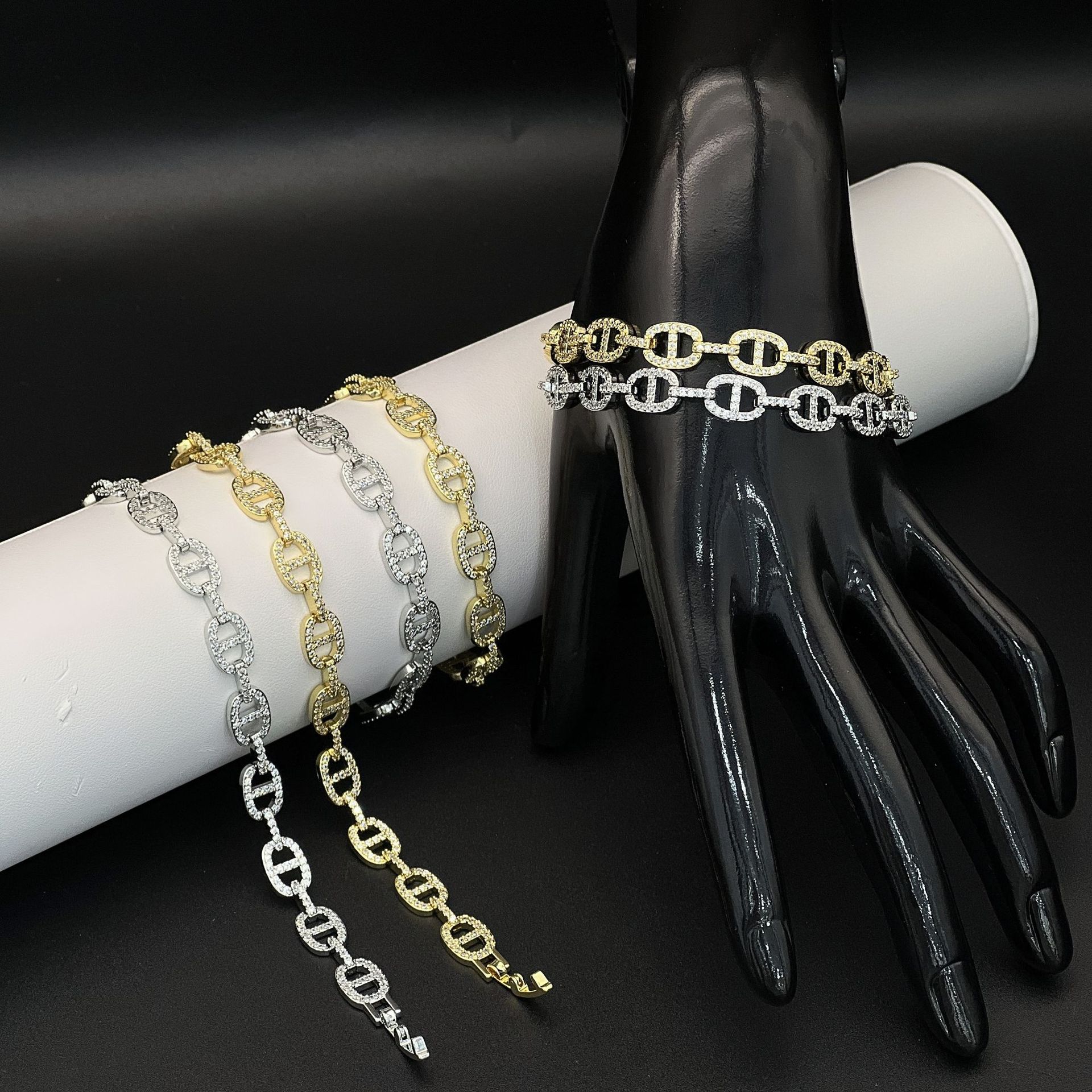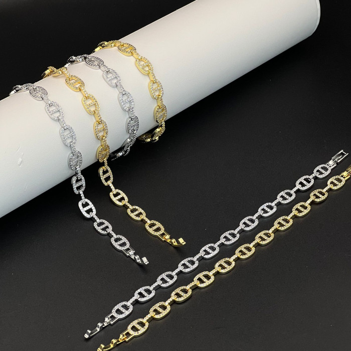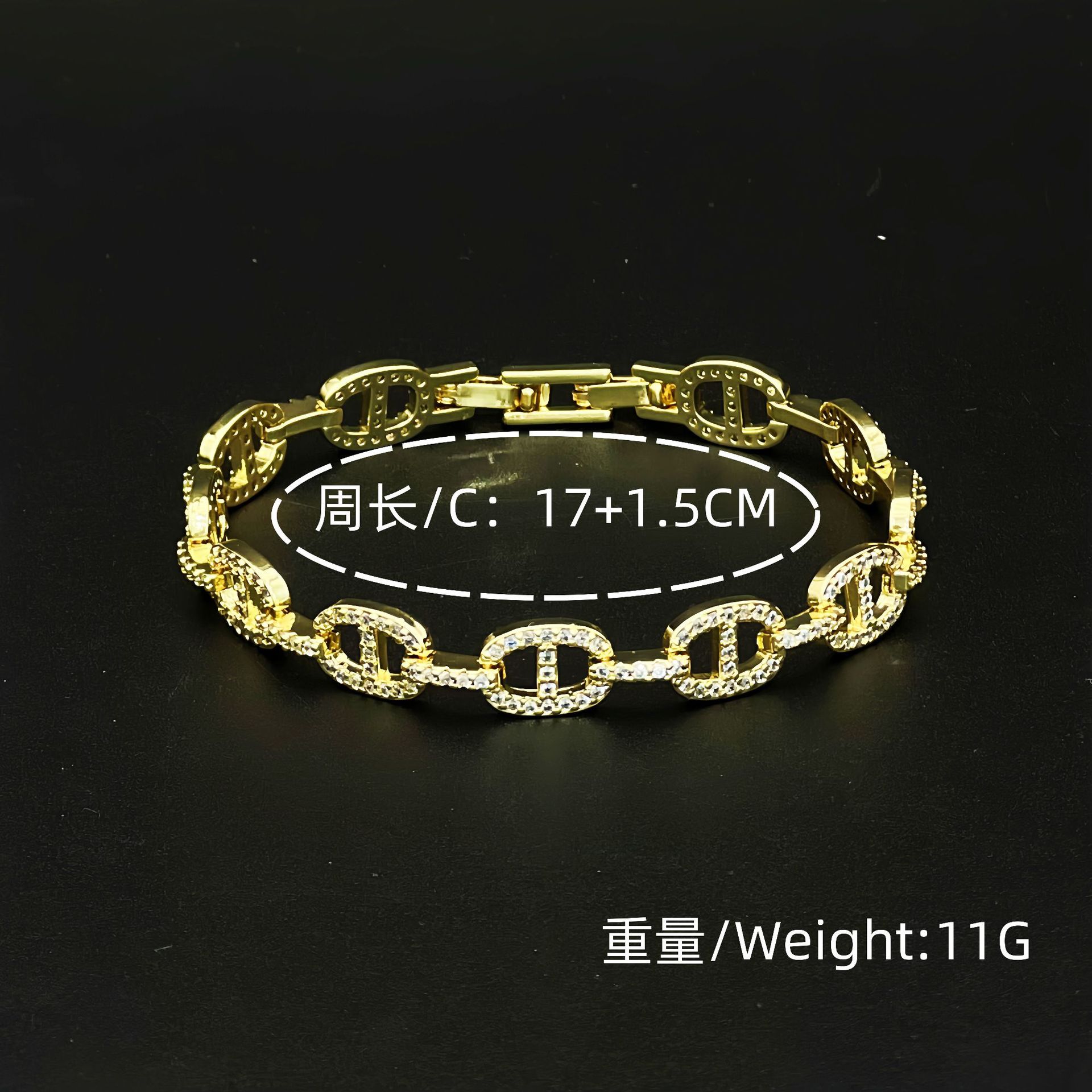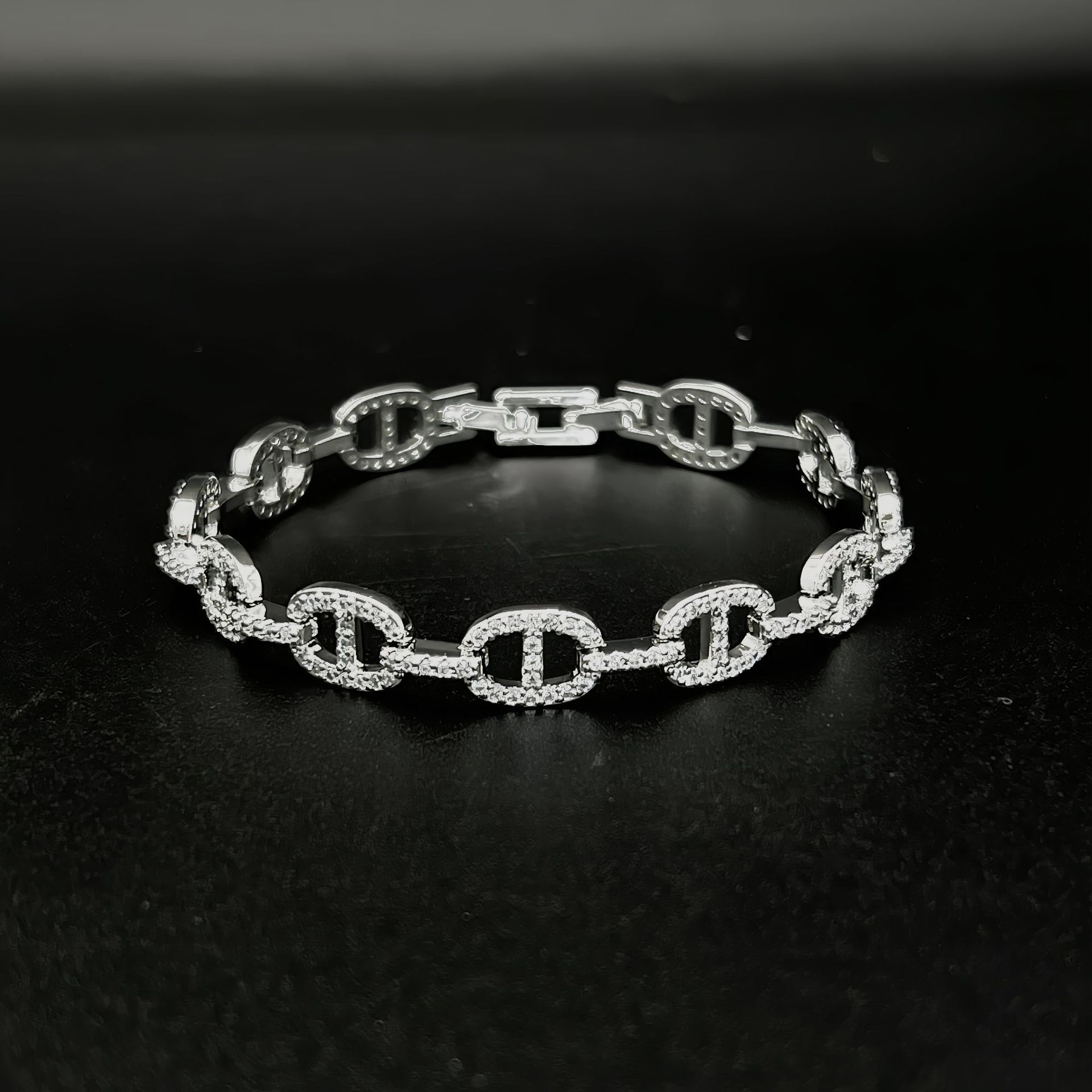 歐美氣質輕奢滿鑽鋯石豬鼻子手鏈高版本嘻哈