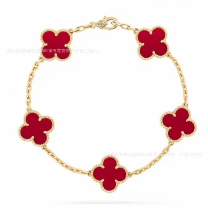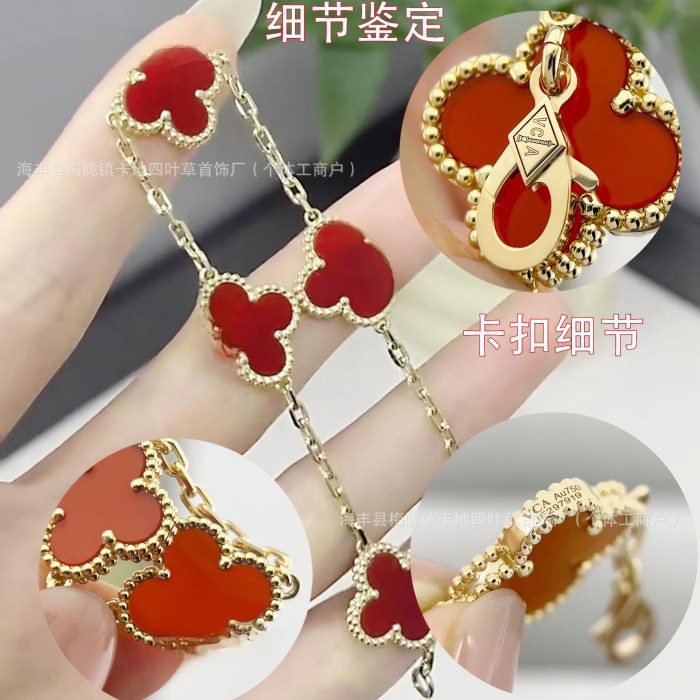 四葉草五花手鏈【天花板瘦花】V金厚鍍18K玫瑰金天然玉髓瑪瑙手飾