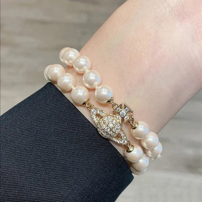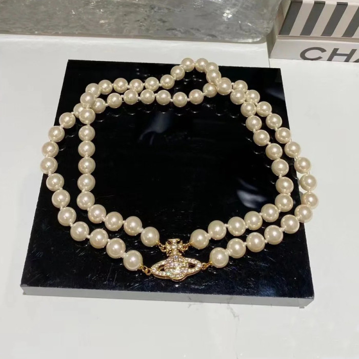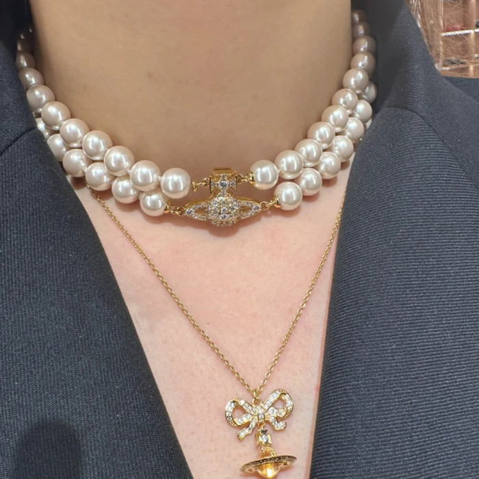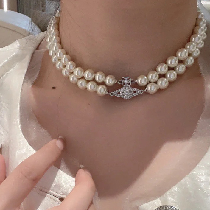 西太後雙層珍珠磁吸釦土星手鏈 項鍊 熱款高級感chocker鎖骨鍊