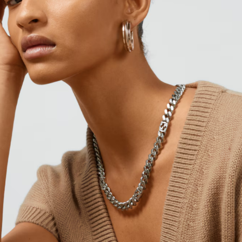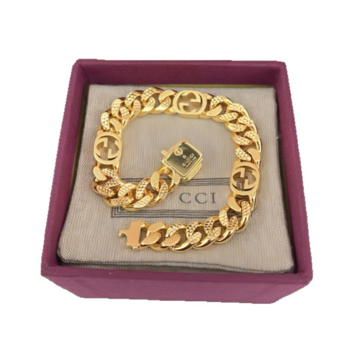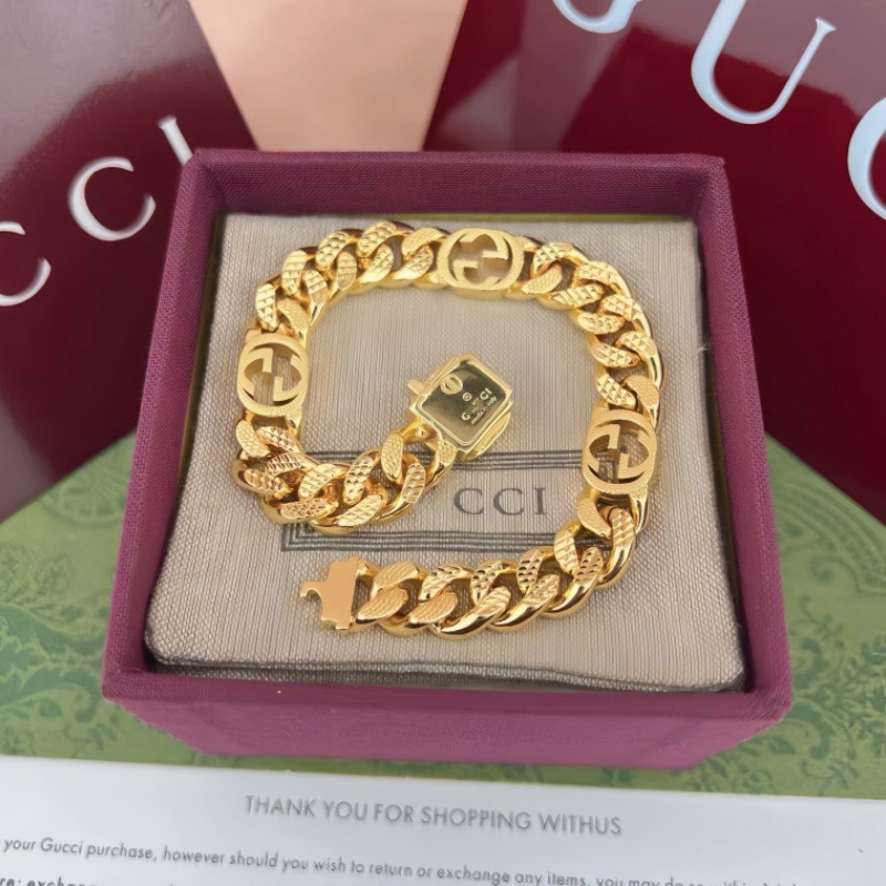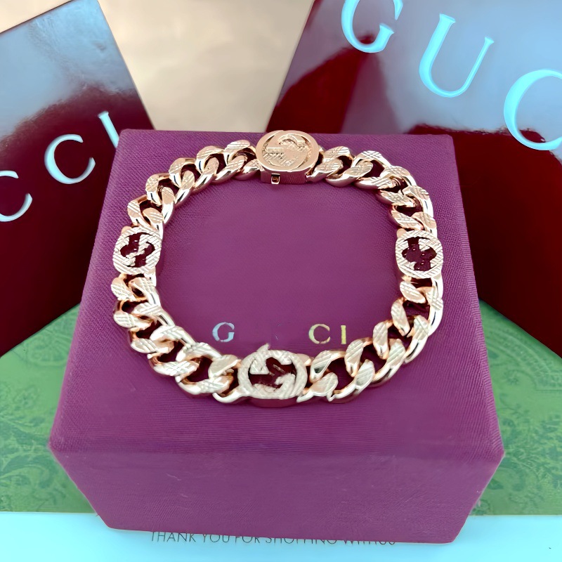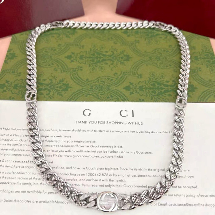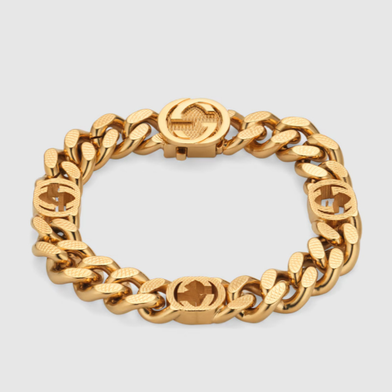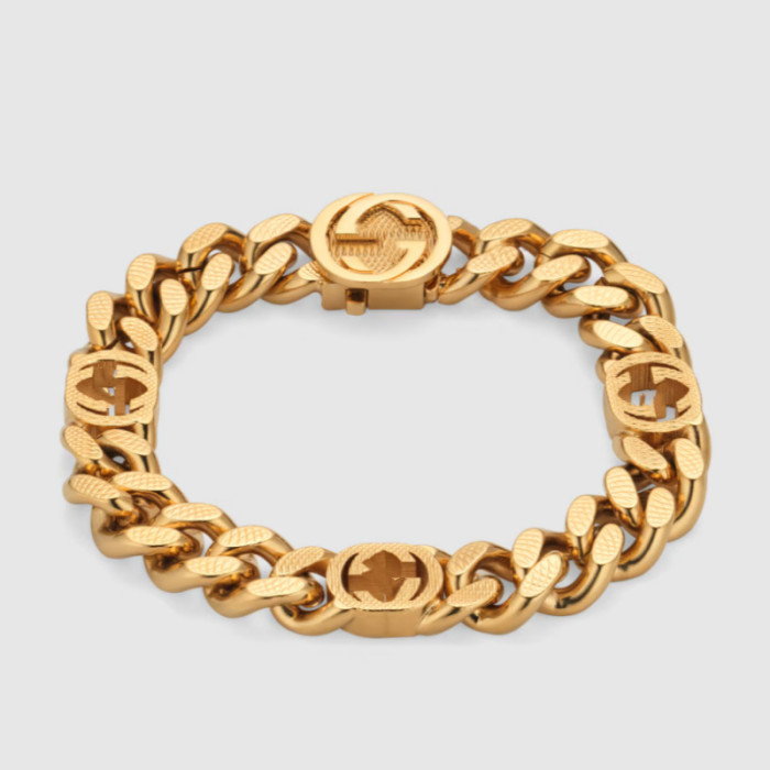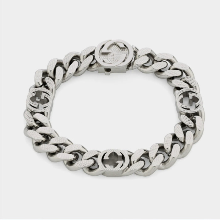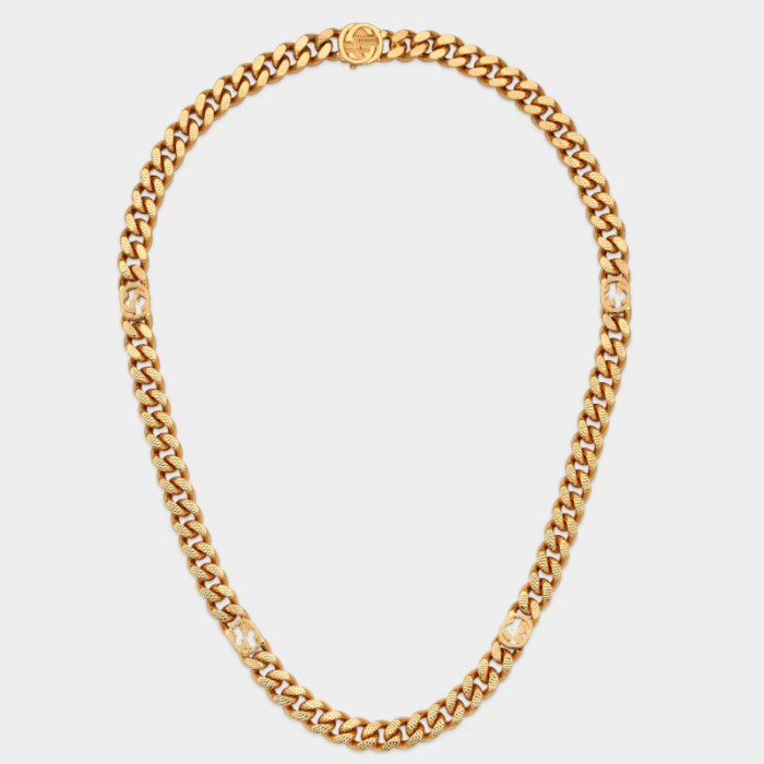 古家雙G互釦標飾雕刻花手鏈個性霸氣經典歐美風車花項鍊男女同款
