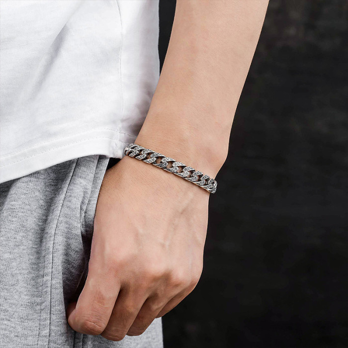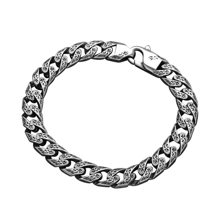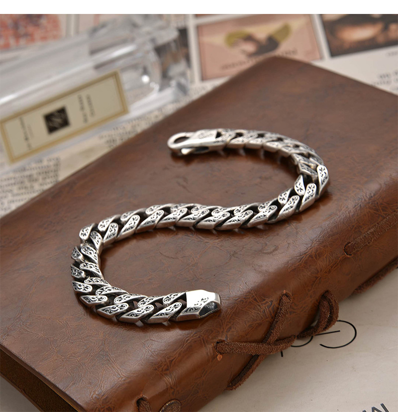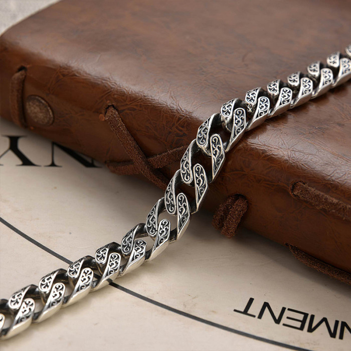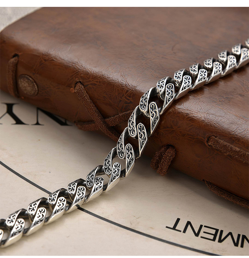 新款925鍍銀古巴手鏈男款復古生日禮物手工輕奢唐草紋男生手飾嘻