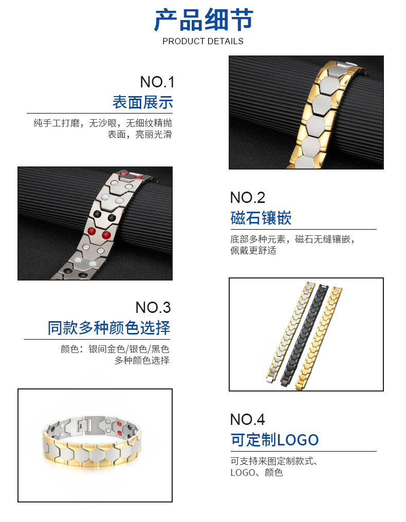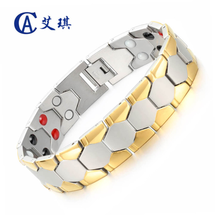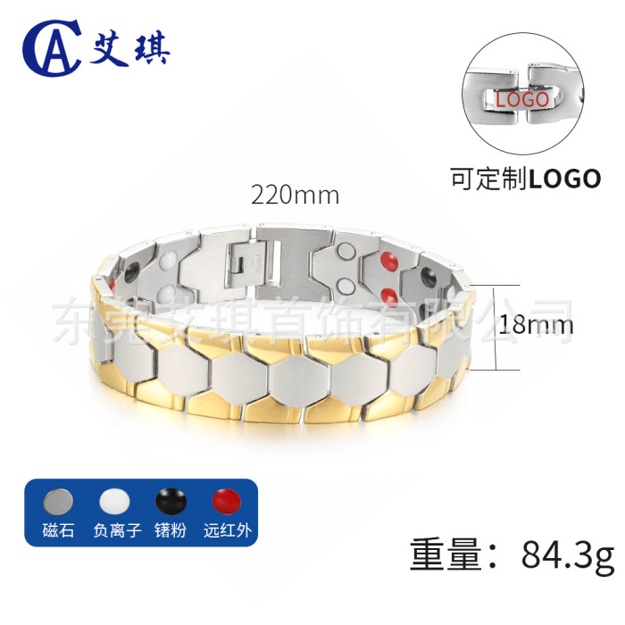 不鏽鋼手鏈男足球設計磁性不鏽鋼手鏈磁石能量鈦鋼手鏈