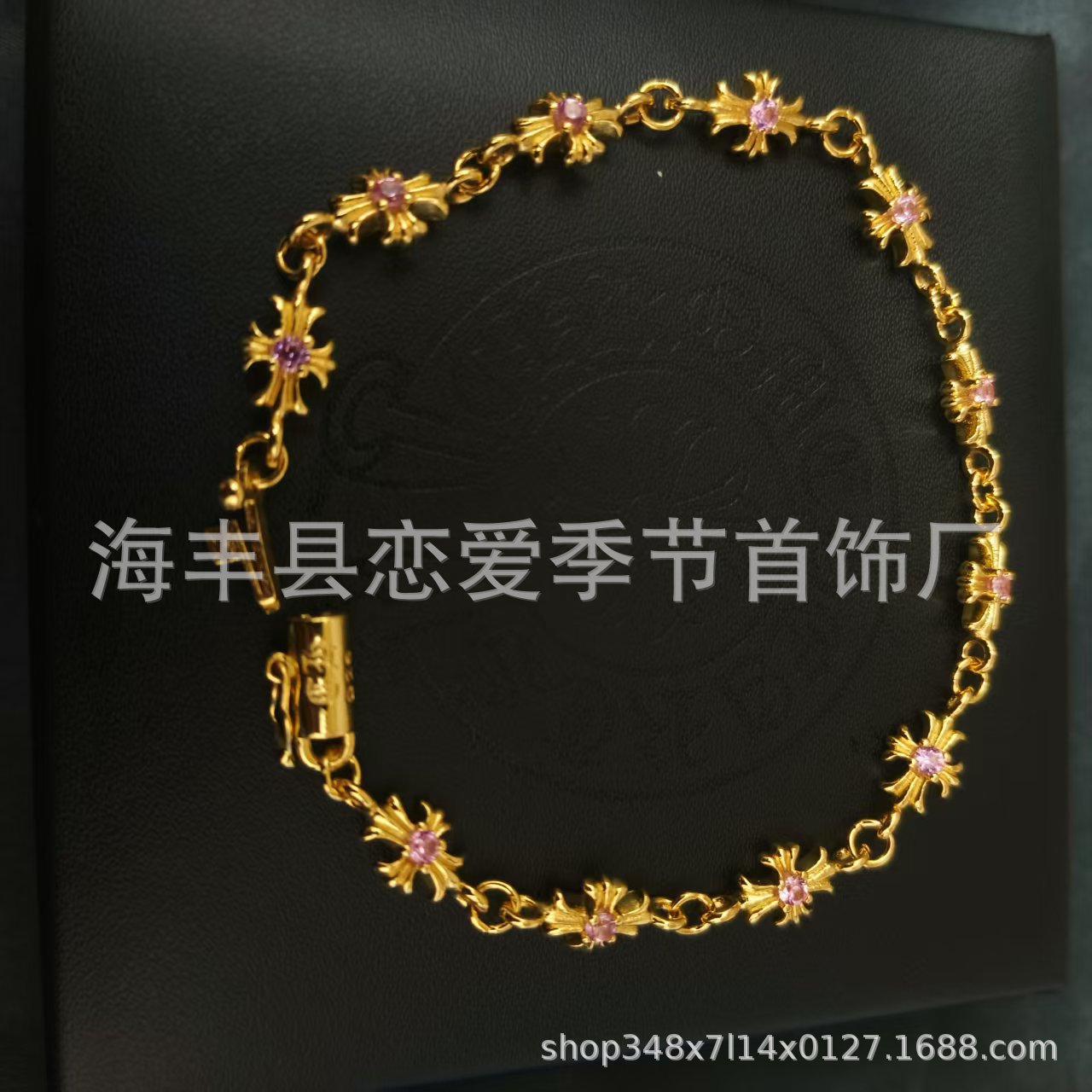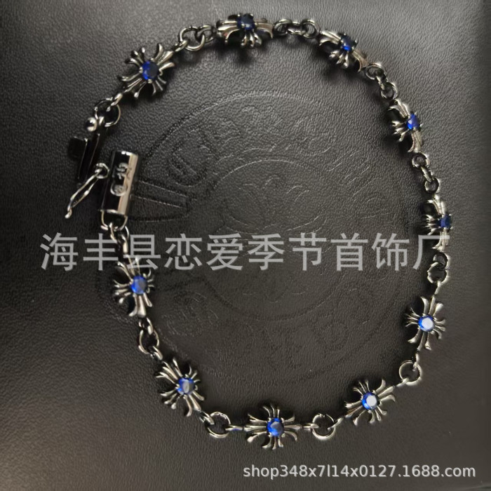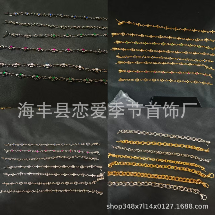 克羅芯十字花手鏈時尚字母細款粗款帶鑽O字鏈男女可帶手工鏈飾品