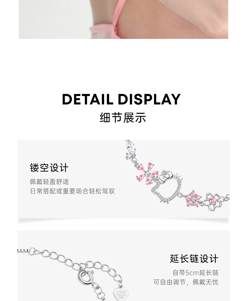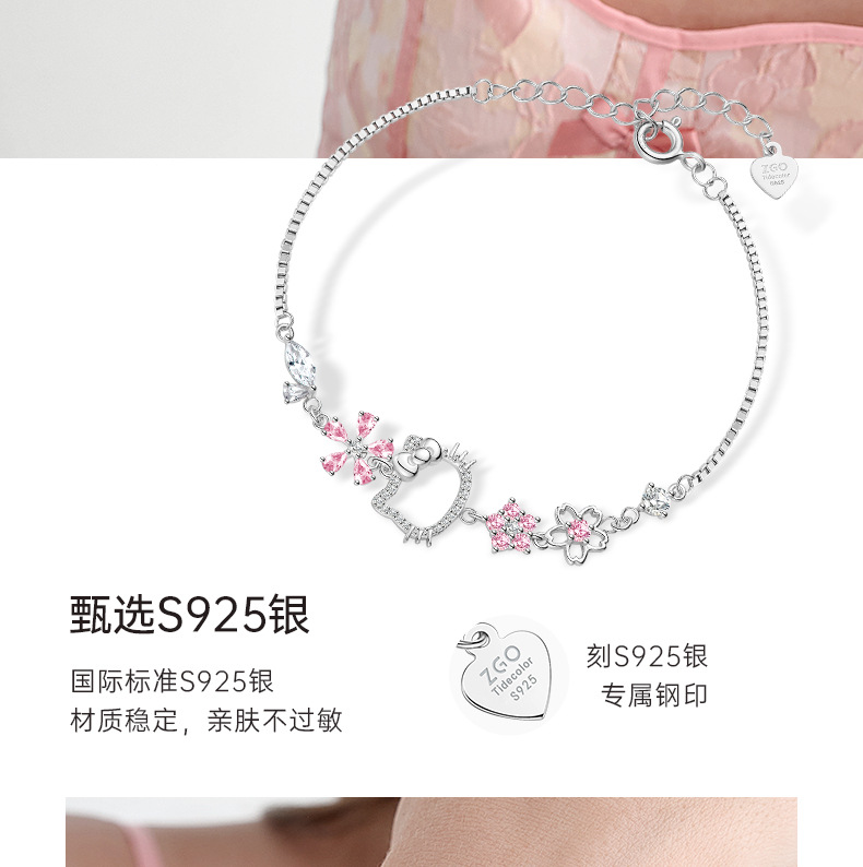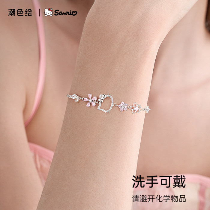 hellokitty凱蒂貓手鏈女生25銀百塔手飾輕奢精緻小衆設計生日禮物