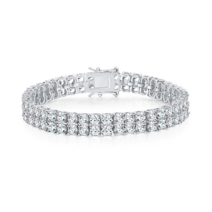 商品歐美爆款嘻哈3MM鑲鋯石網球手鏈雙排Tennisbracelet輕奢