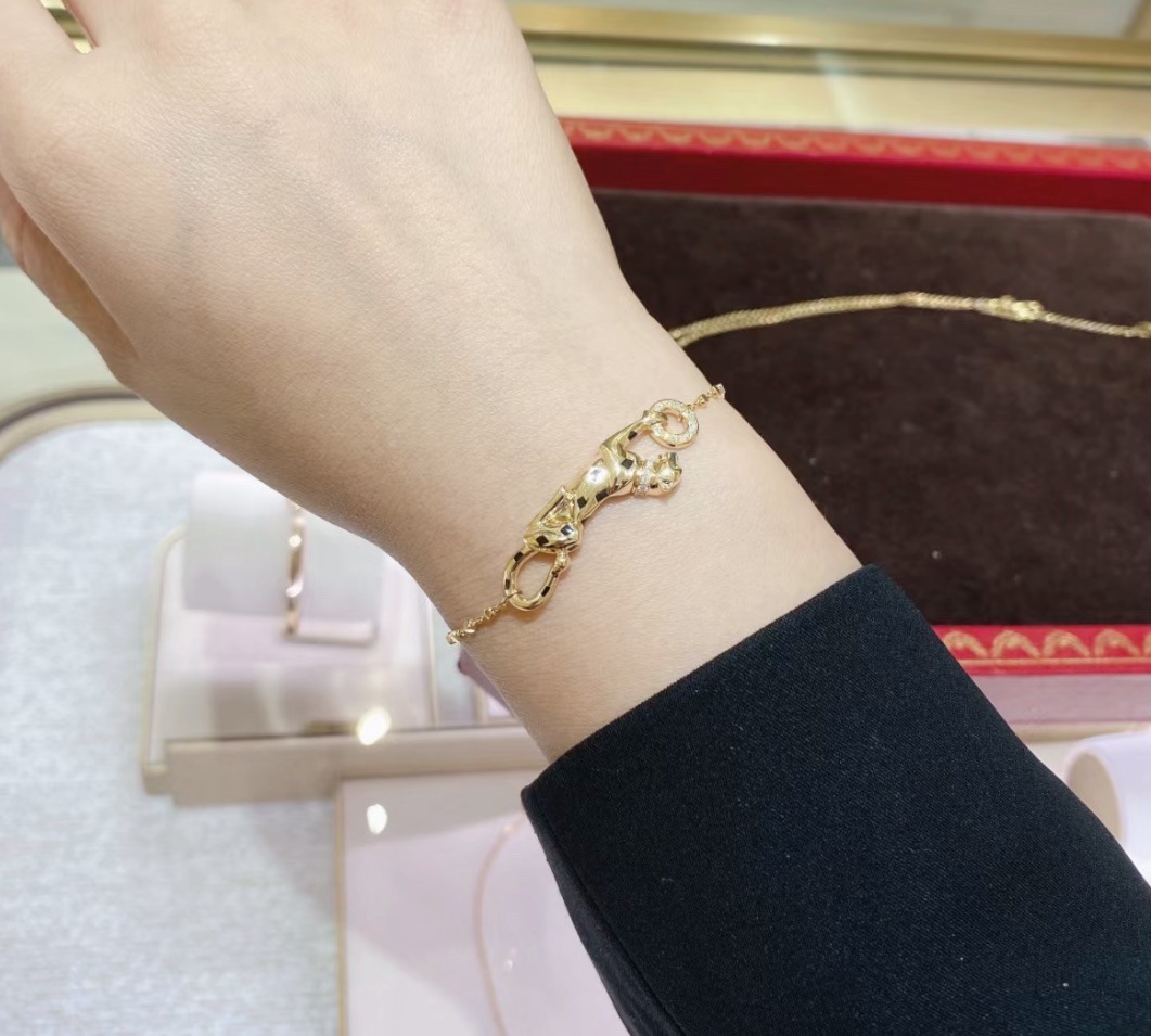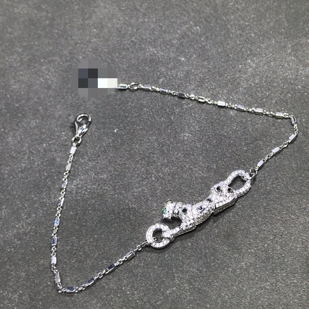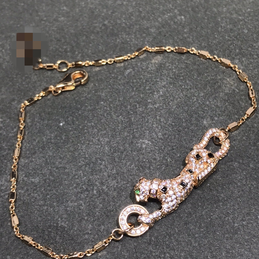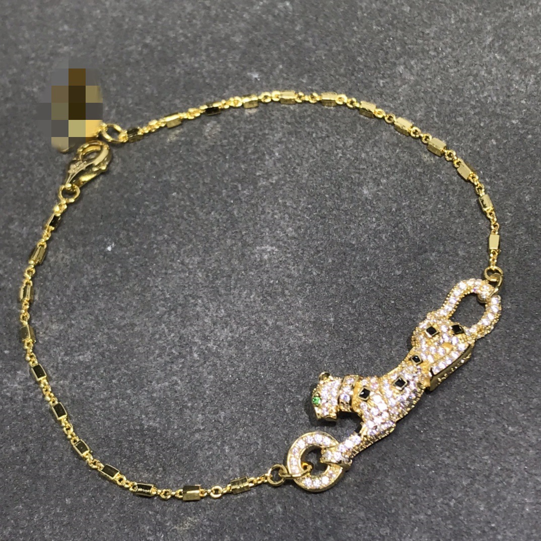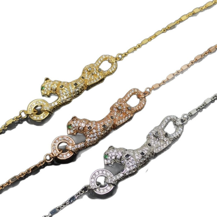 歐美高版本滿鑽豹子手鏈女V金鍍18K玫瑰金豹紋吊墜手鏈奢華手鏈