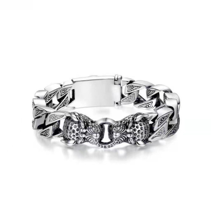 翔栩復古泰銀雙豹子男士手鏈個性霸氣手工編織豹子做舊嘻哈潮流手