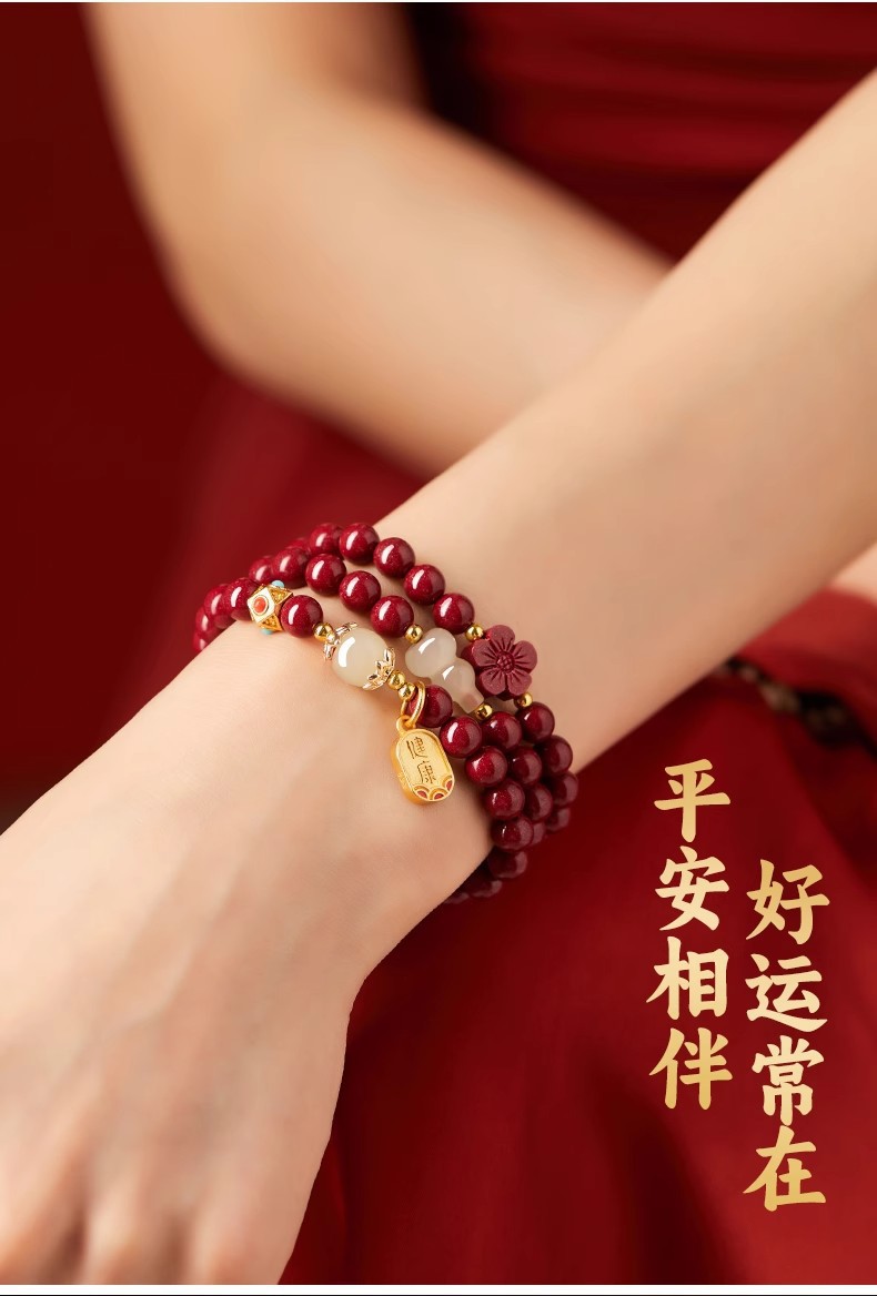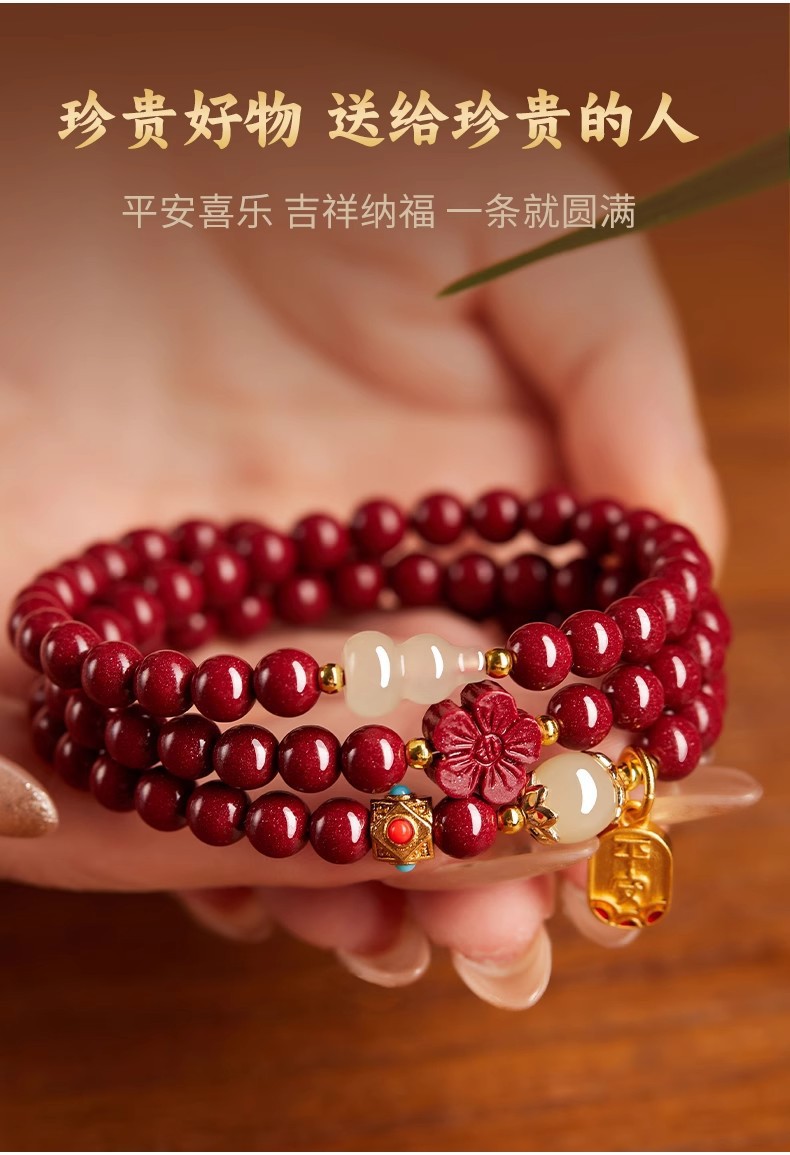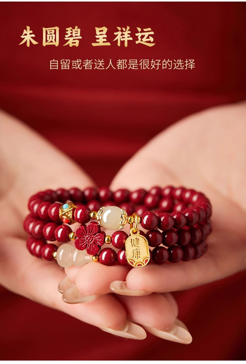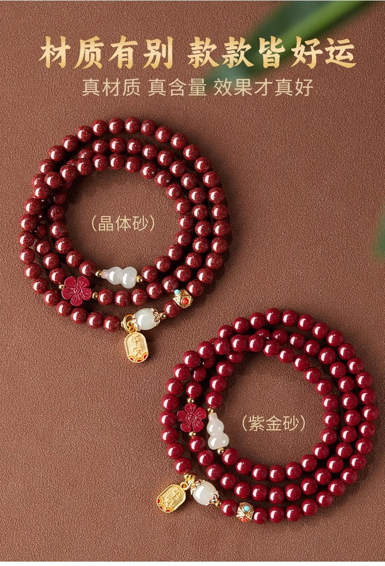 保真硃砂手串女三圈彿珠福祿手鏈晶體砂多圈護身福紫金砂多圈禮物