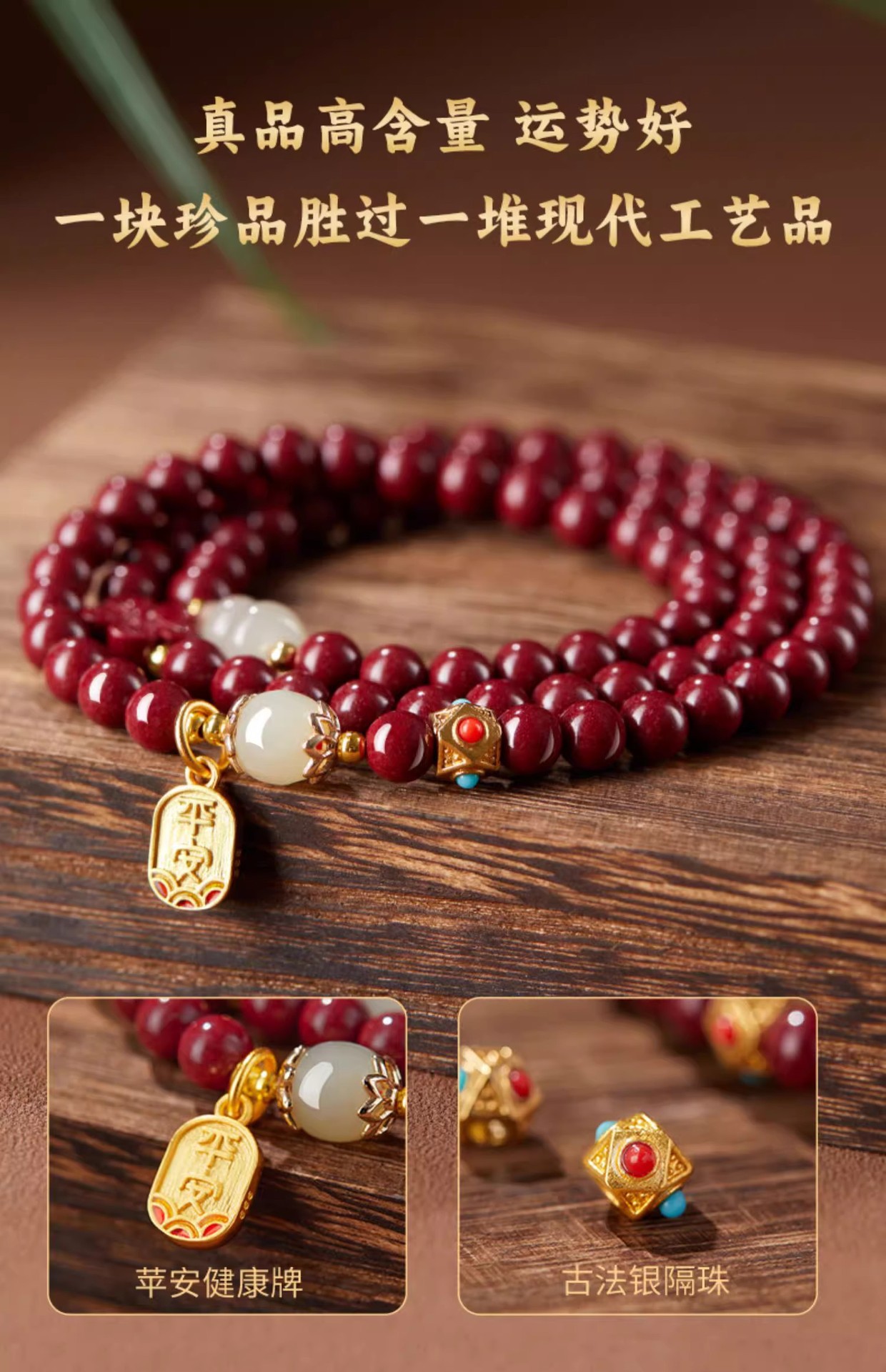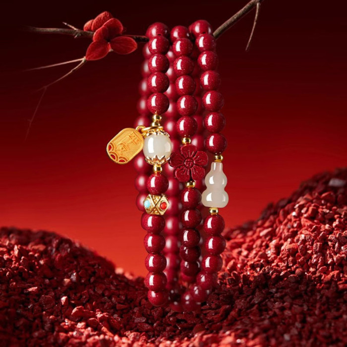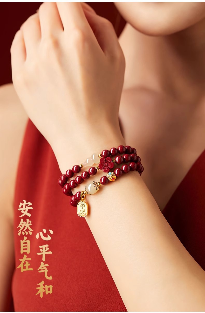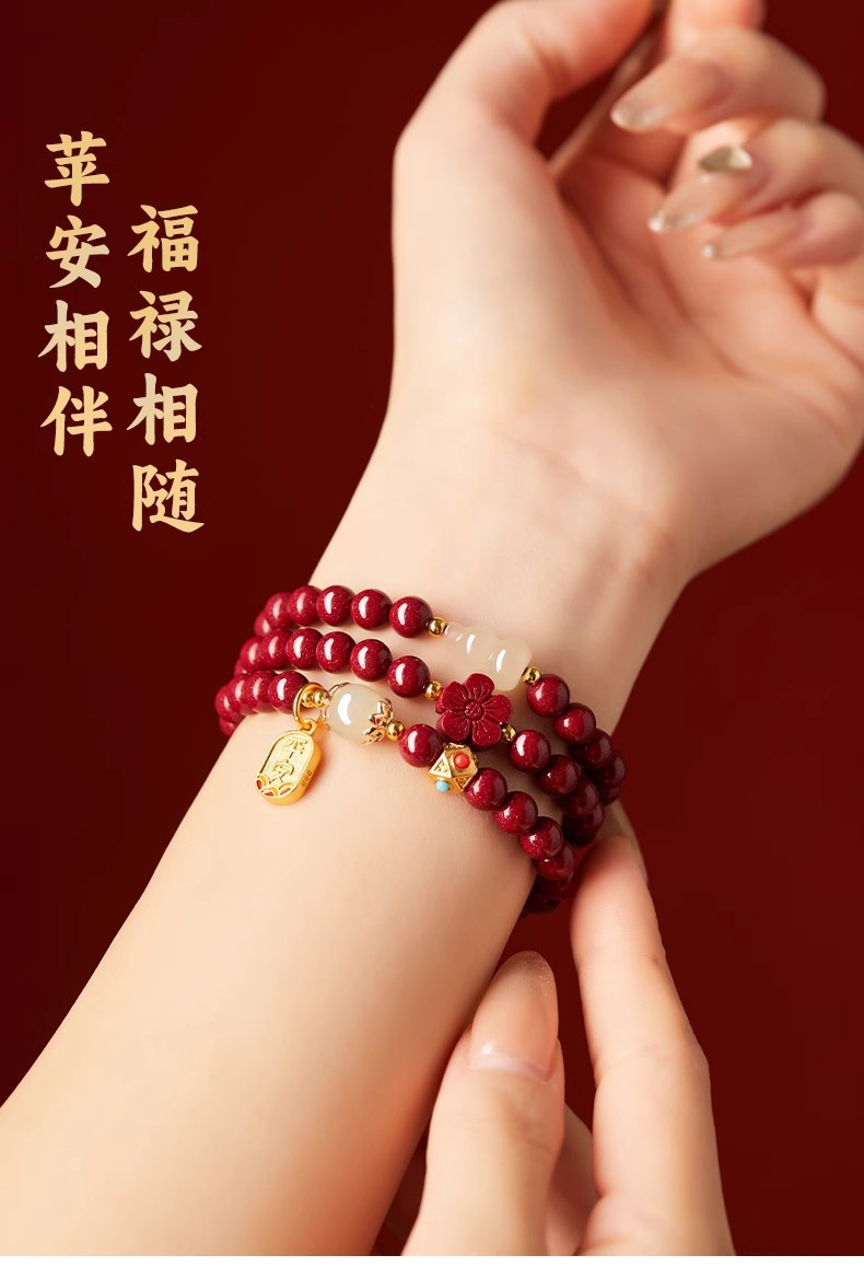 保真硃砂手串女三圈彿珠福祿手鏈晶體砂多圈護身福紫金砂多圈禮物