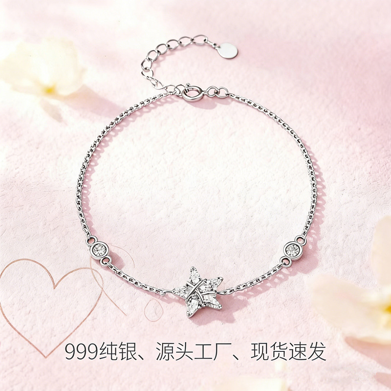 s999純銀手鏈女高級感幸運星手鏈輕奢小衆設計感手飾禮物