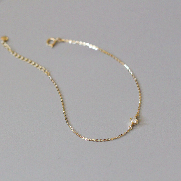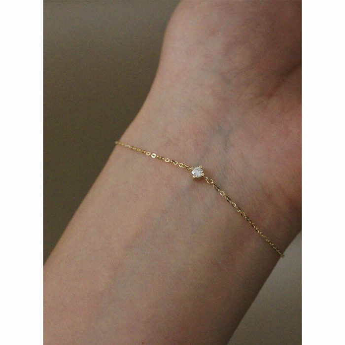 S925純銀鍍14K金手鏈 簡約單鑽鋯石百搭日常氣質細手鏈女款文藝風