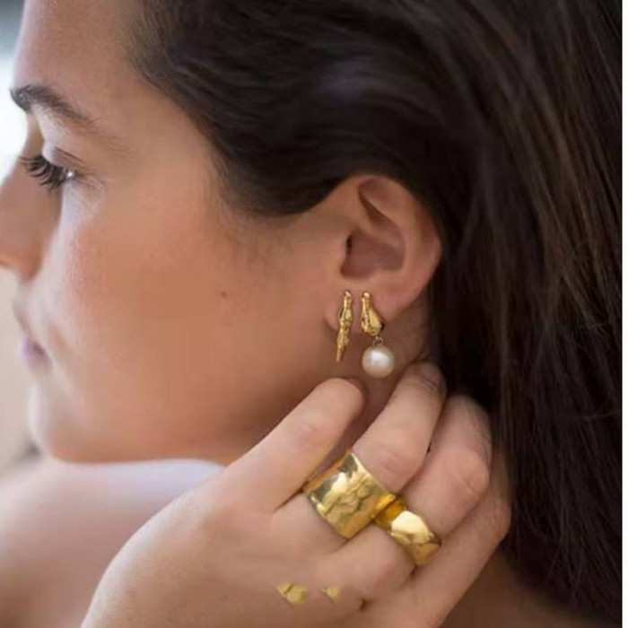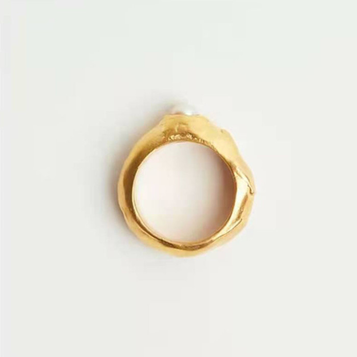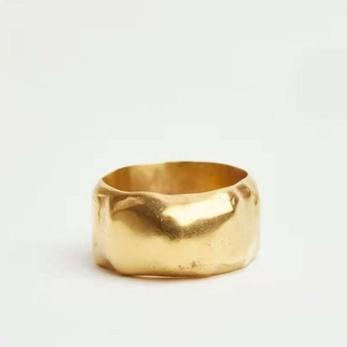 設計師設計感不規則磨砂面鈦鋼鍍金戒指女鍍18k金開口ins潮