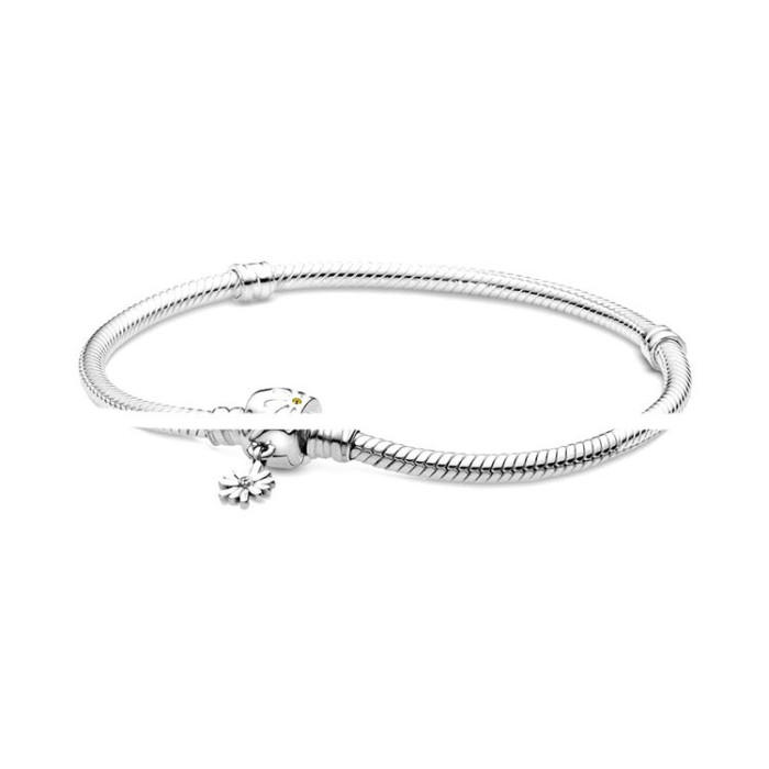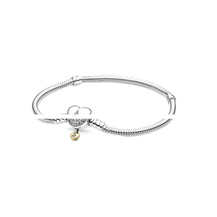 潘家多拉白銅鍍s925銀愛心T形釦蛇骨鏈氣質百搭輕奢手鏈蛇骨鏈