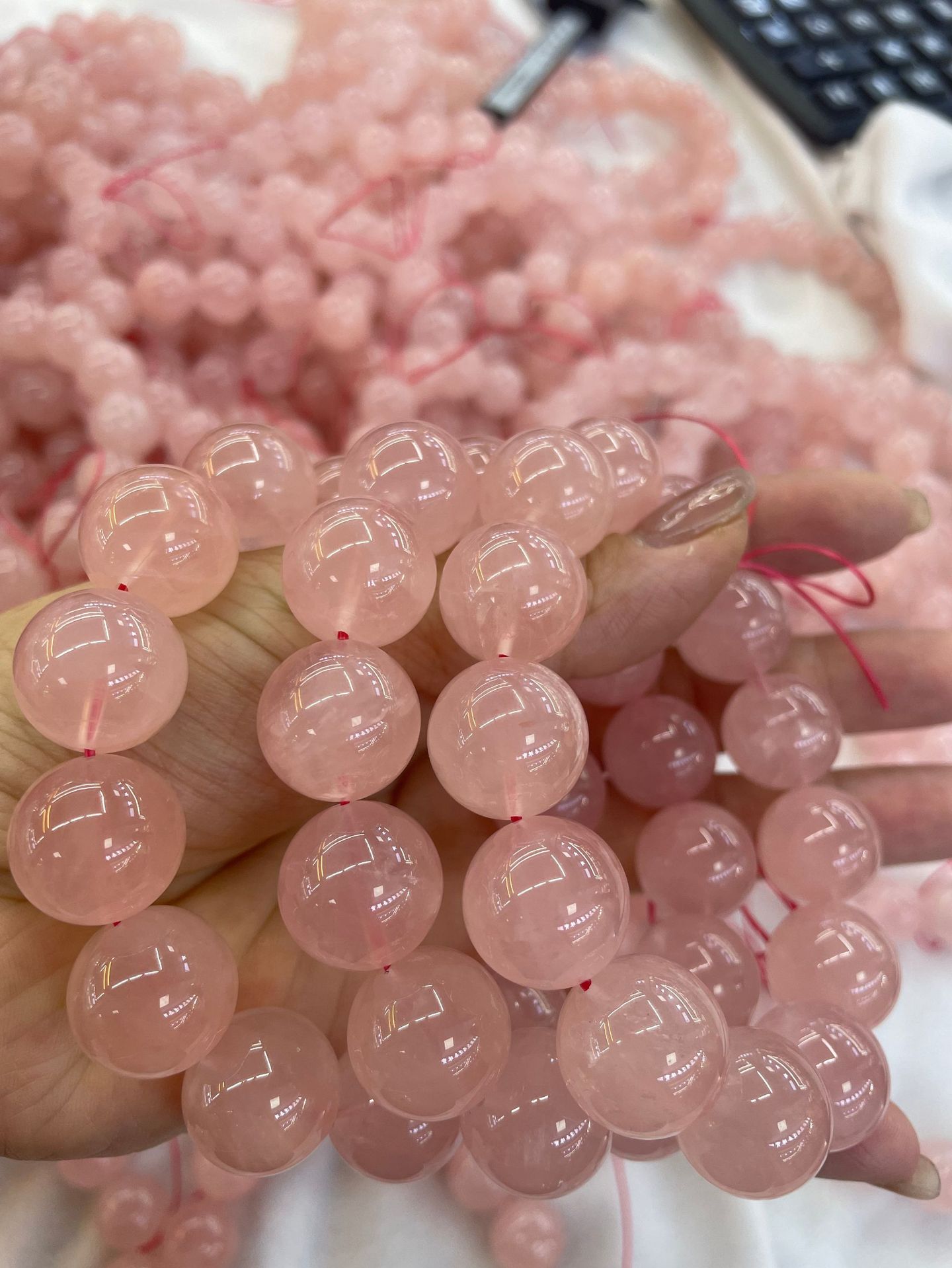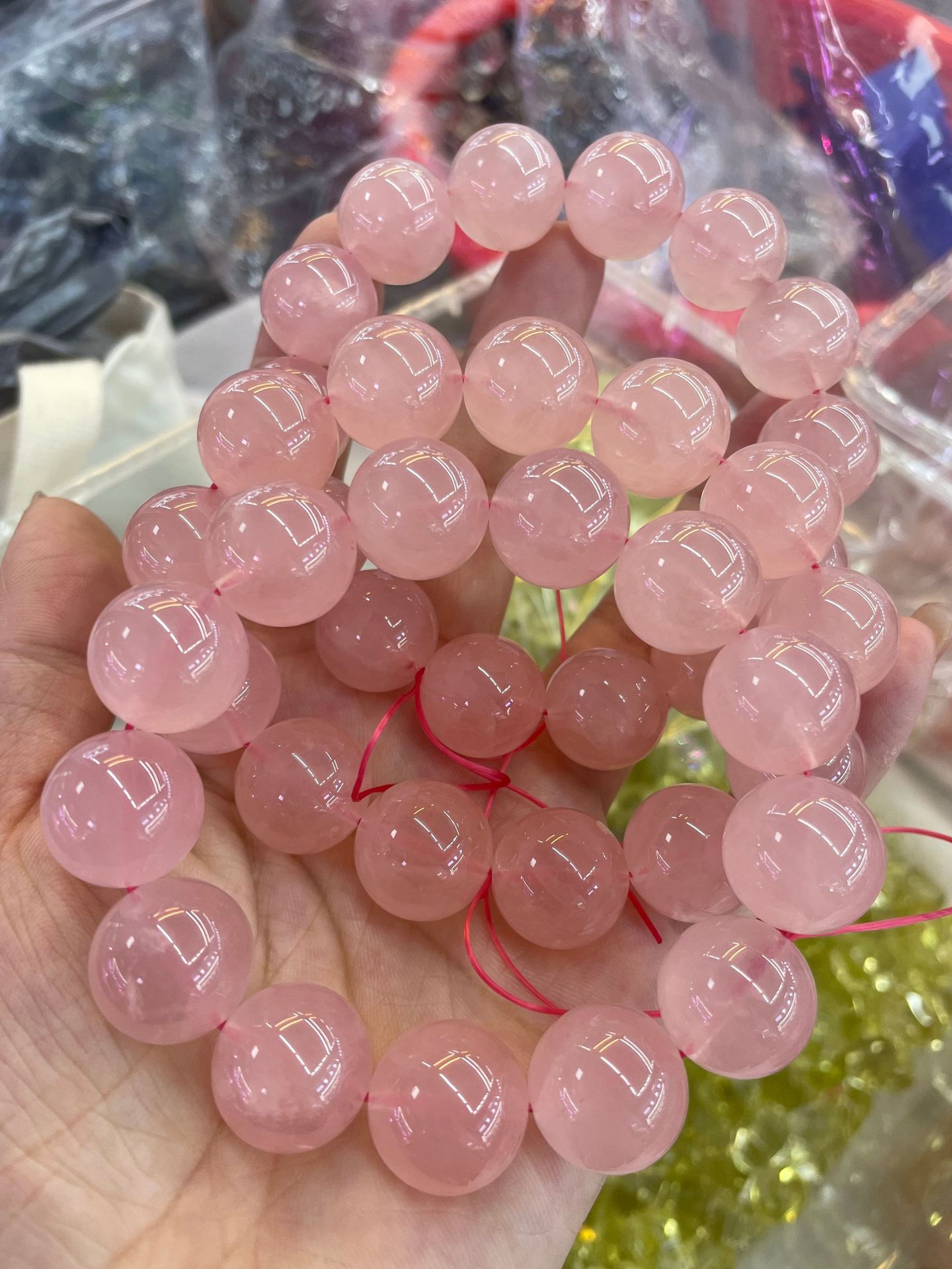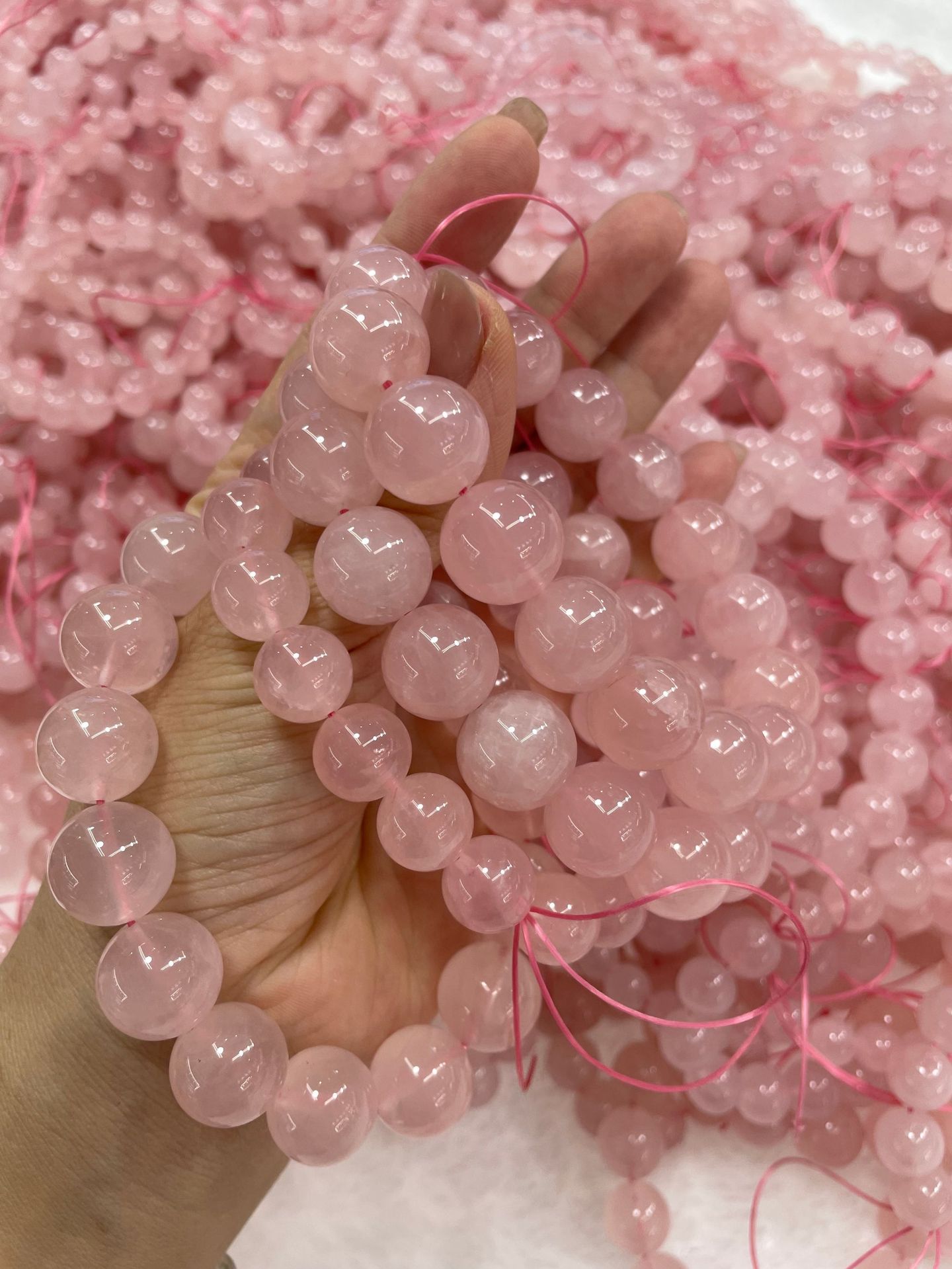 天然馬粉水晶手鏈女馬達加斯粉晶芙蓉石DIY手工手串招桃花 西柚粉