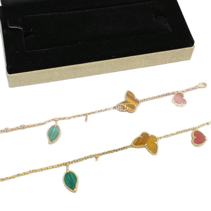 高版luck幸運亂花手鏈女鍍18k玫瑰金蝴蝶四葉草五花心形瓢蟲手鏈