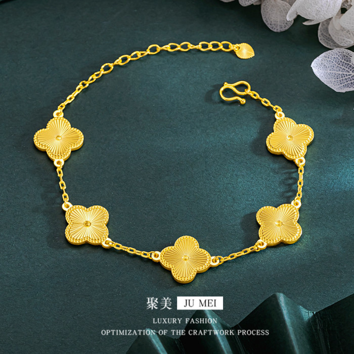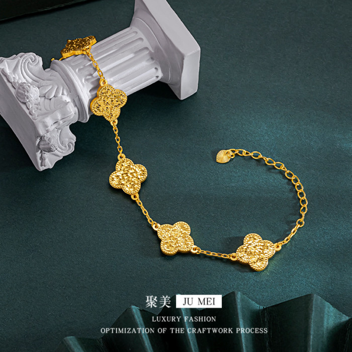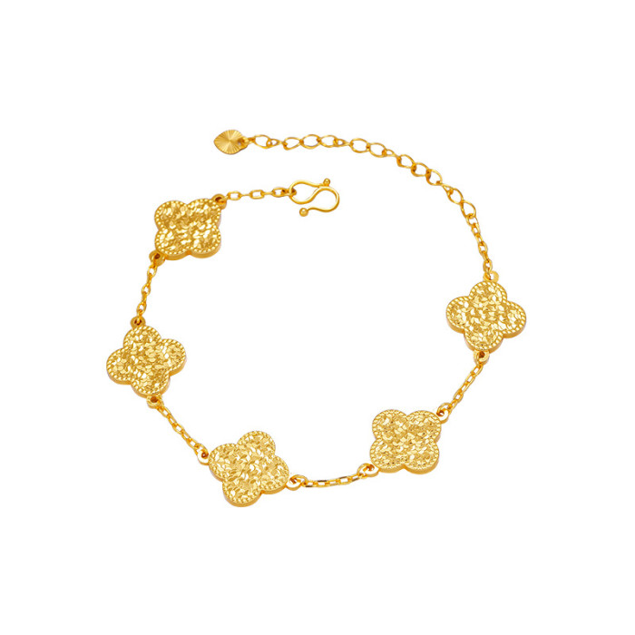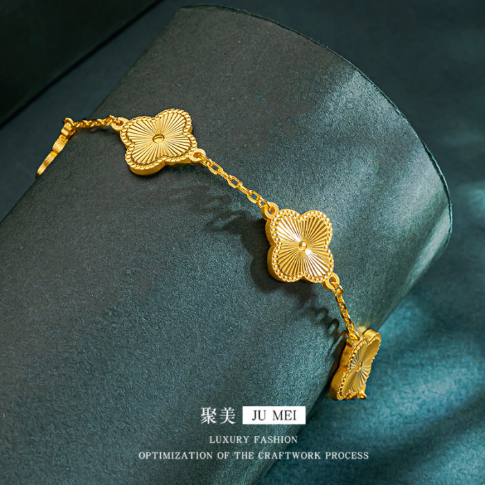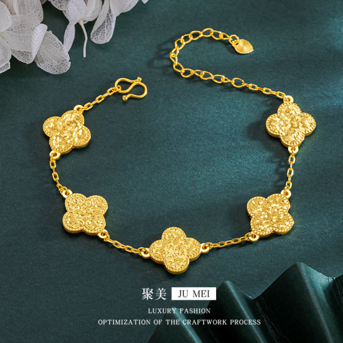 越南沙金碎冰五朵花四葉草手鏈適合時尚通勤百搭高級感碎碎冰手鏈