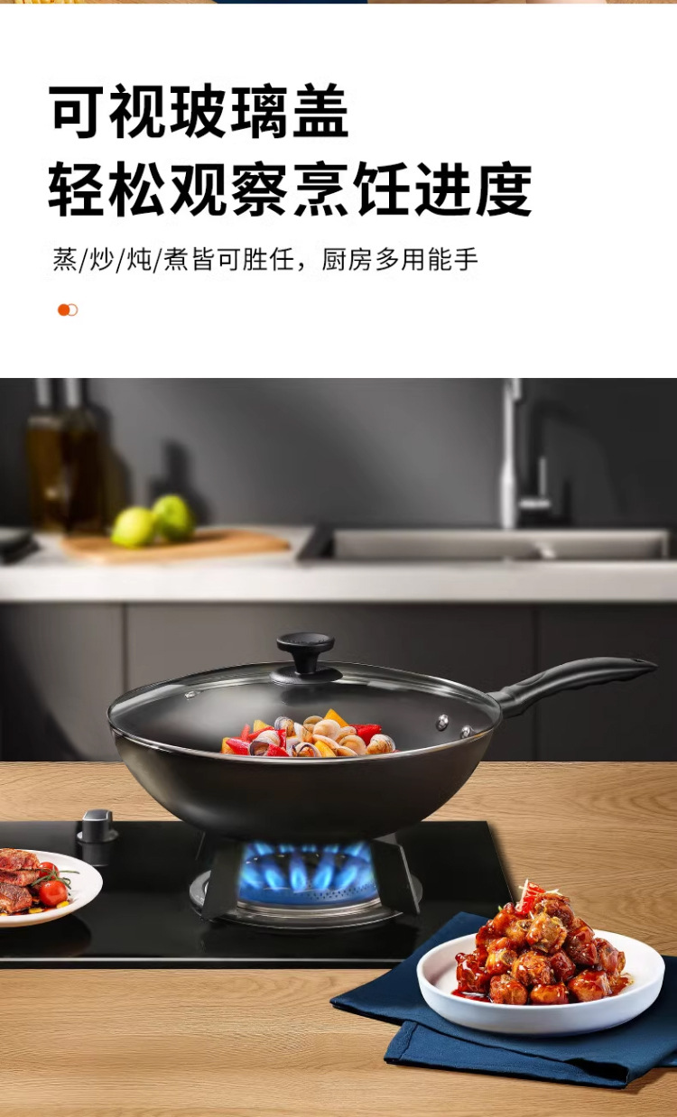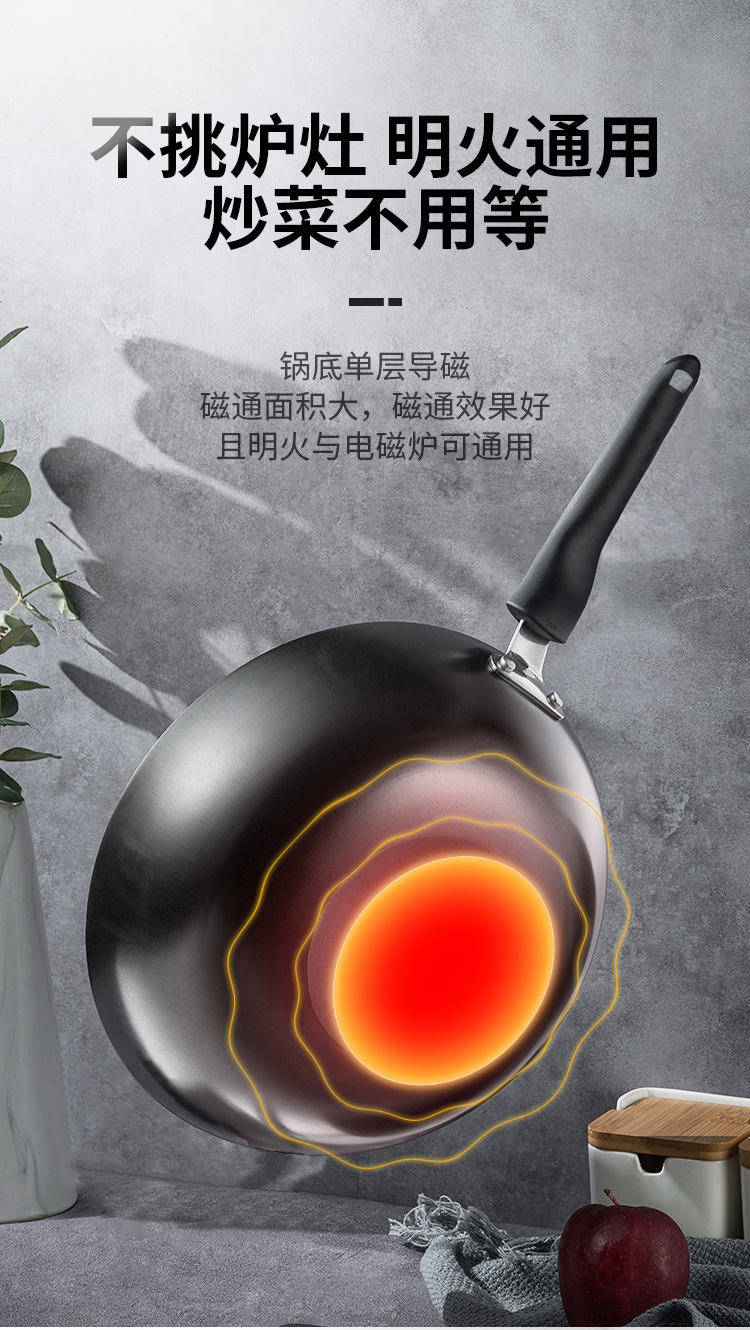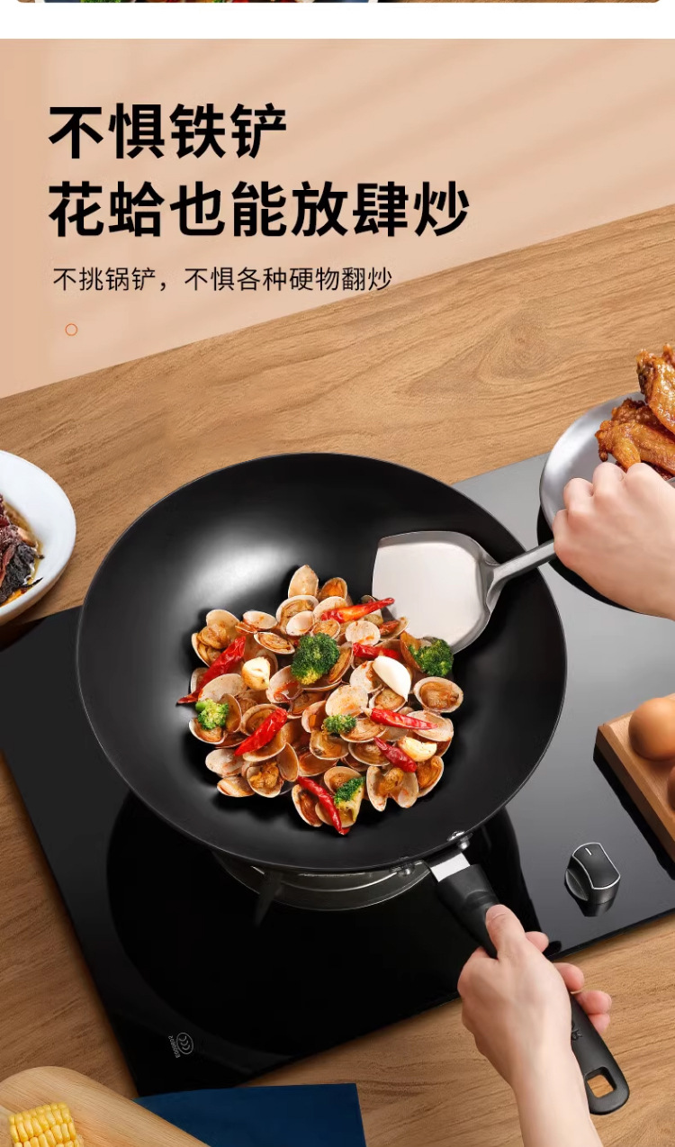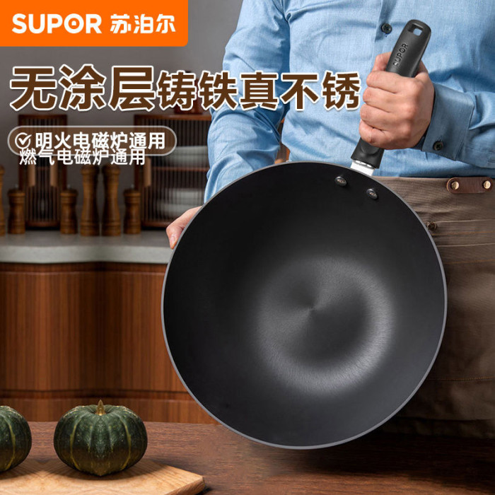 蘇泊爾炒鍋家用老式防刮防銹鐵鍋無塗層平底炒菜鍋瓦斯爐明火通用