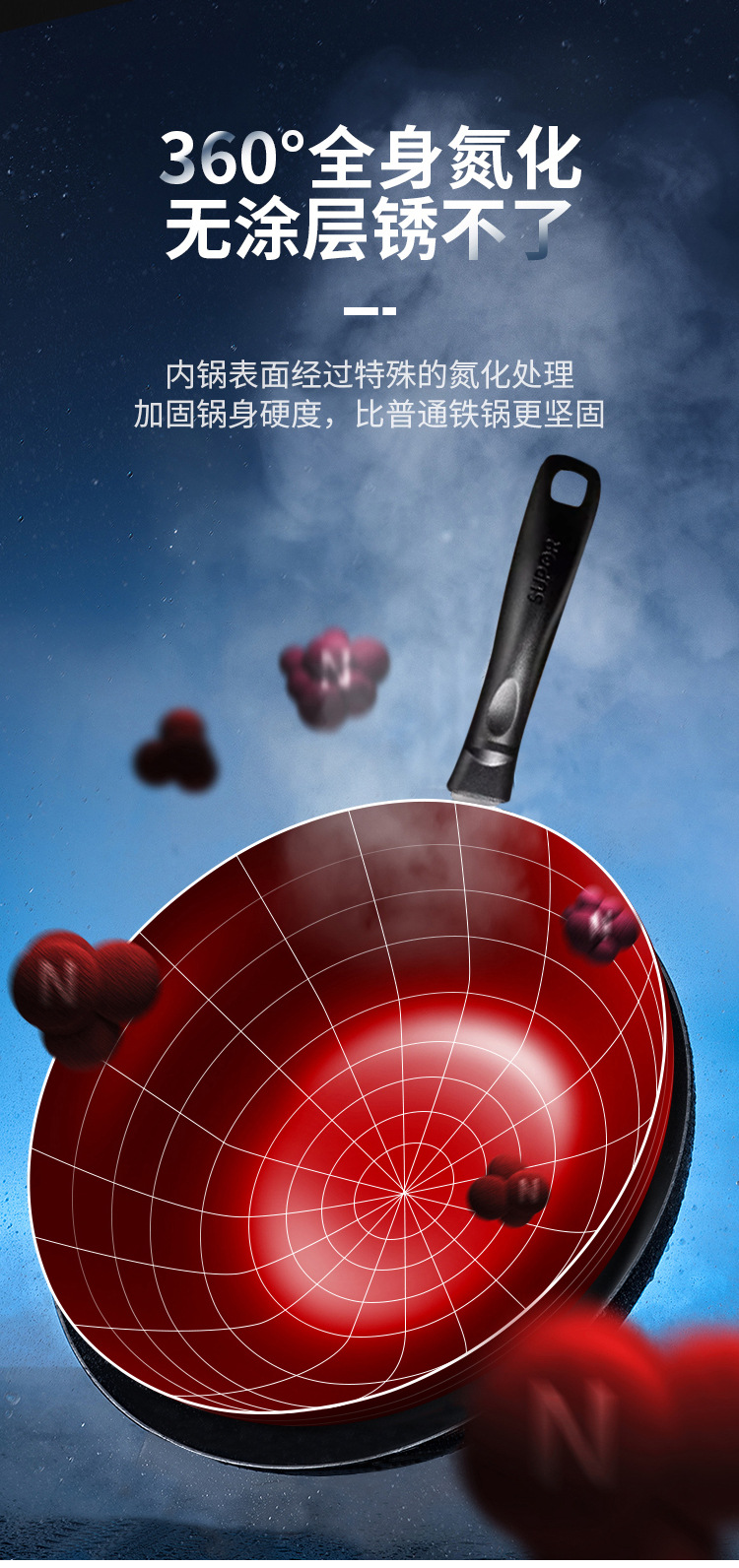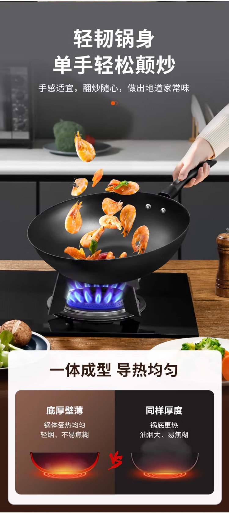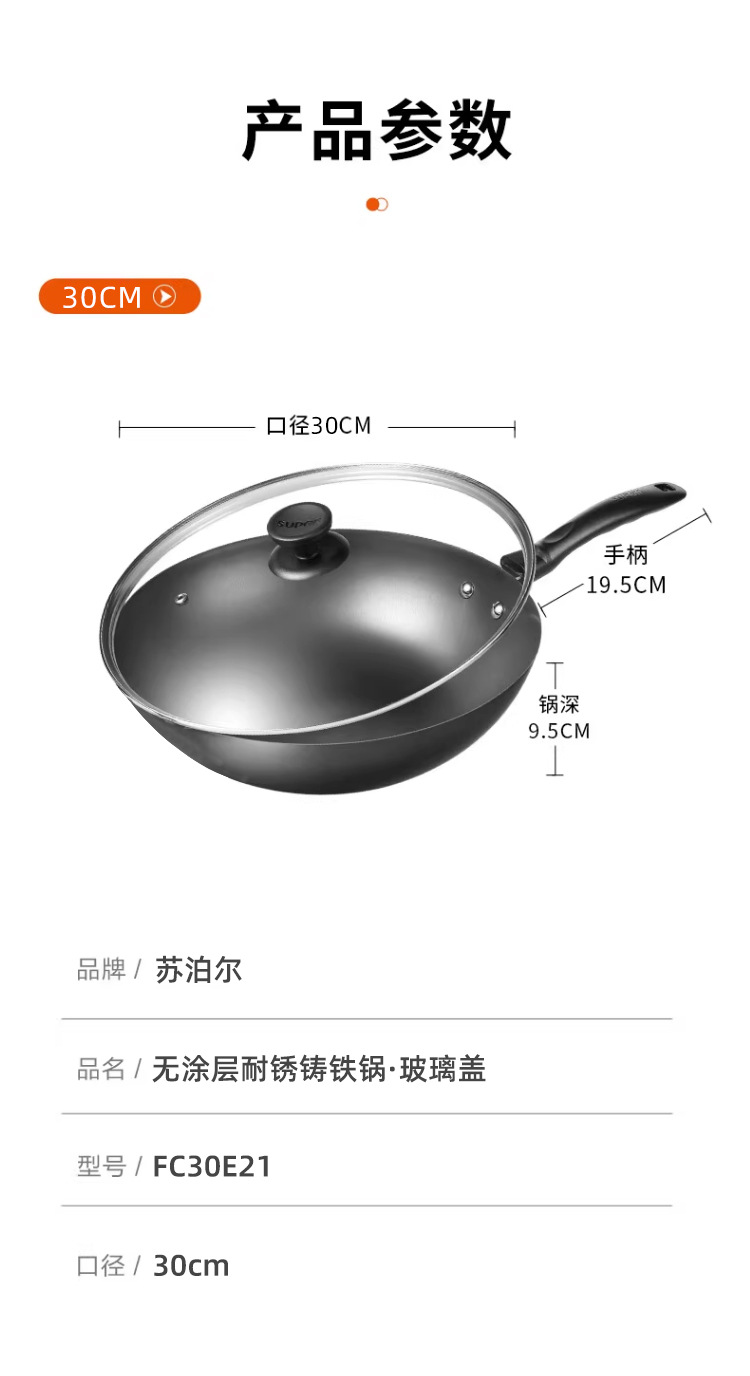 蘇泊爾炒鍋家用老式防刮防銹鐵鍋無塗層平底炒菜鍋瓦斯爐明火通用
