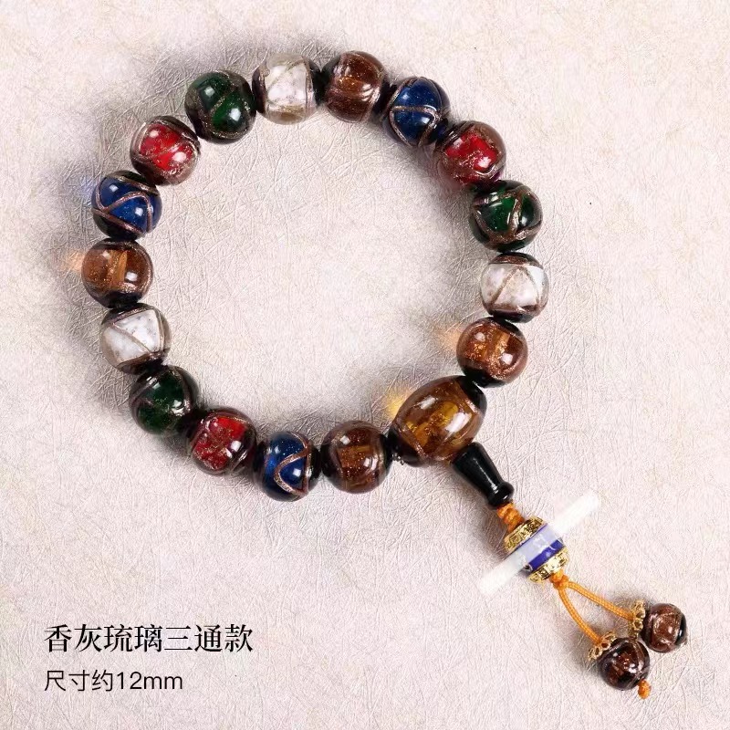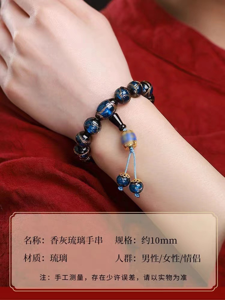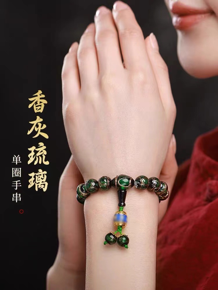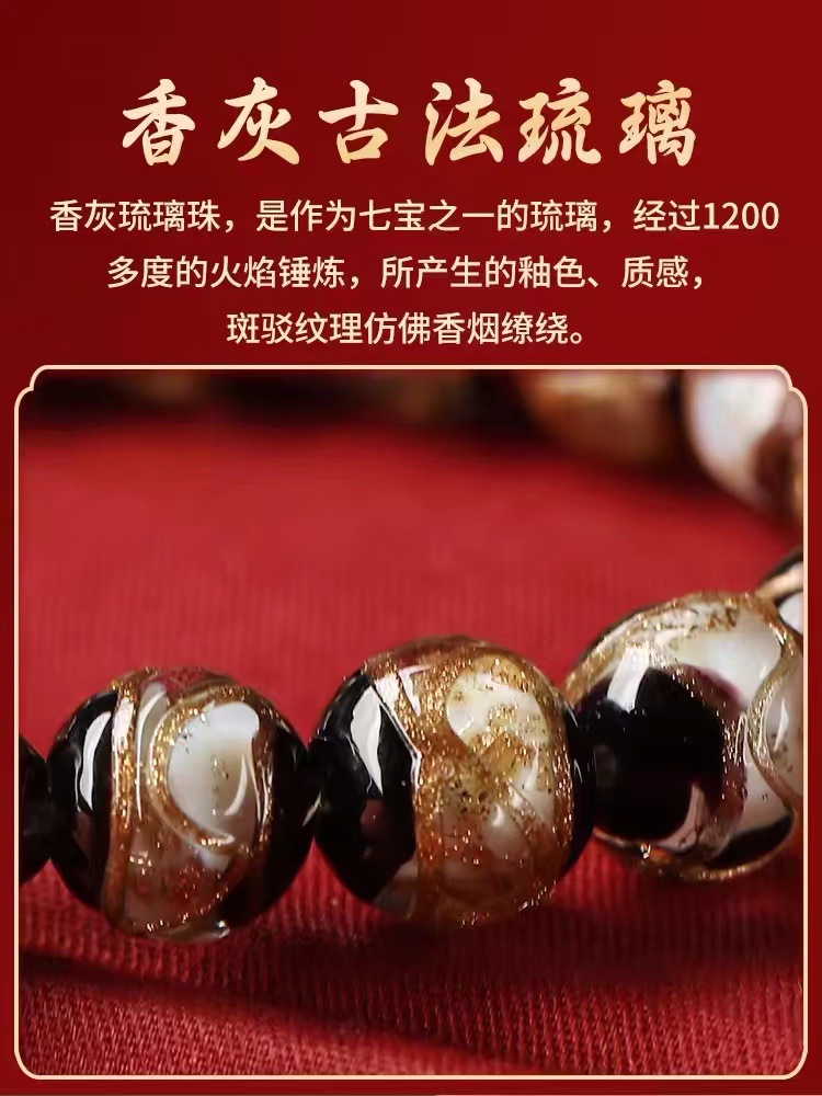 雍香灰琉璃手串宮廷風古法琉璃本命年手鏈男女款法物彿珠手持